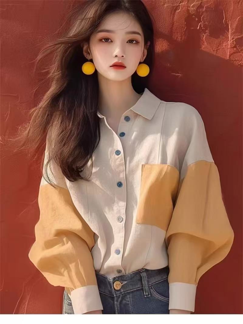• 컬러블럭 셔츠 [초가을복 2024/숙장복 여성/차가운 여성복 고급복/멋진/출퇴근복/가을 여성 2024 신작/여성 럭셔리 및 럭셔리]