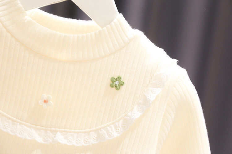 한국식 플로렛베이스 셔츠 새 늦가을 소녀들의 봄착용 어린이 반높이 칼라 T스토어 가기