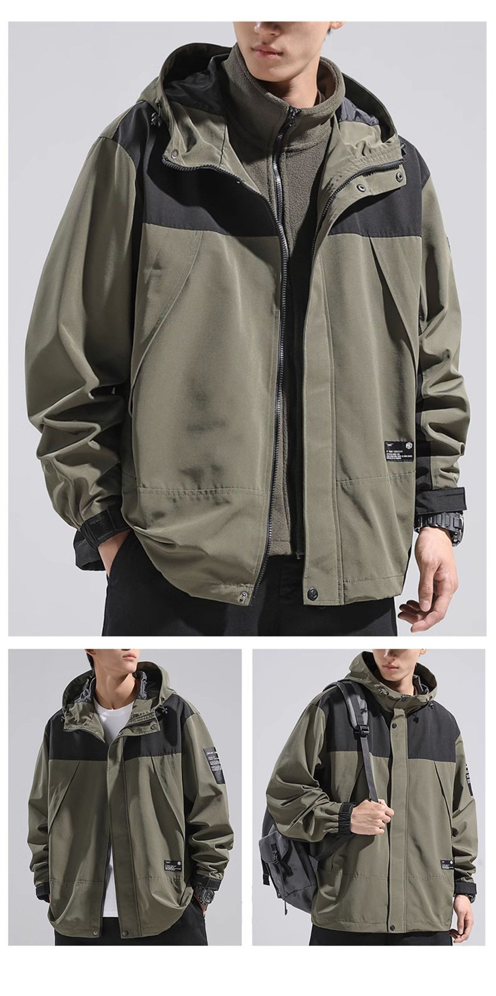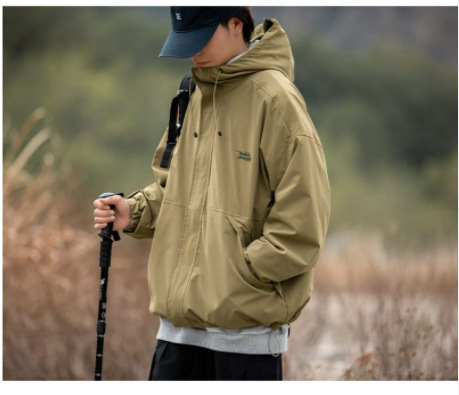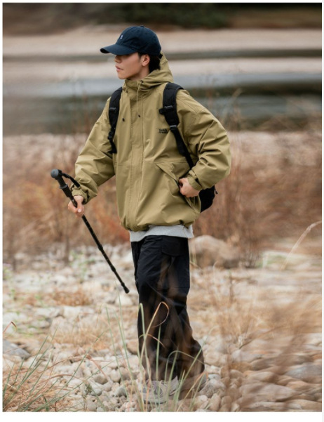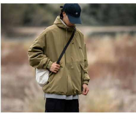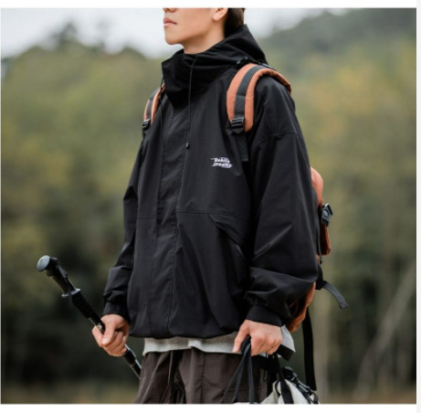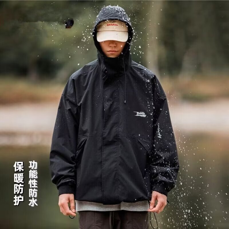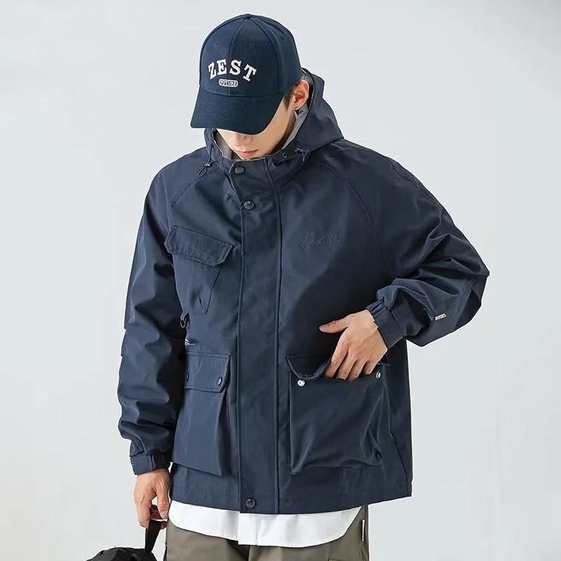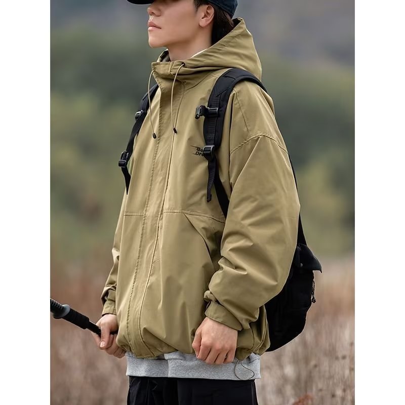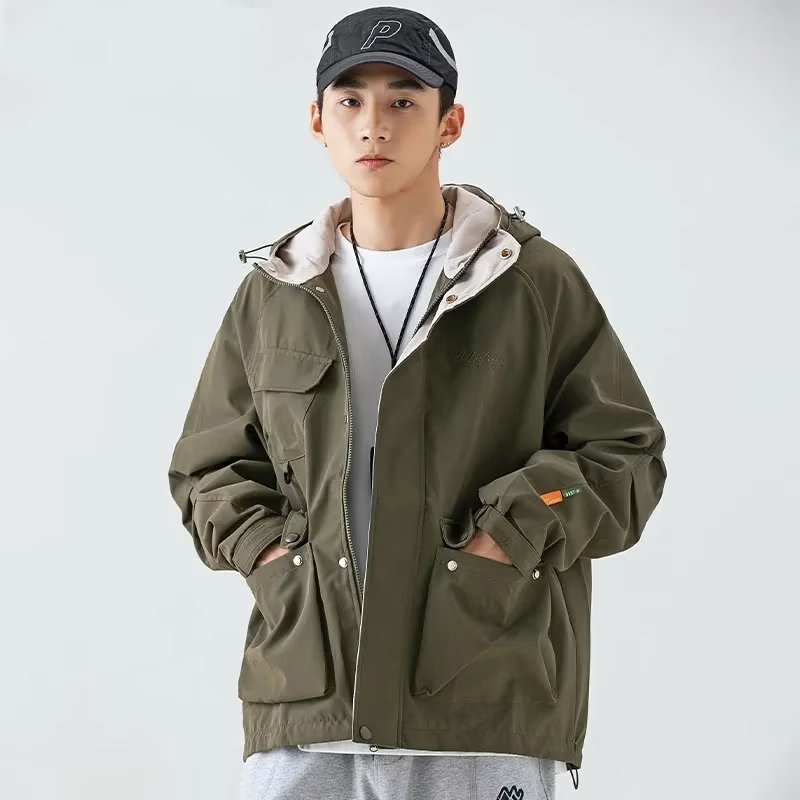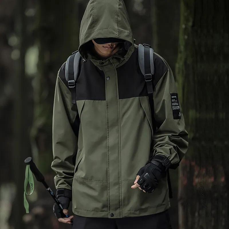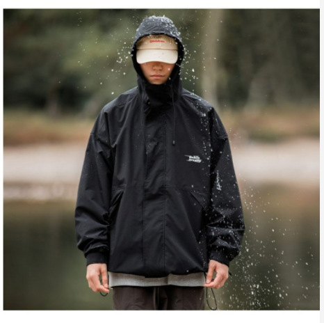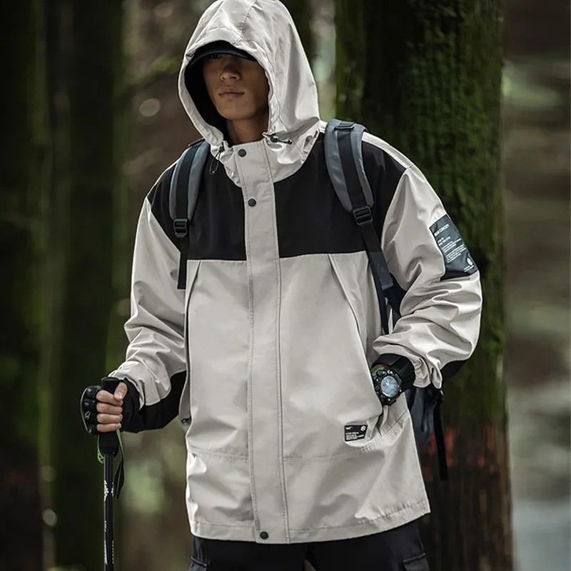남성 트렌디 한 브랜드 후드 스프링 야외 느슨한 작업 재킷 일본 트렌디 컬러 매칭 방수 코트 재킷