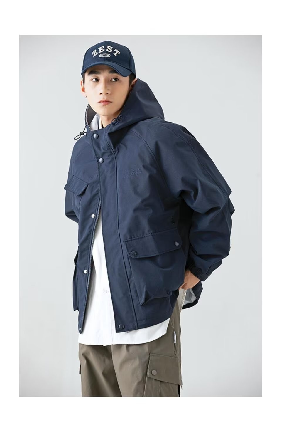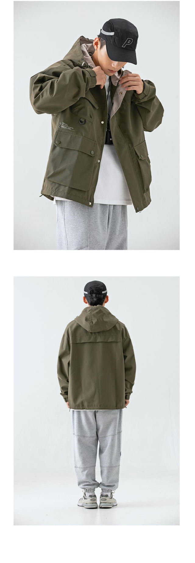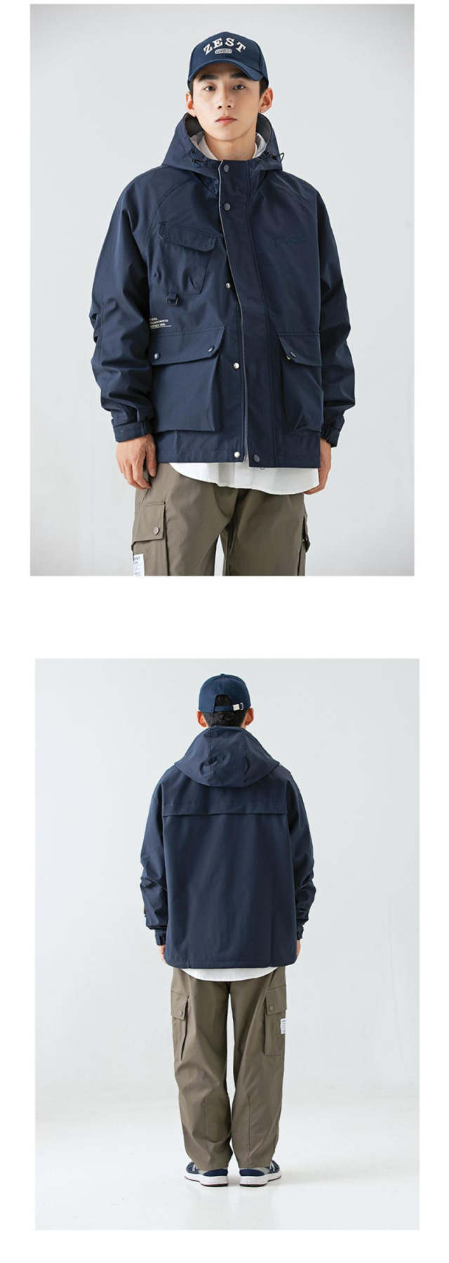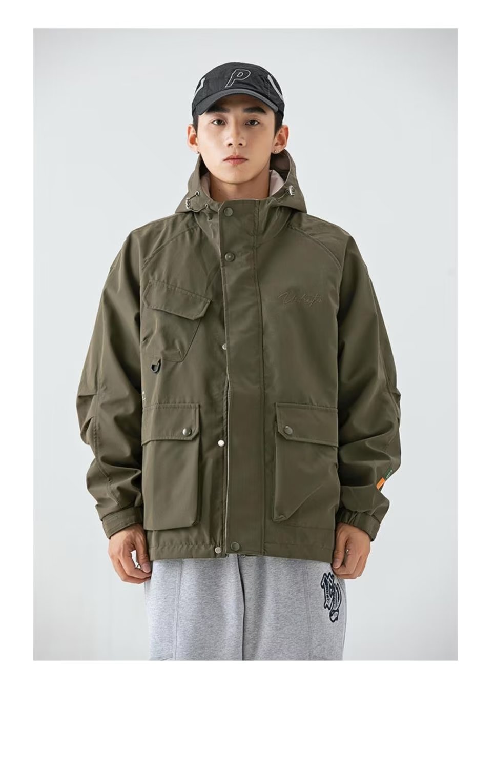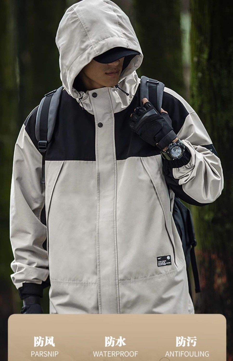 남성 트렌디 한 브랜드 후드 스프링 야외 느슨한 작업 재킷 일본 트렌디 컬러 매칭 방수 코트 재킷