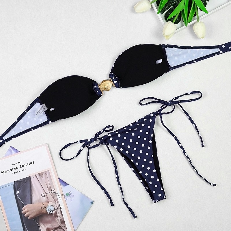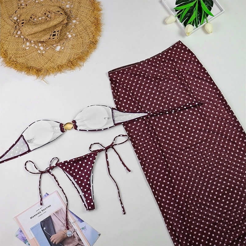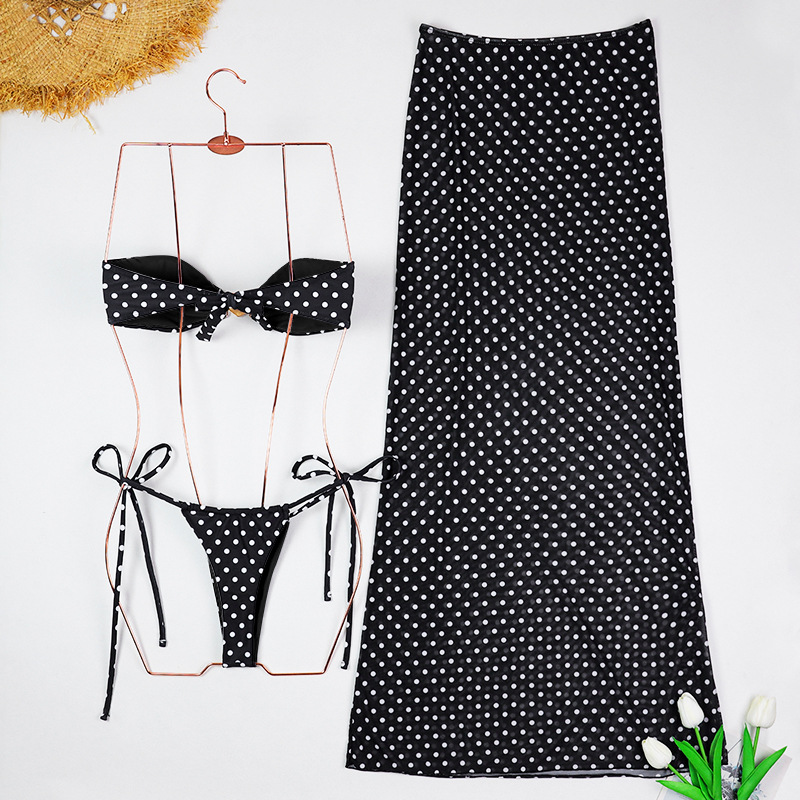 2025 섹시한 끈이없는 비키니 3 피스 세트 폴로 도트 유럽과 미국의 섹시한 분할 수영복 여성