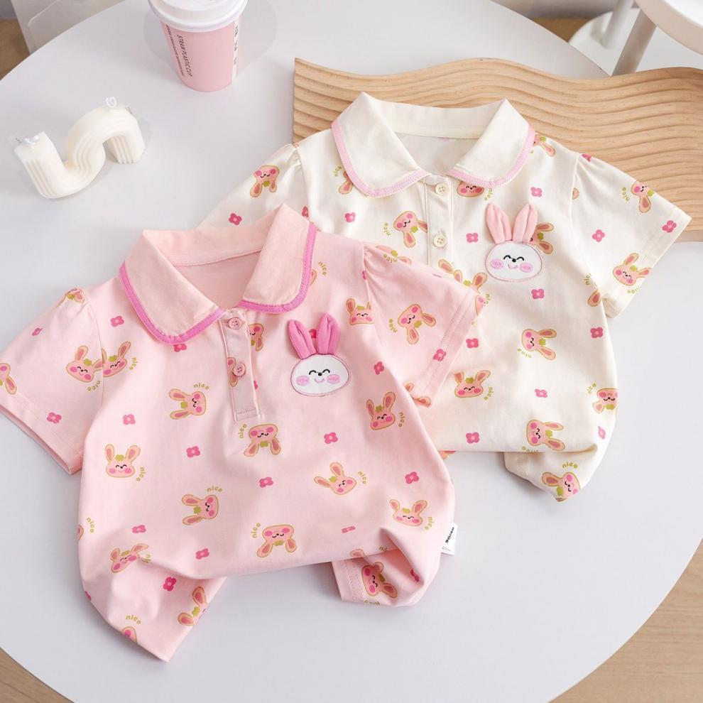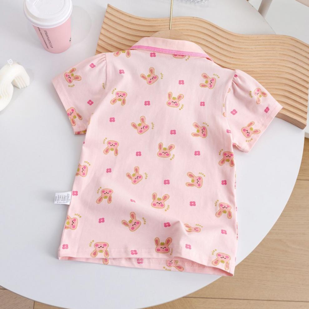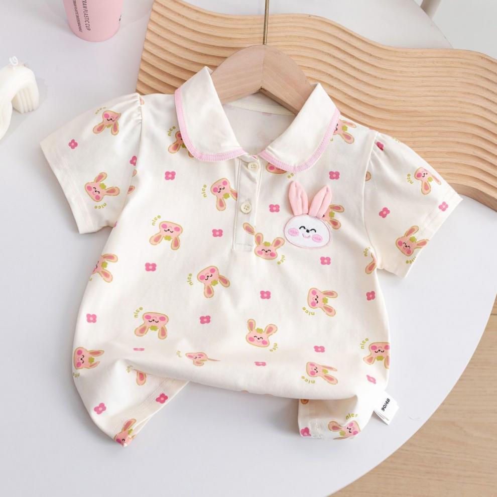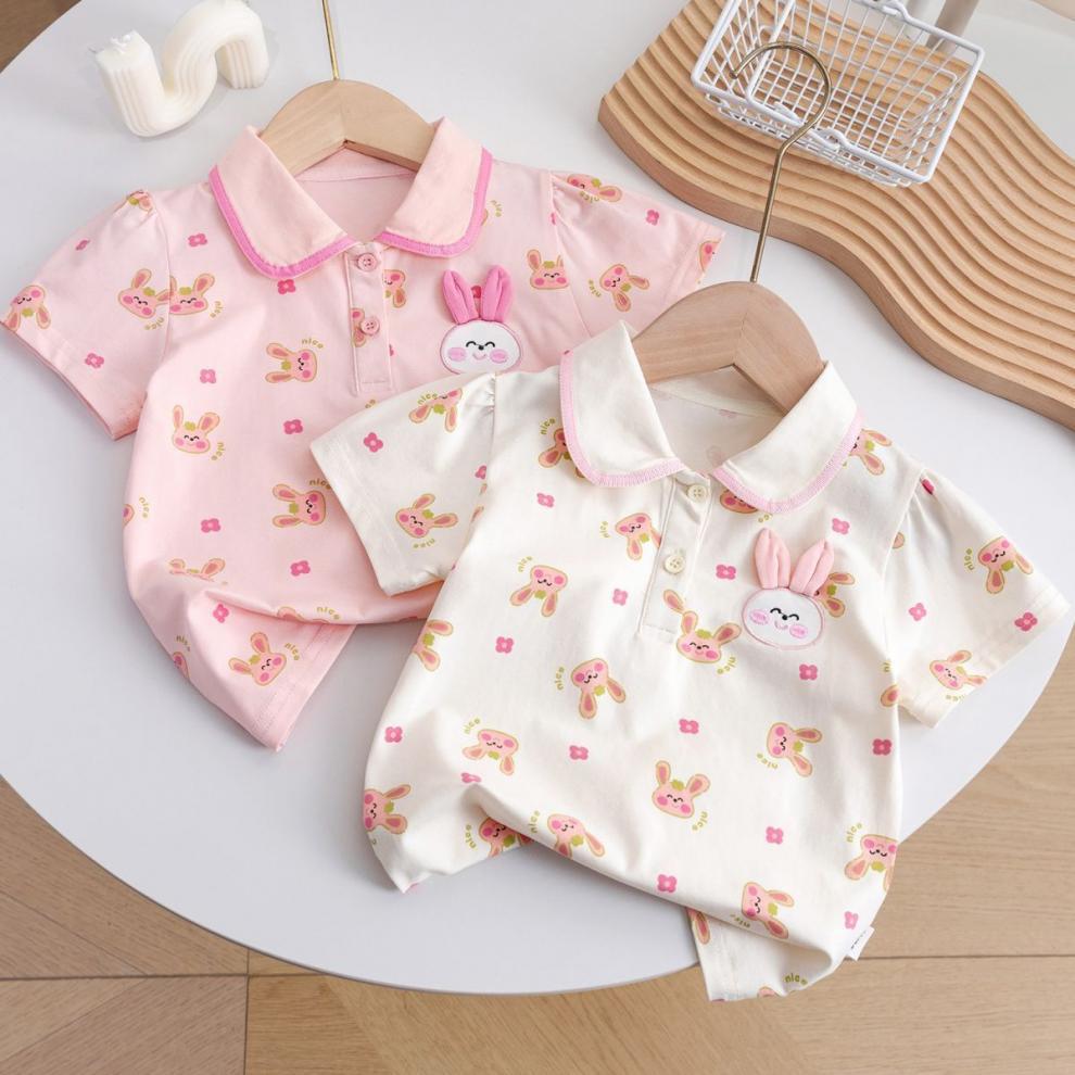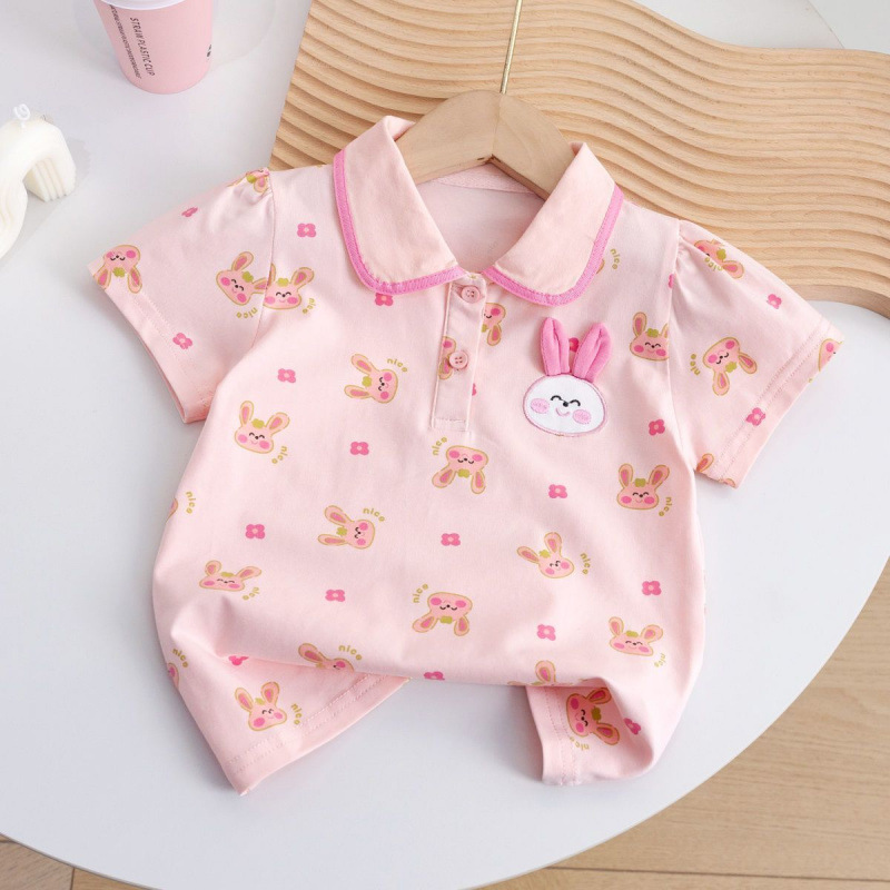 소녀 여름 새로운 폴로 셔츠 어린이 만화 반팔 티셔츠 탑 옷 어린이 서양식 귀여운 베이스 셔츠