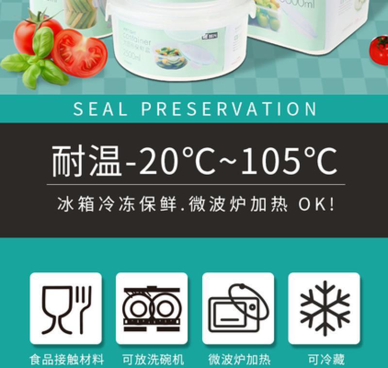 신선한 보관 상자 플라스틱 둥근 밀봉 상자 냉장고 특수 전자 레인지 난방 도시락 대형 보관 상자스토어 가기