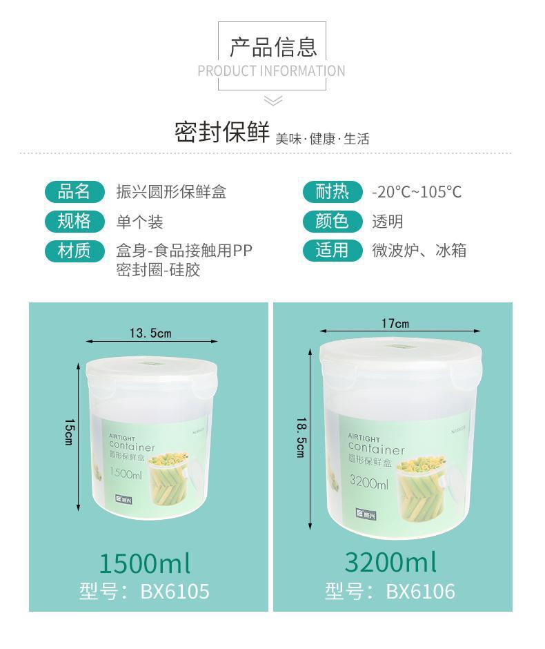 신선한 보관 상자 플라스틱 둥근 밀봉 상자 냉장고 특수 전자 레인지 난방 도시락 대형 보관 상자
