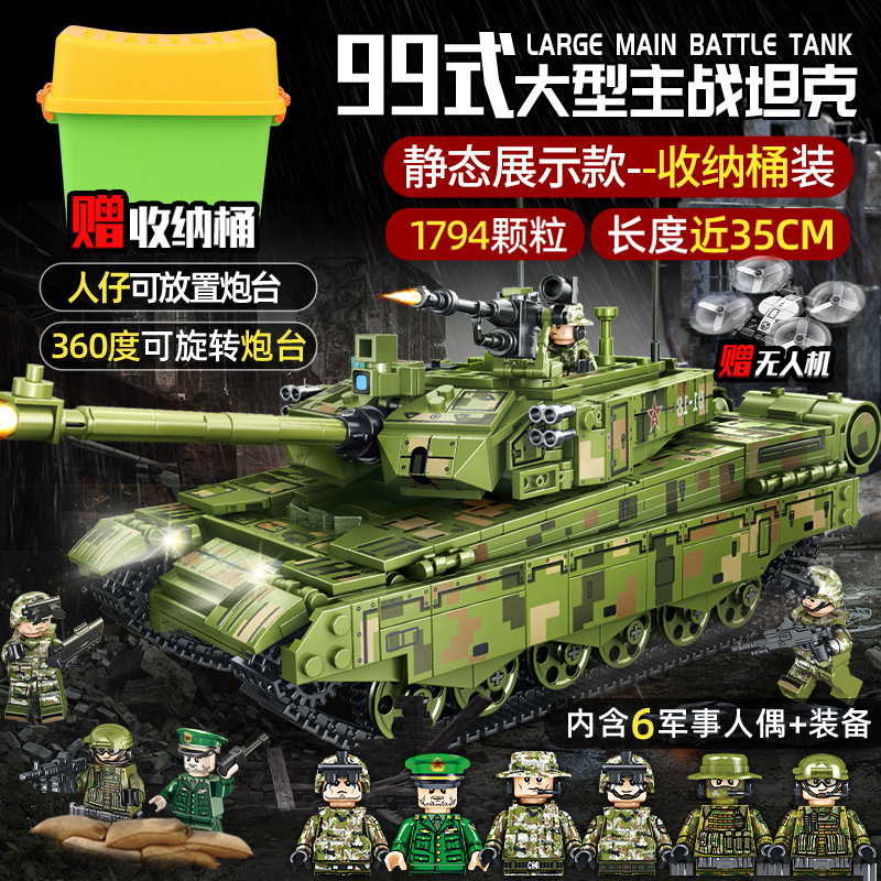 • 收纳桶装/大型99a主战坦克【1798颗粒】赠6人仔+武器+无人机