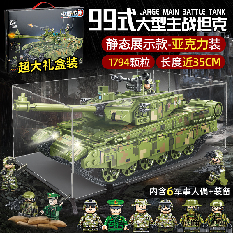 • 亚克力罩/大型99a主战坦克【1798颗粒】赠6人仔+武器+无人机