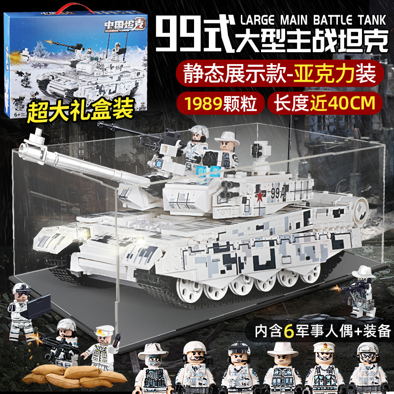 • 亚克力+静态版/大型雪地99式坦克【1989颗粒】赠6人仔+无人机