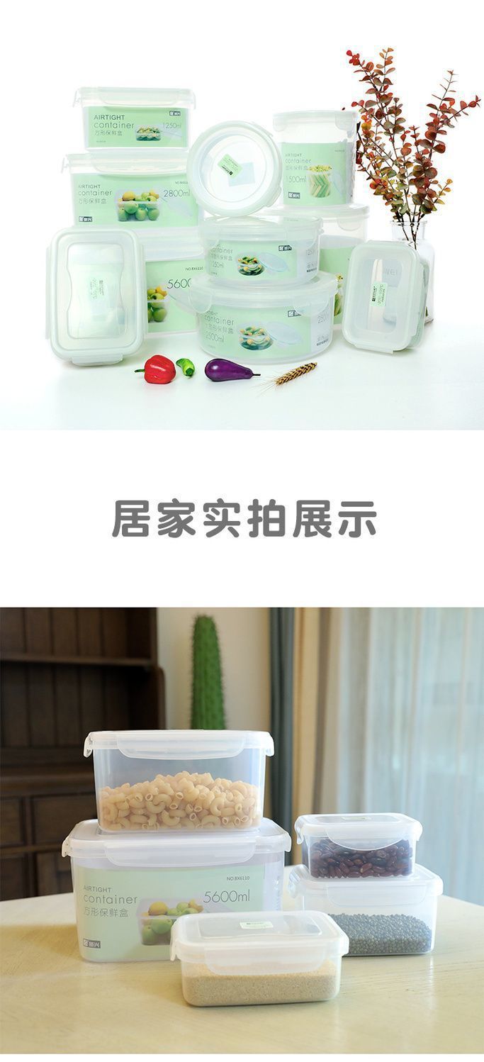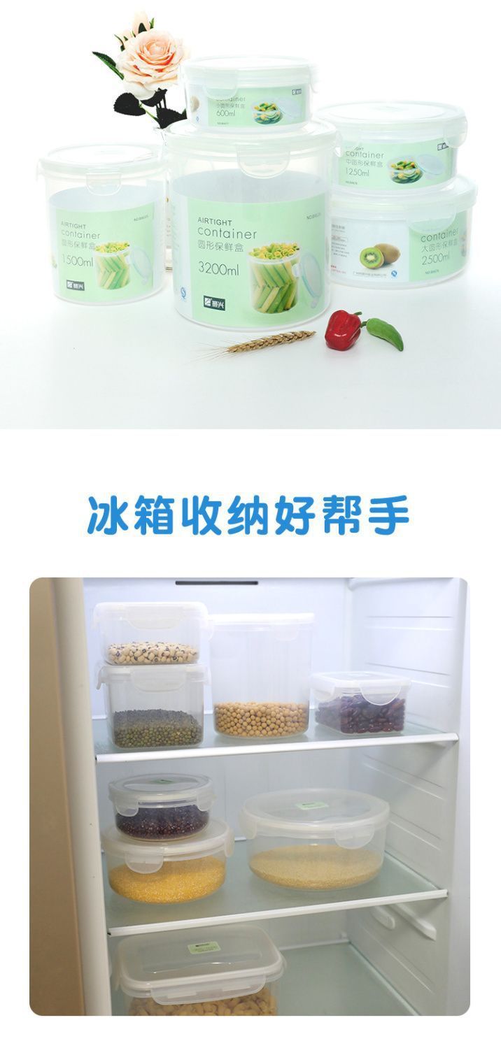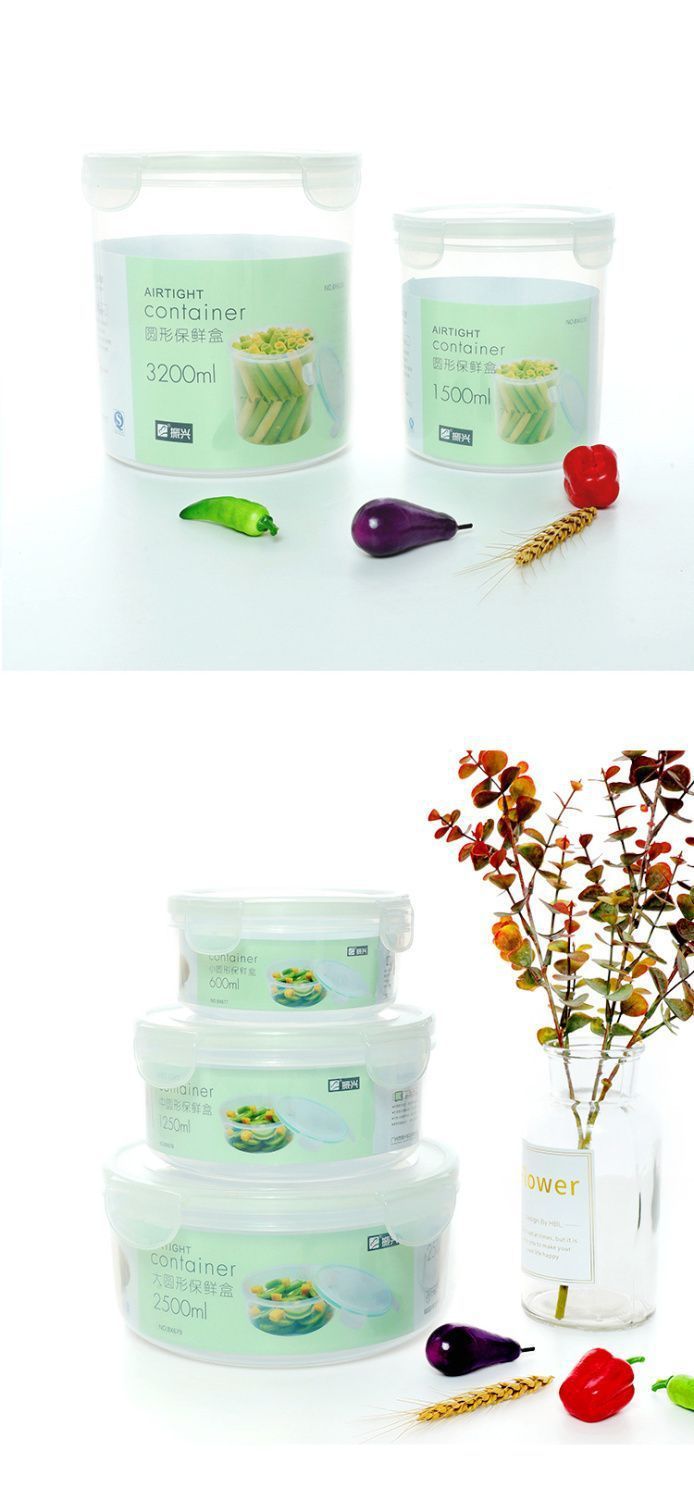 신선한 보관 상자 플라스틱 전자 레인지 도시락 직사각형 둥근 밀봉 상자 냉장고 보관 상자 과일 도시락