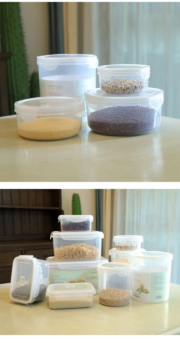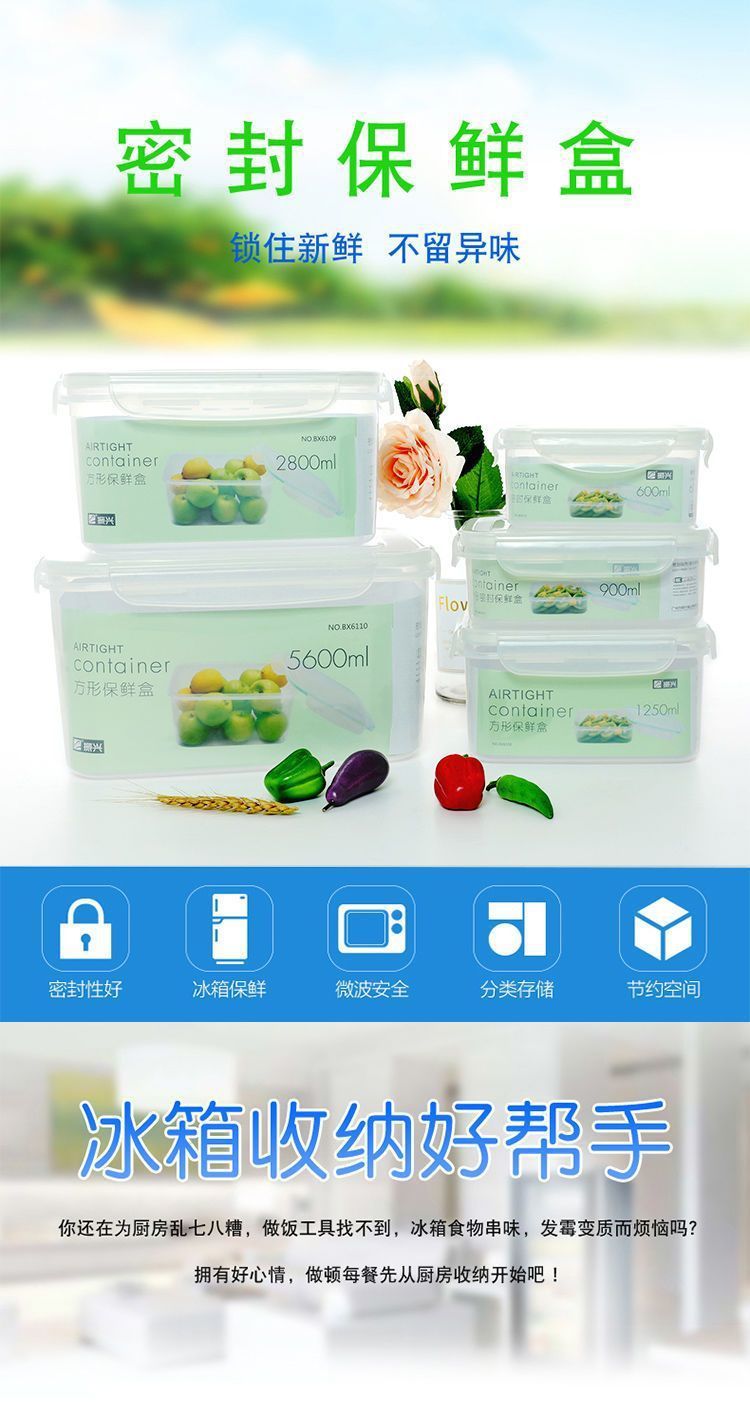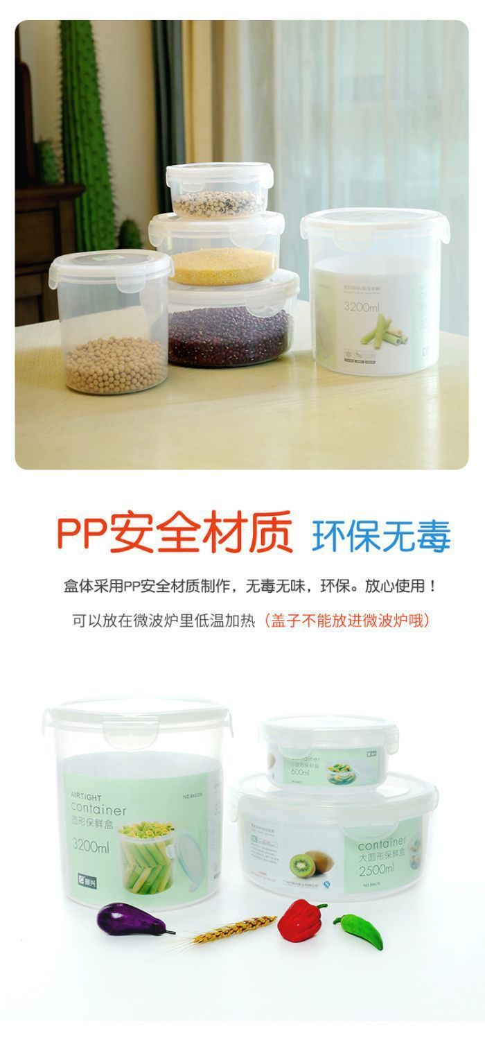 신선한 보관 상자 플라스틱 전자 레인지 도시락 직사각형 둥근 밀봉 상자 냉장고 보관 상자 과일 도시락