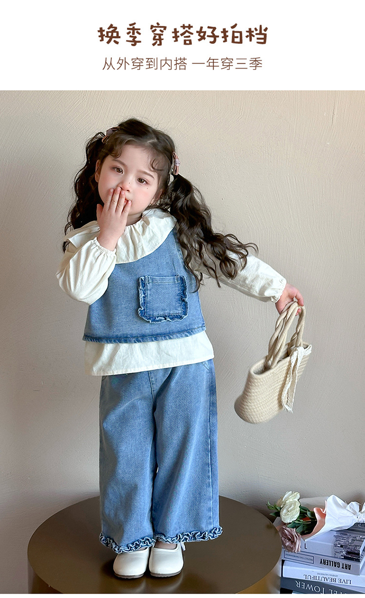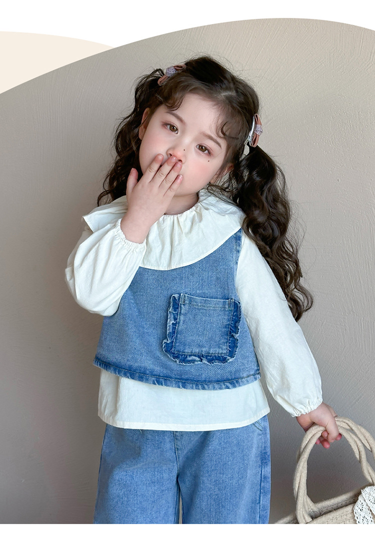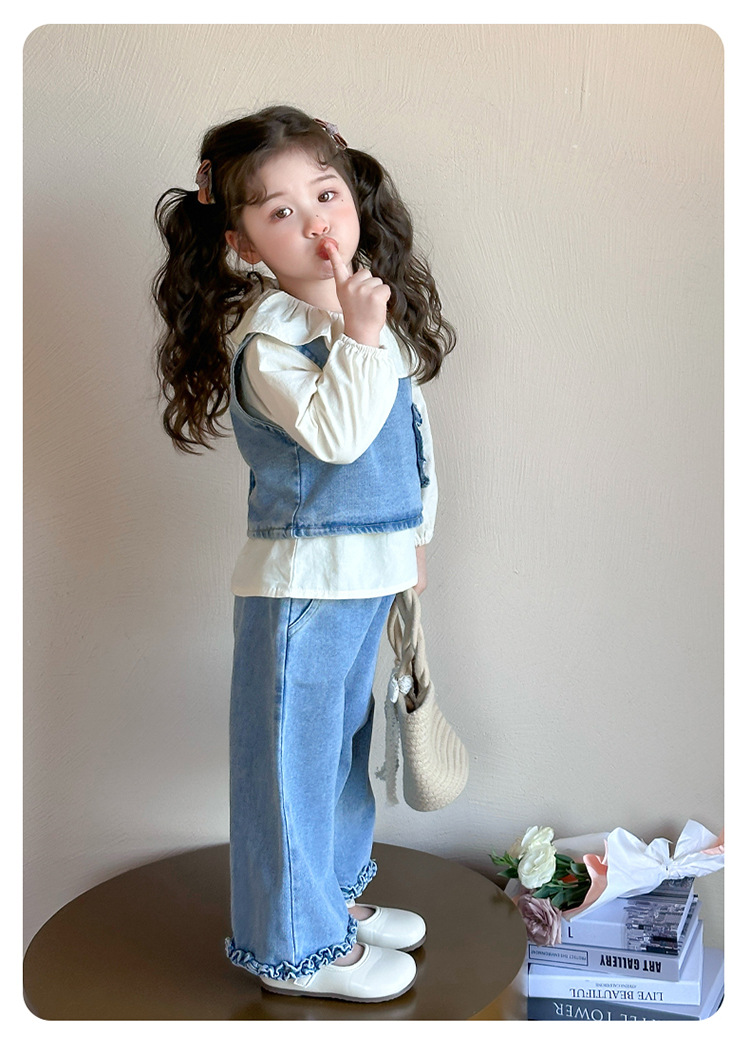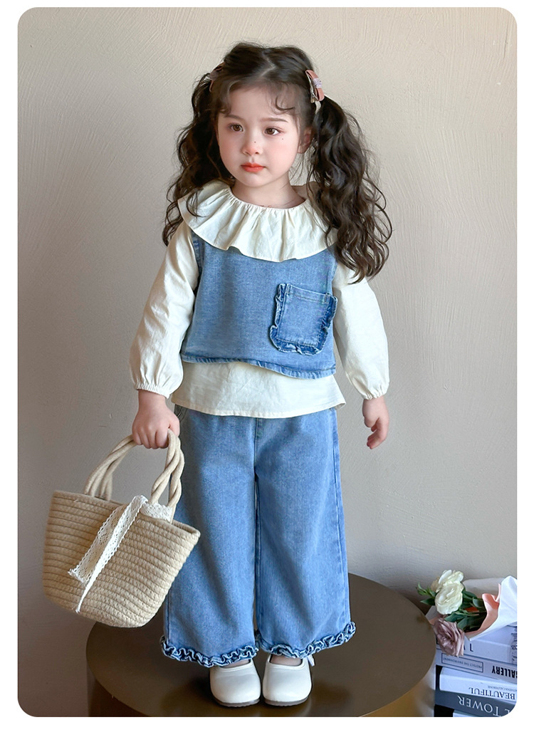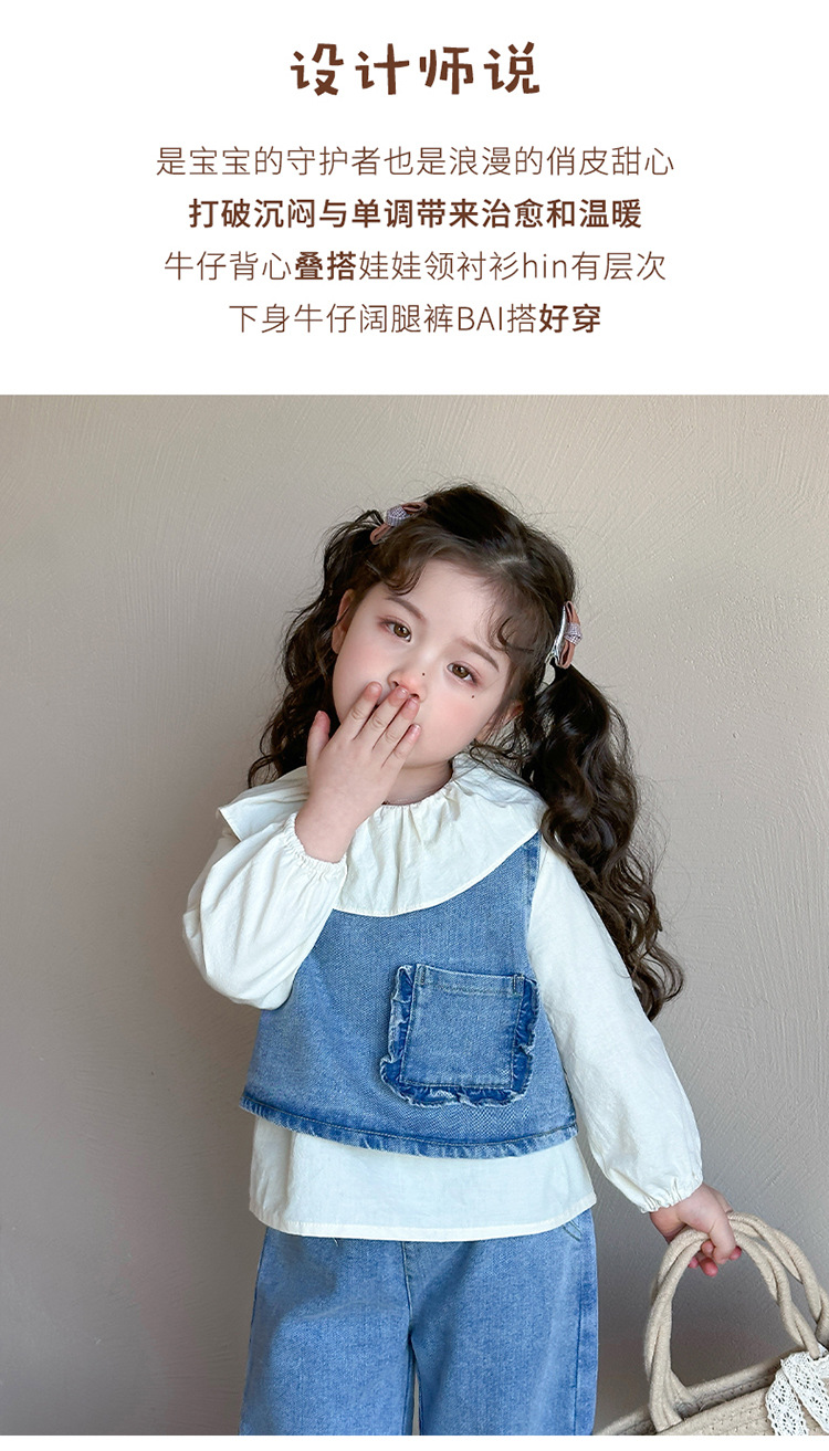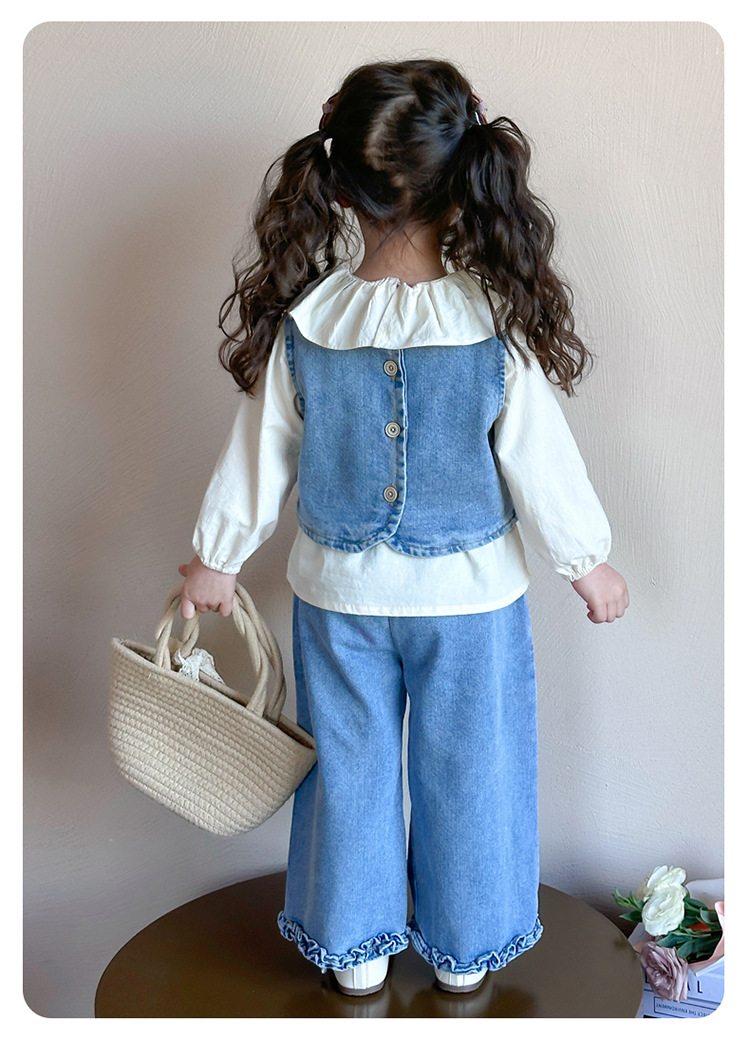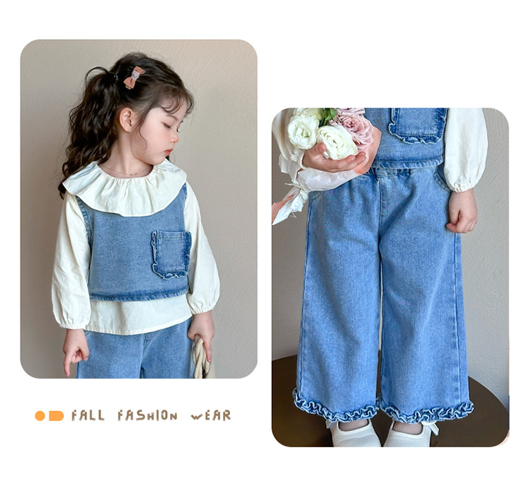 소녀의 제인 원 데님 3 조각 세트 2025 년 새로운 패션 소녀의 세련된 조끼 셔츠 세트스토어 가기