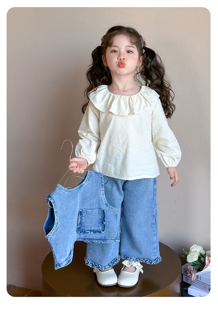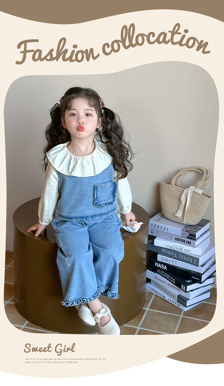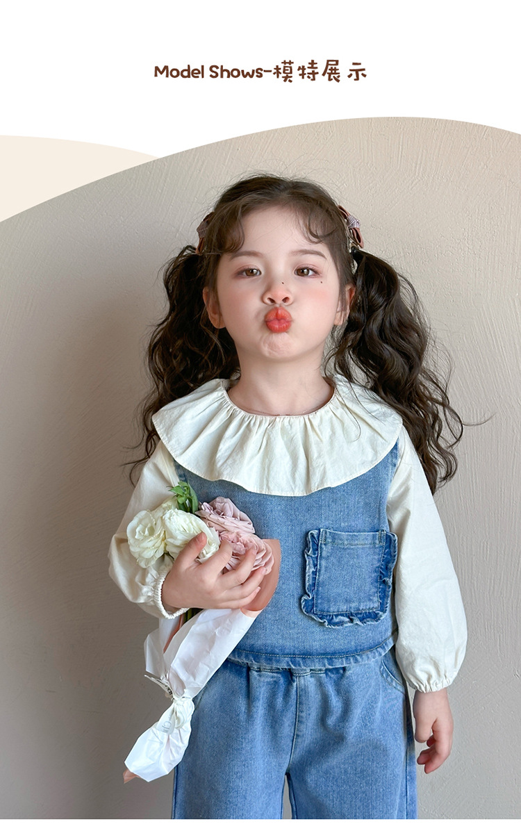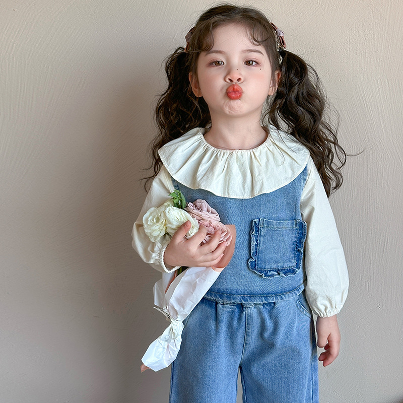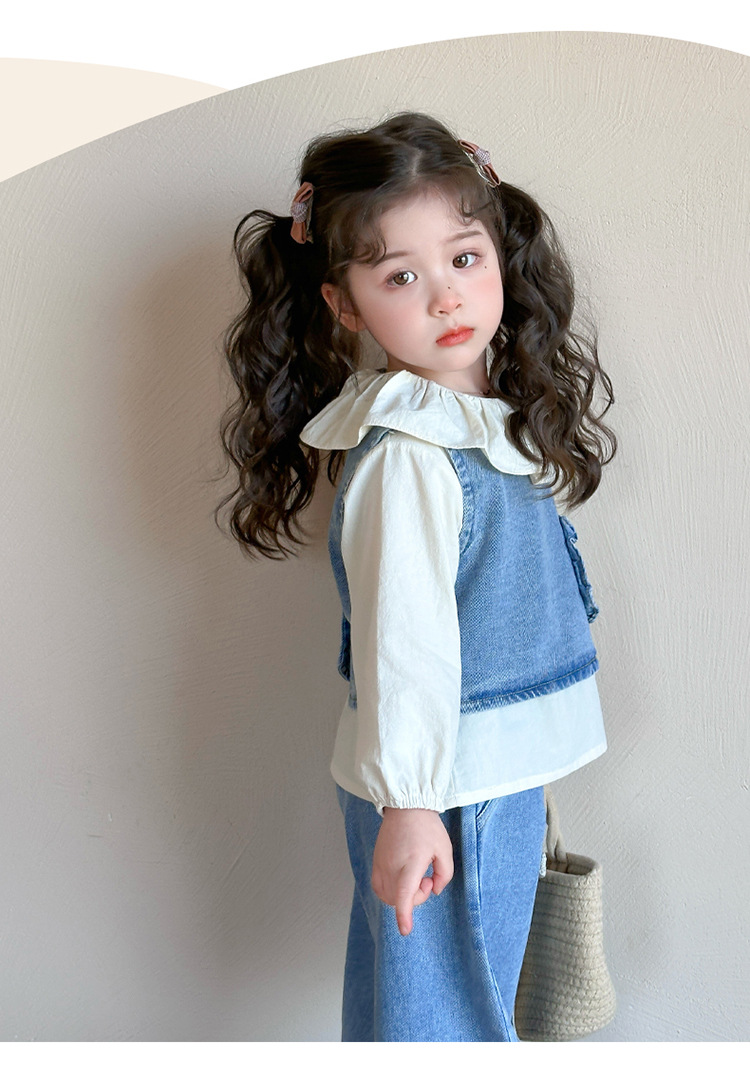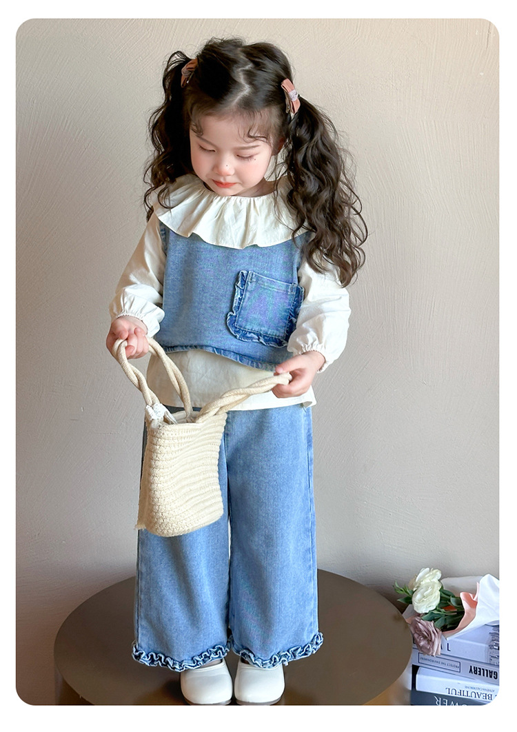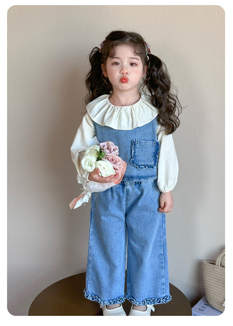 소녀의 제인 원 데님 3 조각 세트 2025 년 새로운 패션 소녀의 세련된 조끼 셔츠 세트스토어 가기