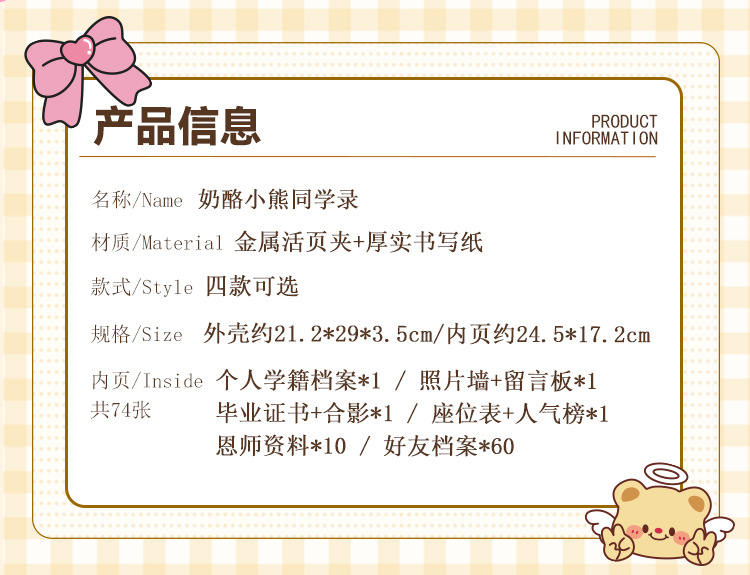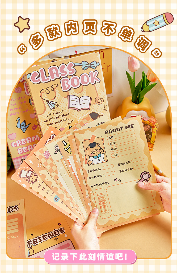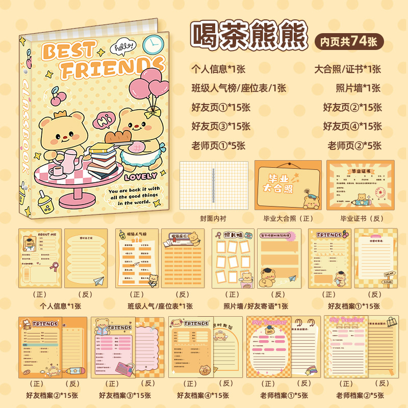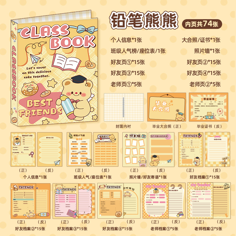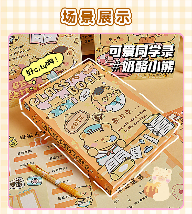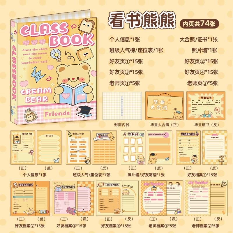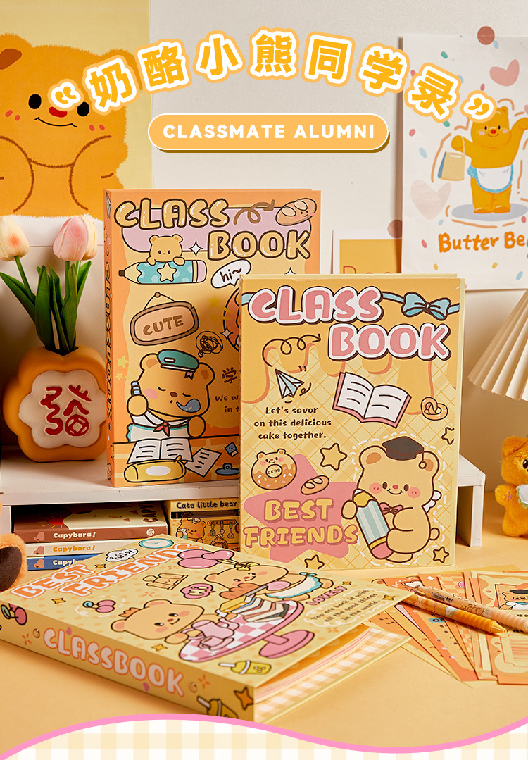 버터 치즈 베어 학생 기록 초등학교 6 학년 졸업 도서 메시지 북 소년 소녀 느슨한 잎 책스토어 가기