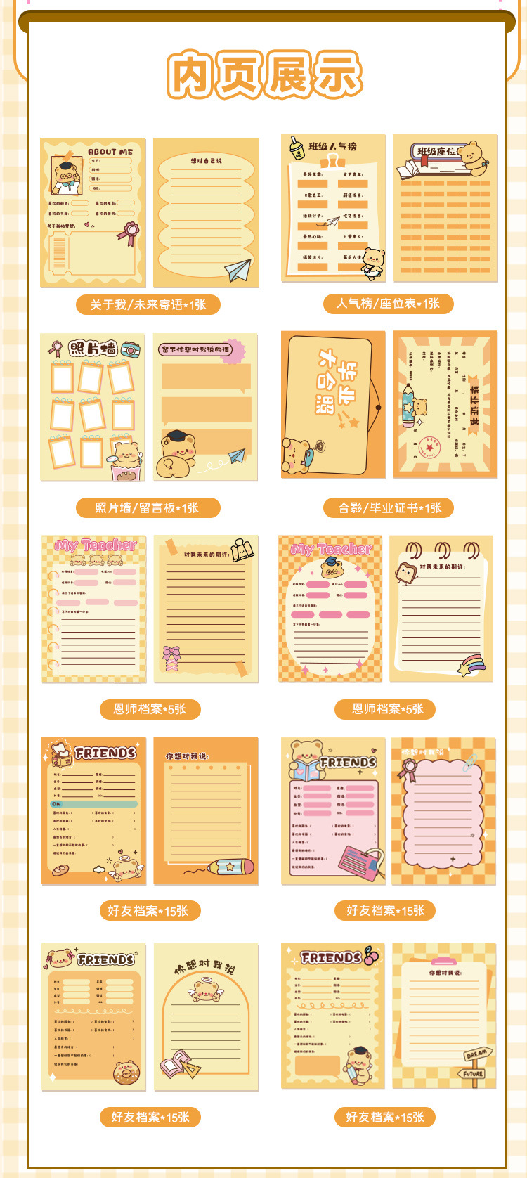 버터 치즈 베어 학생 기록 초등학교 6 학년 졸업 도서 메시지 북 소년 소녀 느슨한 잎 책