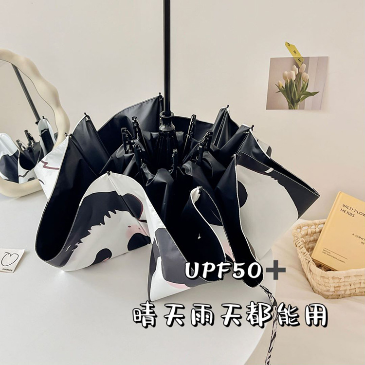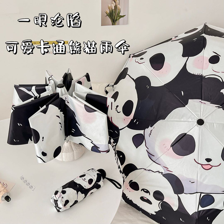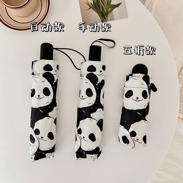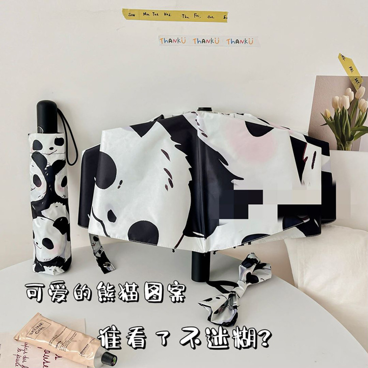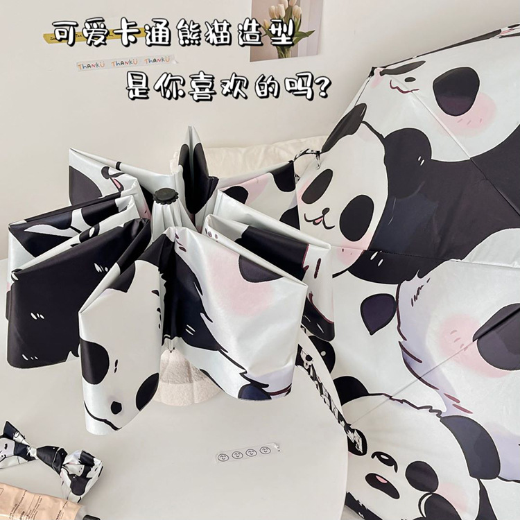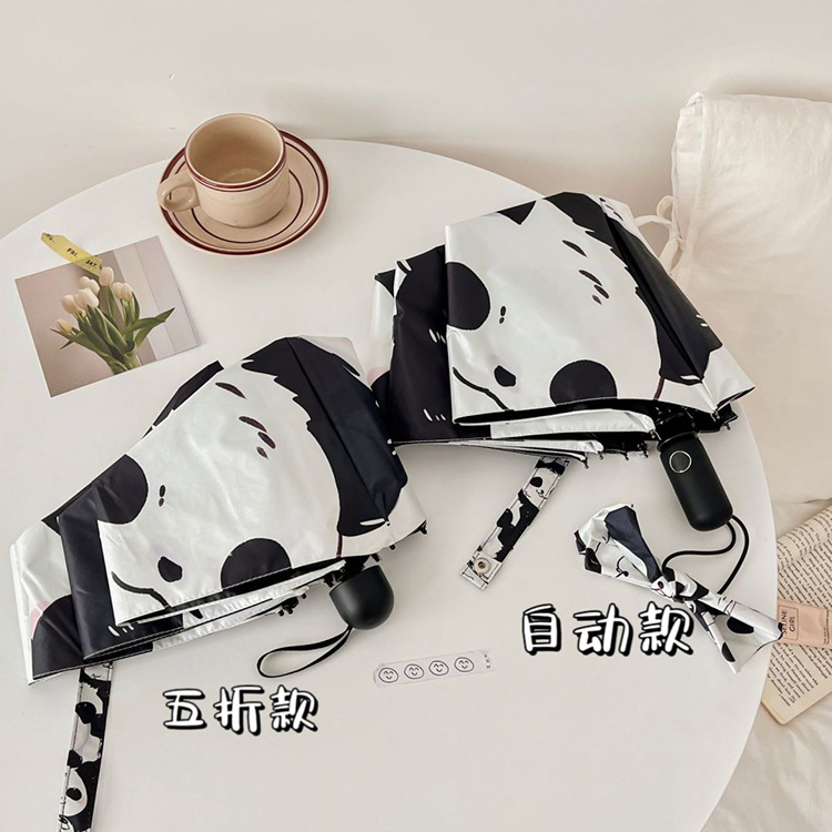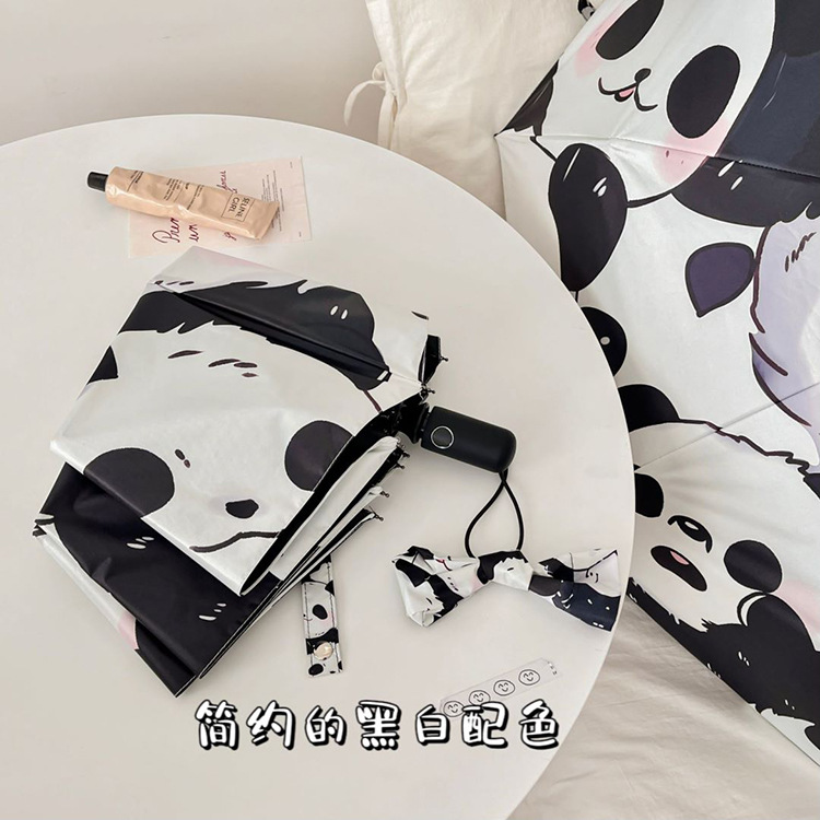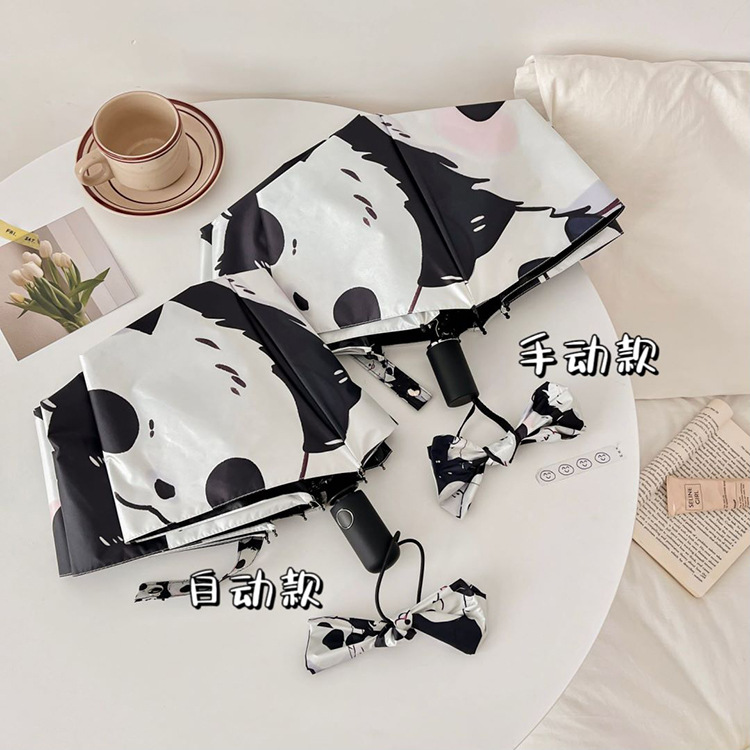 만화 팬더 우산 선 스크린 여성의 귀여운 양산 우산 이중 목적 자동 접는 우산 고 가치 우산스토어 가기