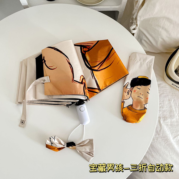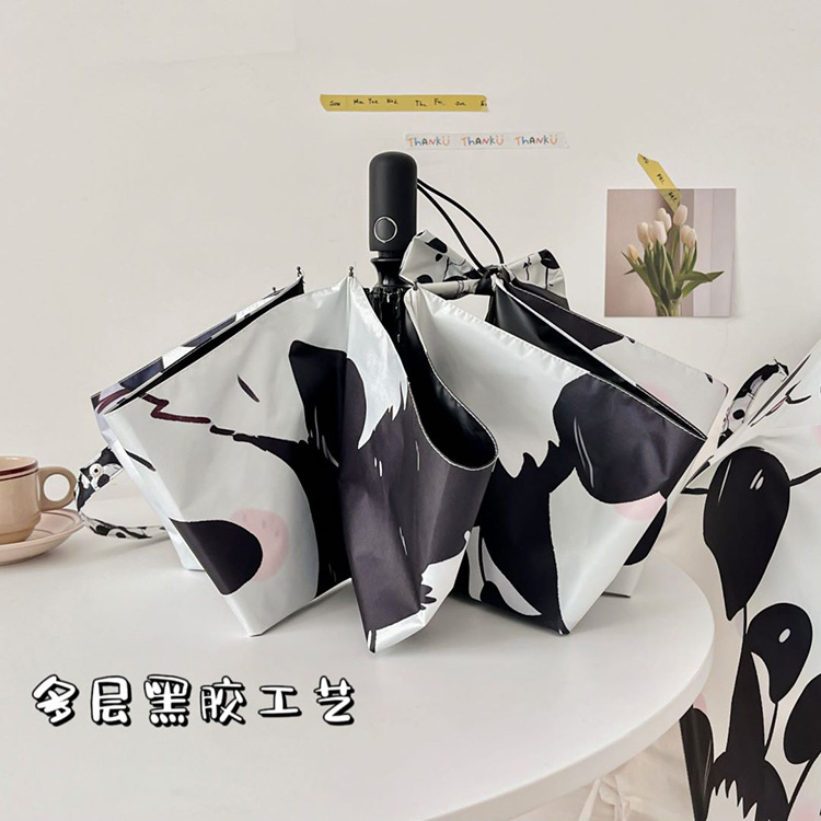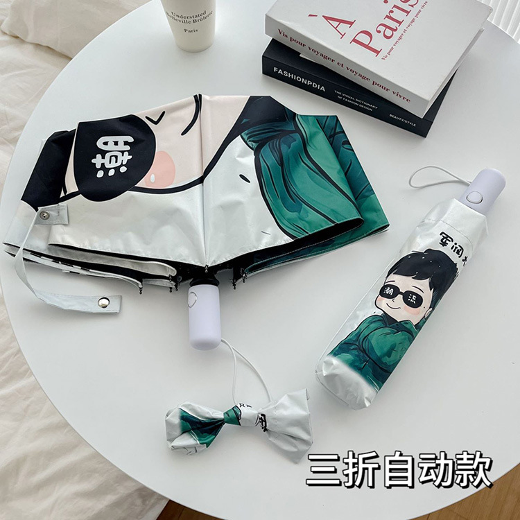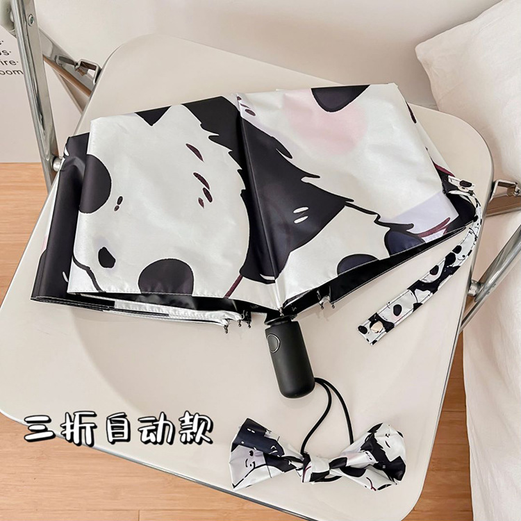 만화 팬더 우산 선 스크린 여성의 귀여운 양산 우산 이중 목적 자동 접는 우산 고 가치 우산