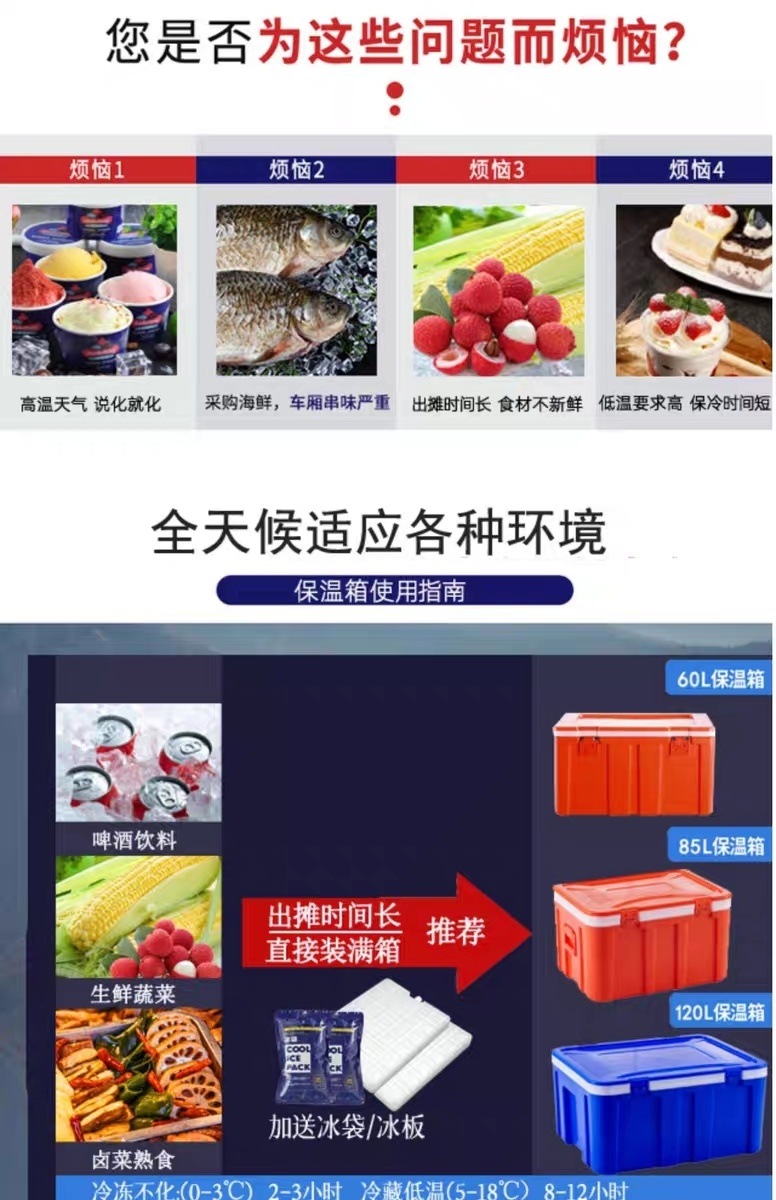 신형 대형 보온박스 상업용 플라스틱 장시간 냉장 보존 아이스 큐브 야외 무전원 테이크아웃 도매스토어 가기