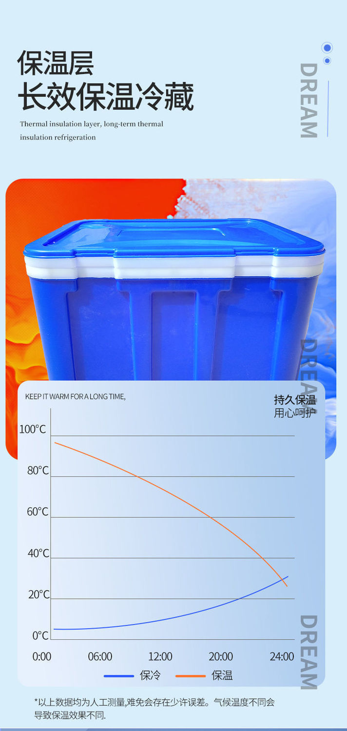 신형 대형 보온박스 상업용 플라스틱 장시간 냉장 보존 아이스 큐브 야외 무전원 테이크아웃 도매