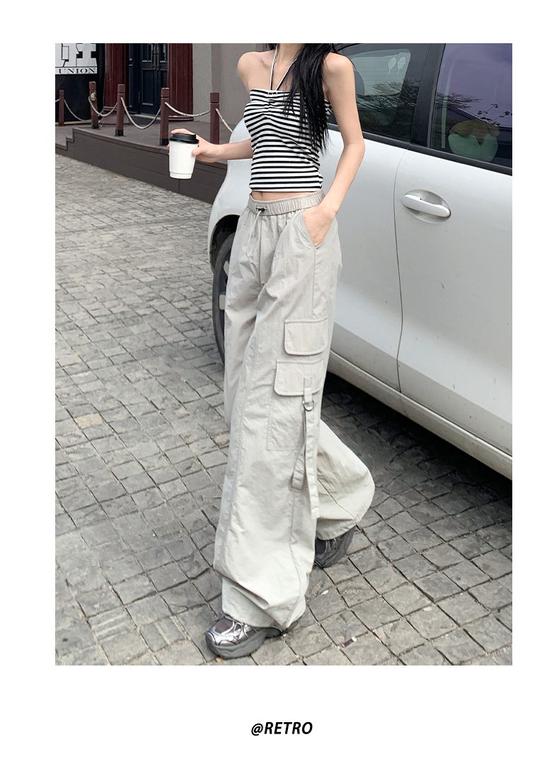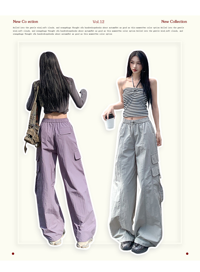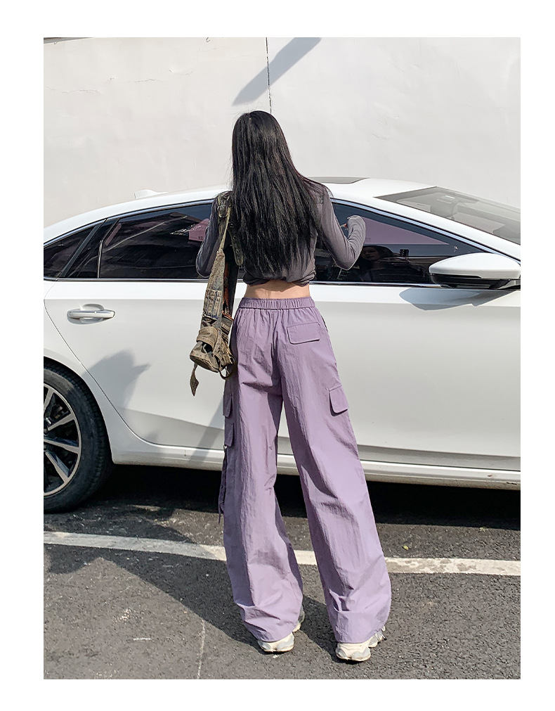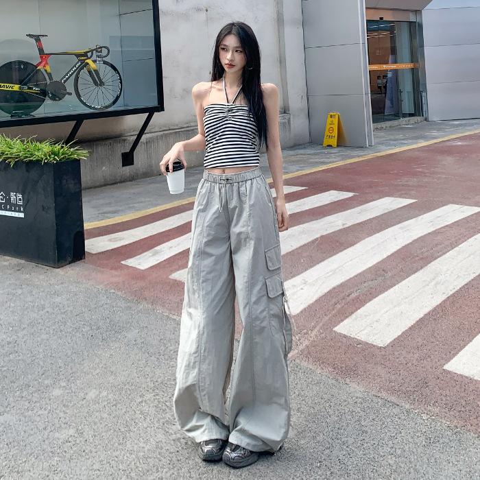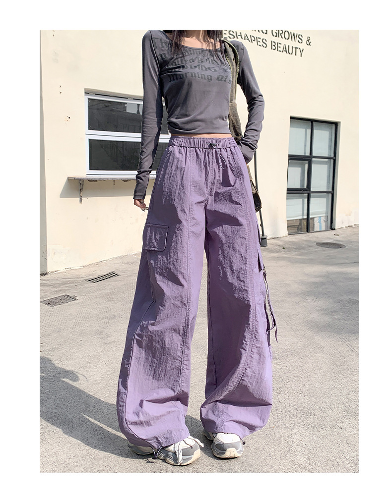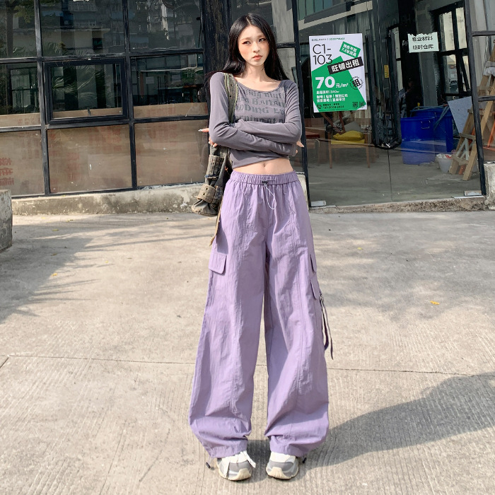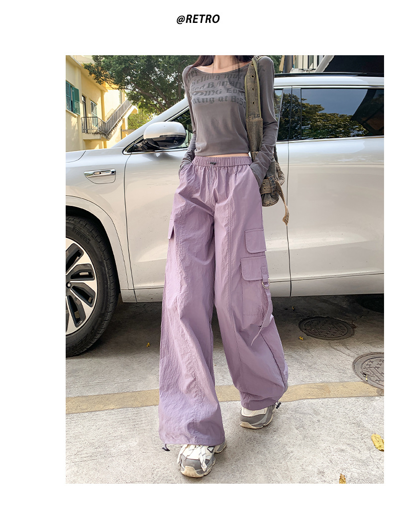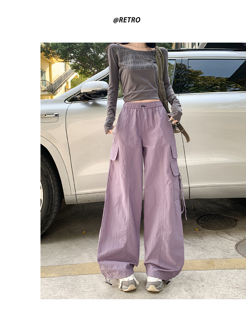 미국 바지 여성 여름 얇은 2025 새로운 좁은 버전 넓은 다리 캐주얼 스포츠 바지 등산 낙하산 바지스토어 가기