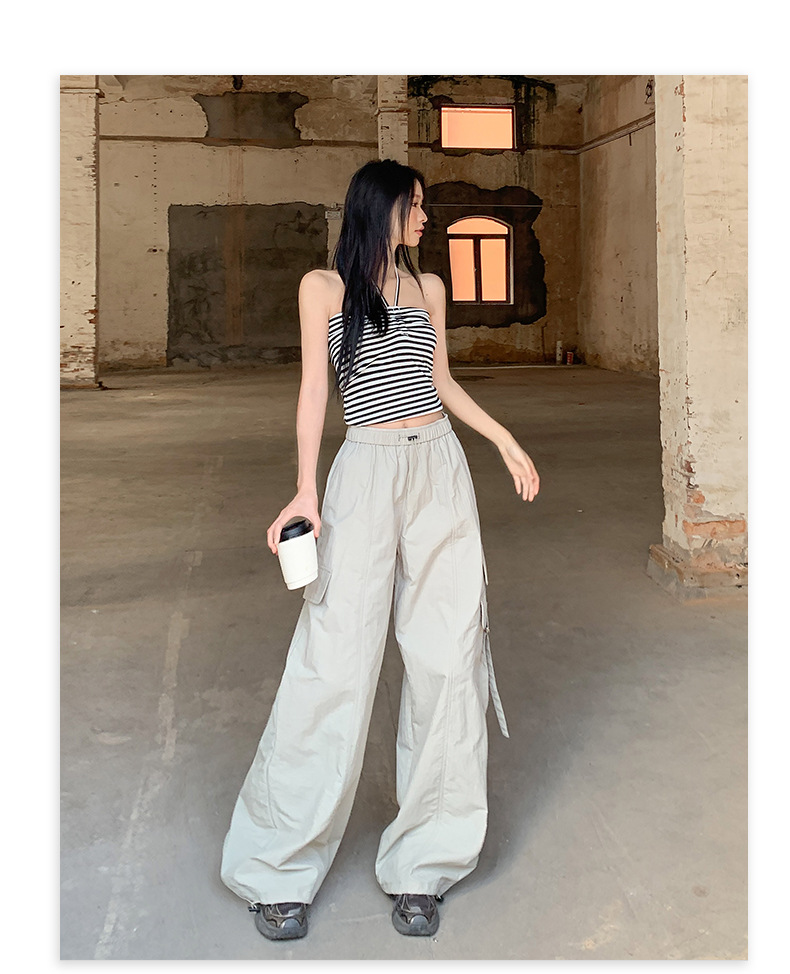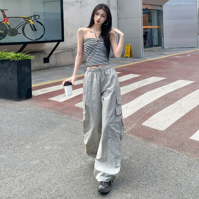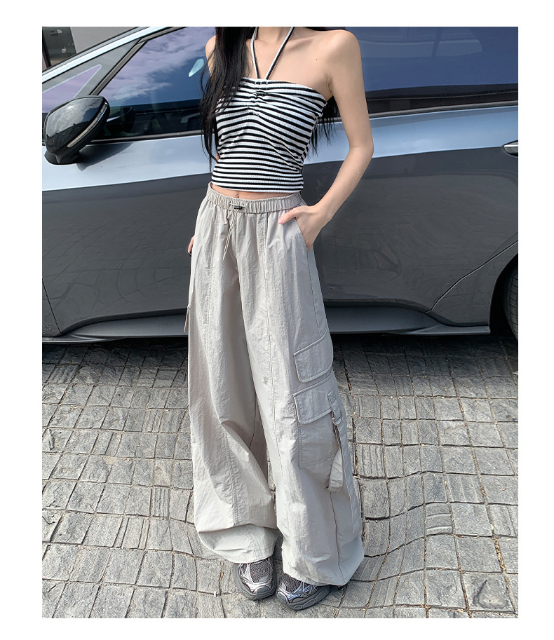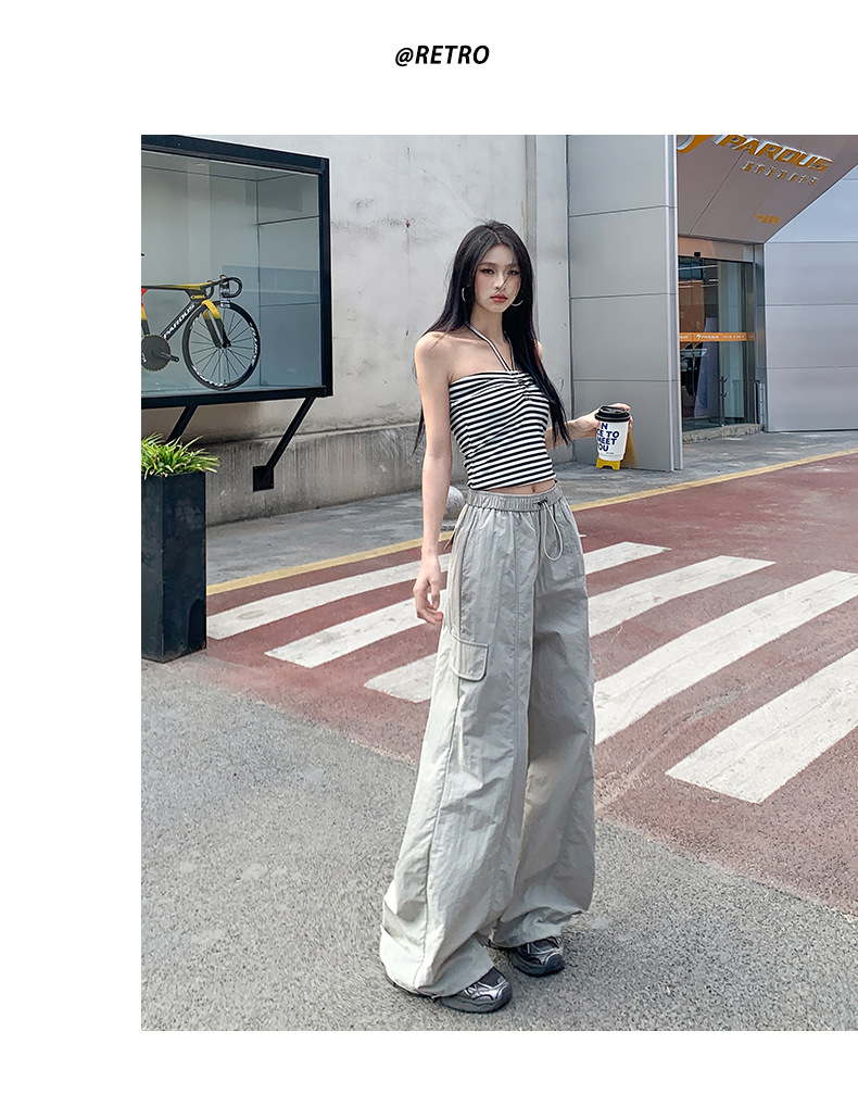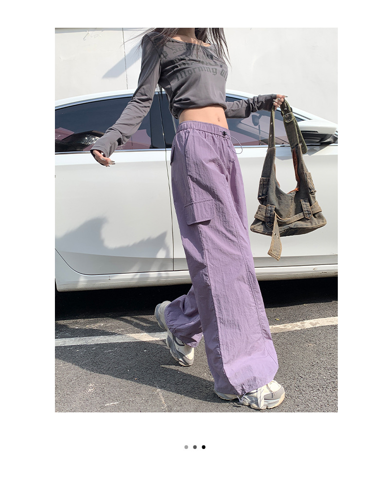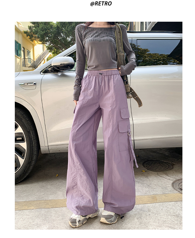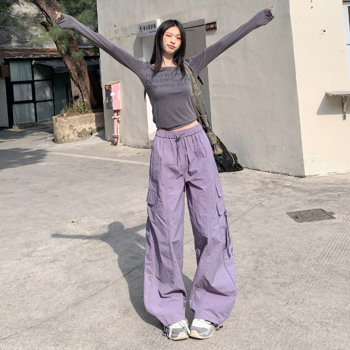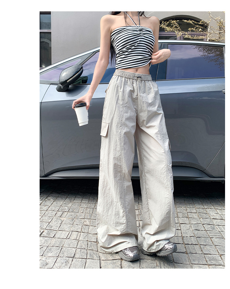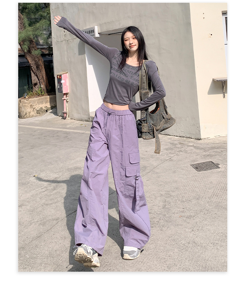 미국 바지 여성 여름 얇은 2025 새로운 좁은 버전 넓은 다리 캐주얼 스포츠 바지 등산 낙하산 바지스토어 가기