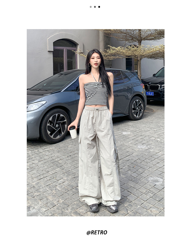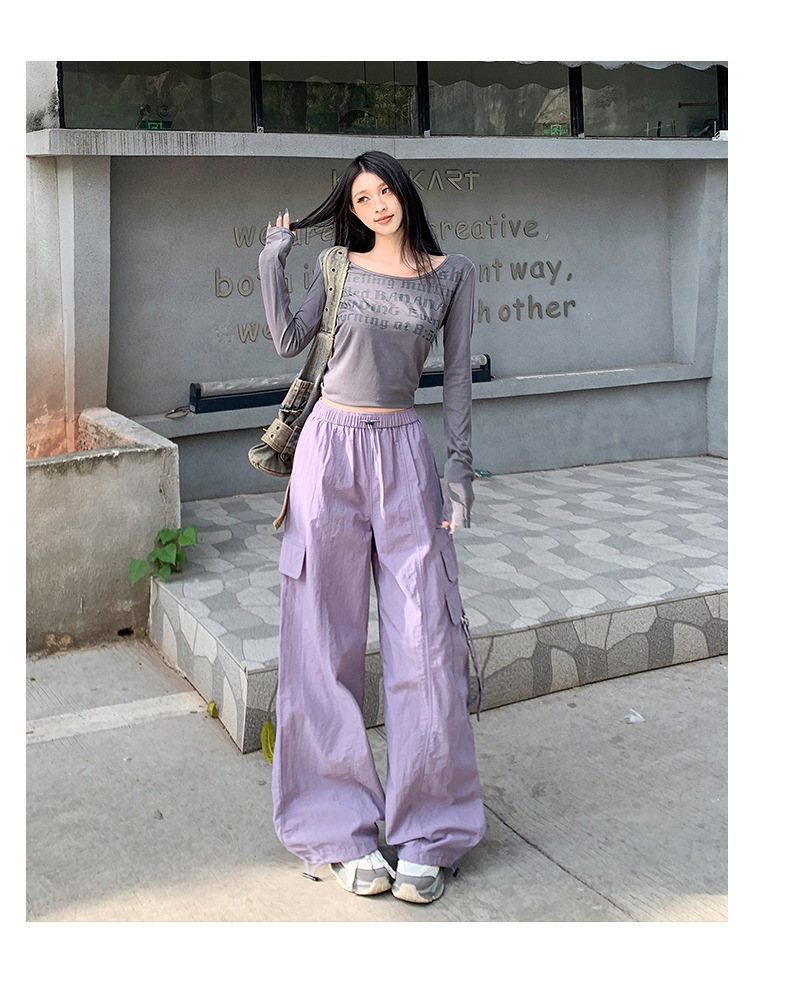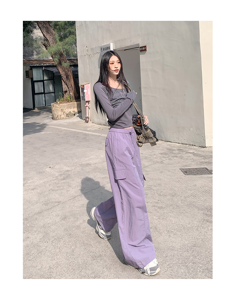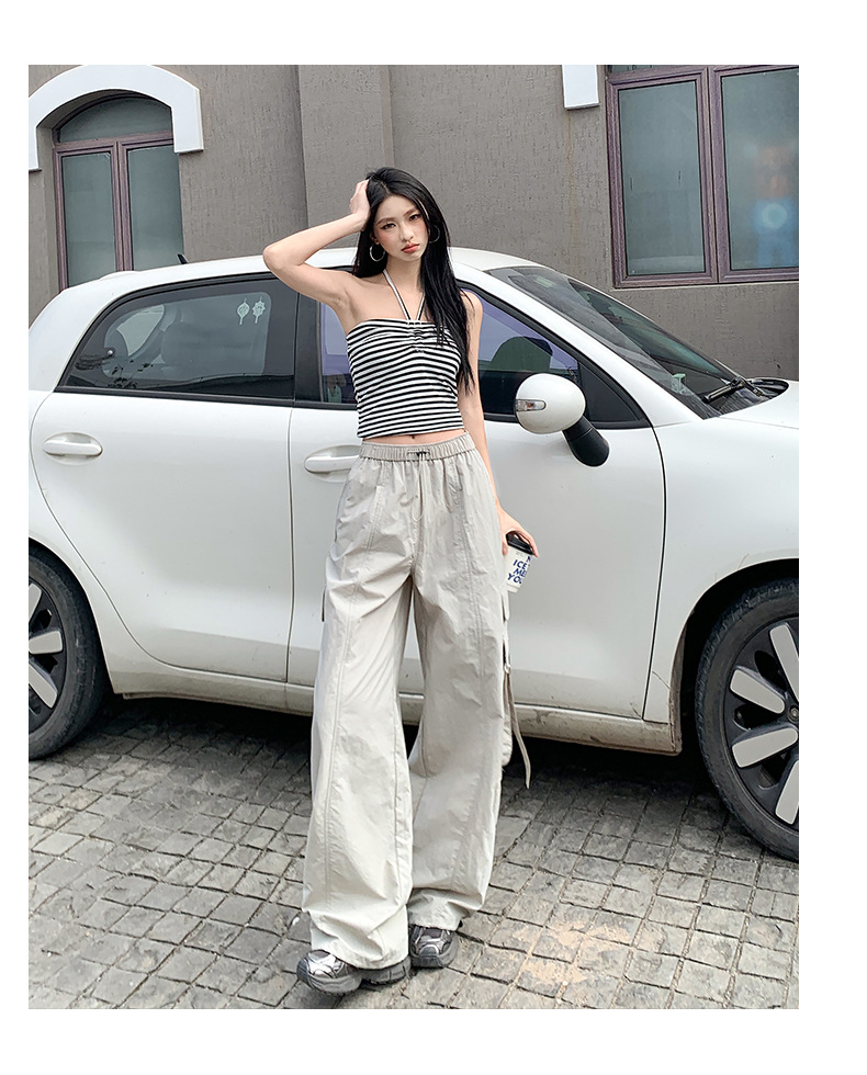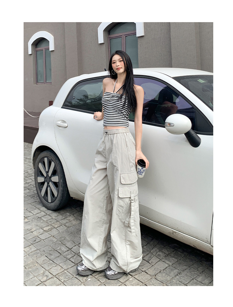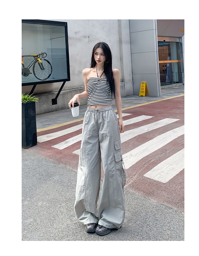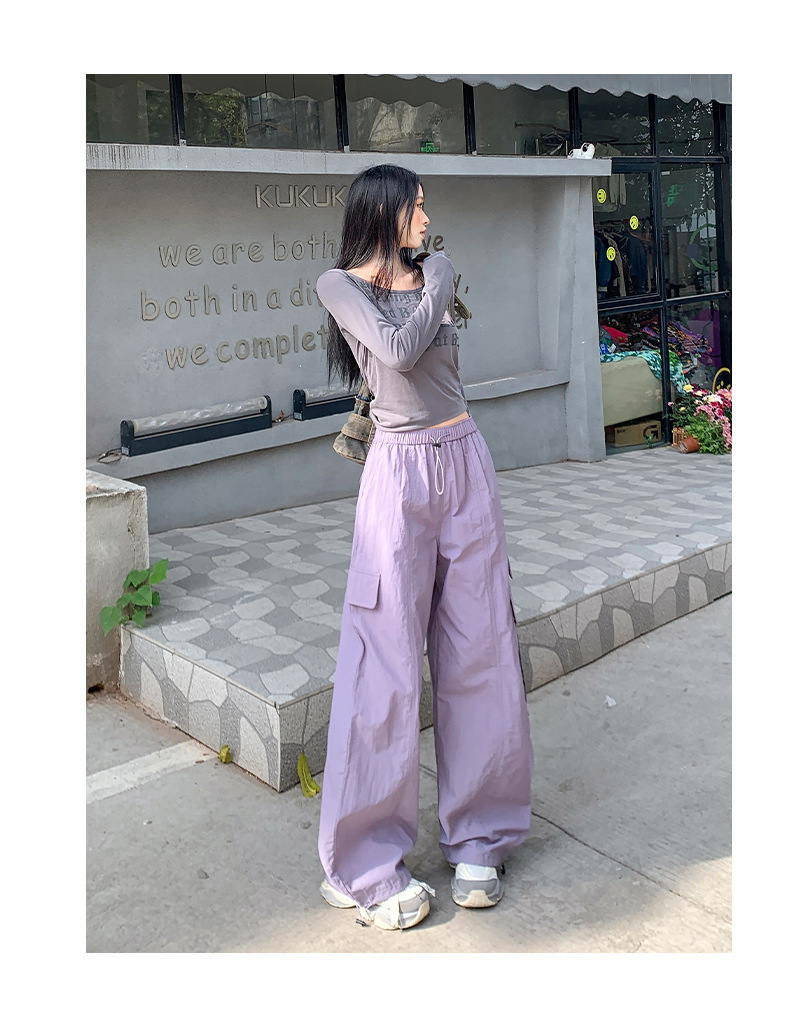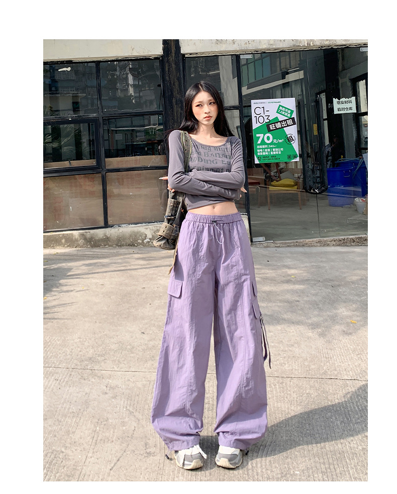 미국 바지 여성 여름 얇은 2025 새로운 좁은 버전 넓은 다리 캐주얼 스포츠 바지 등산 낙하산 바지스토어 가기