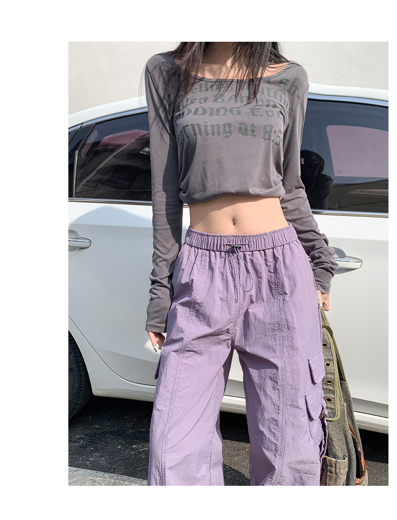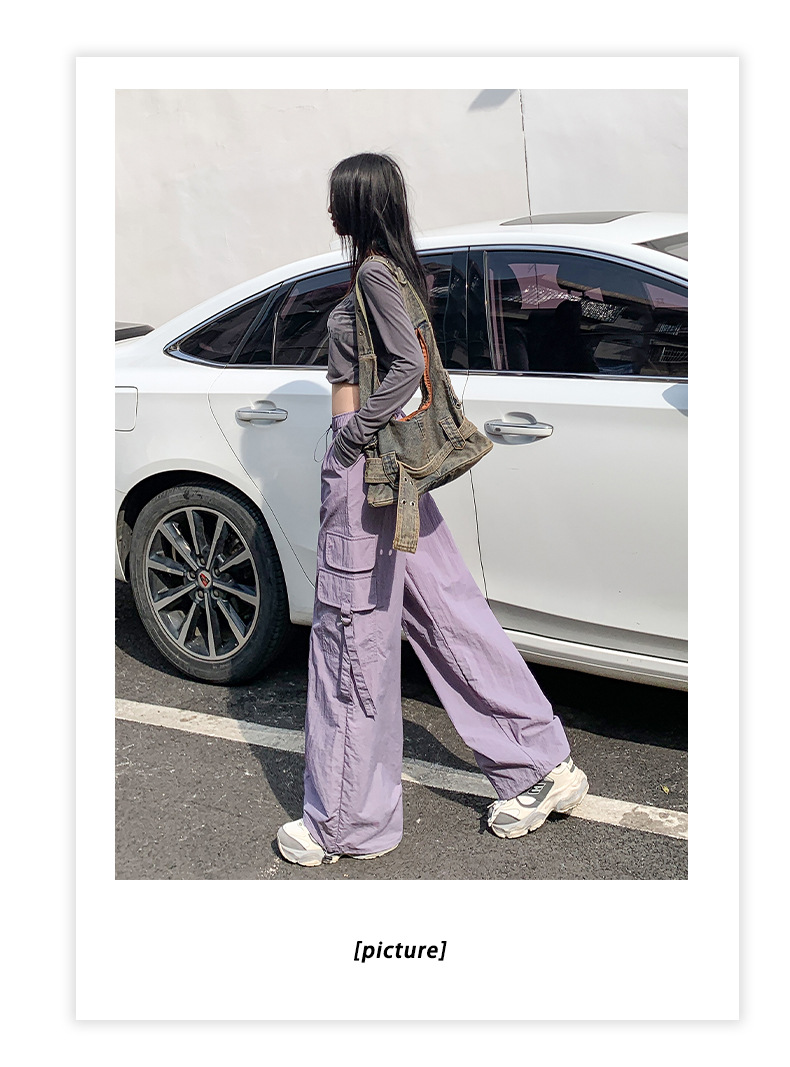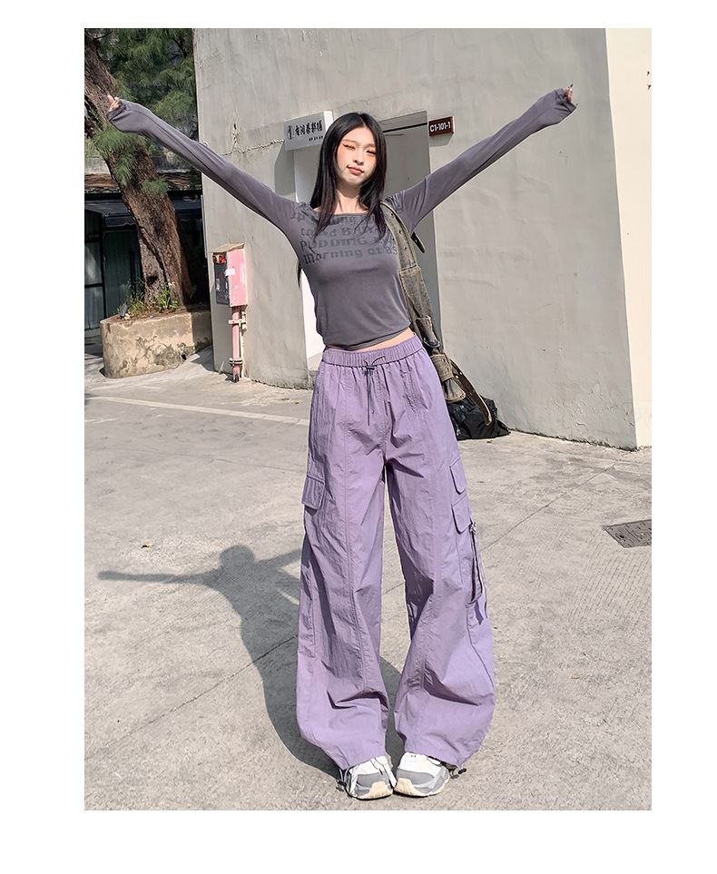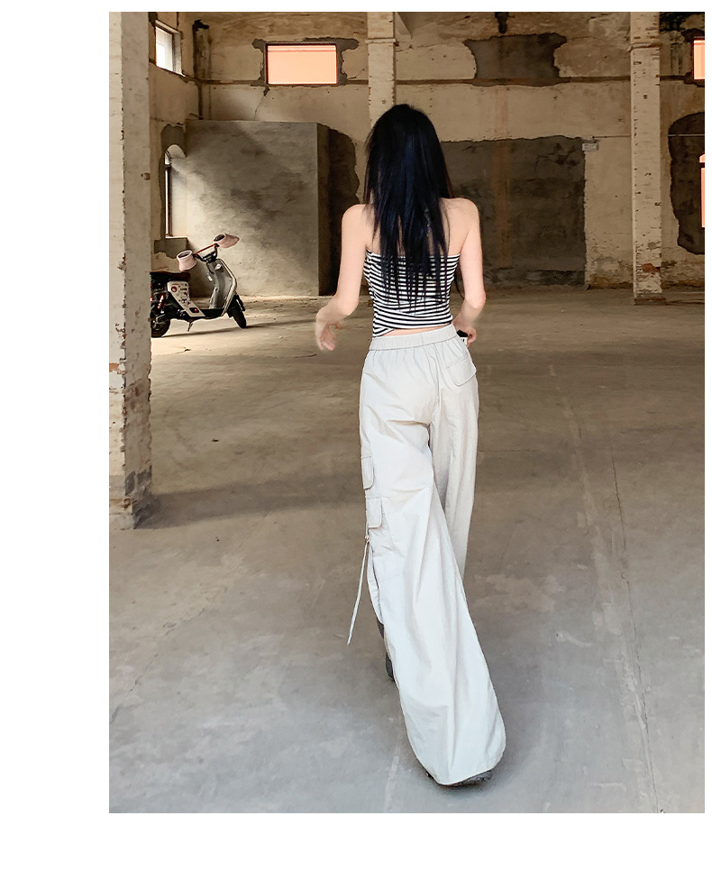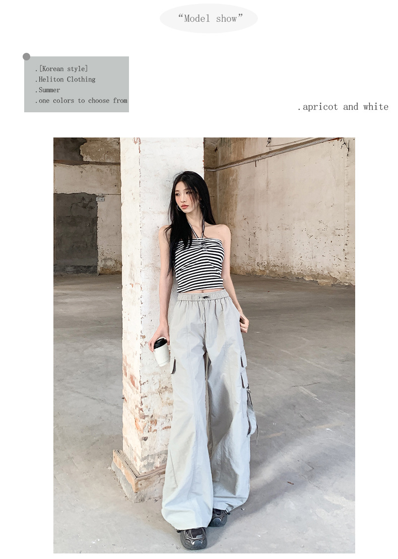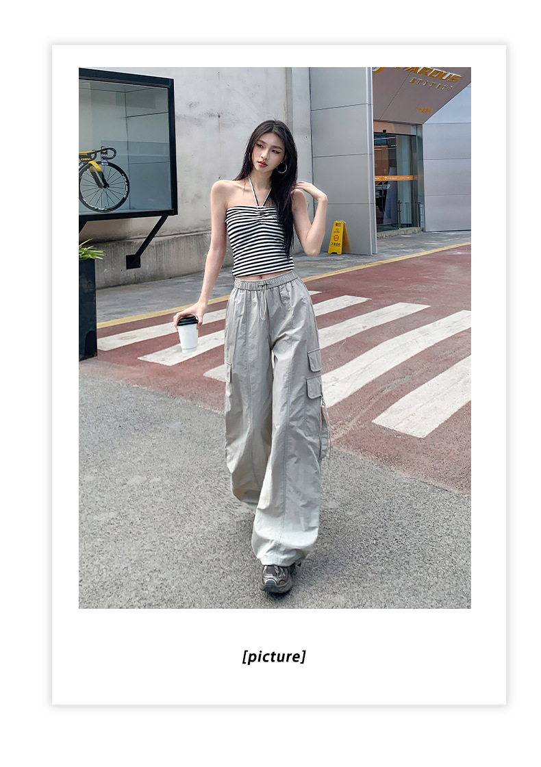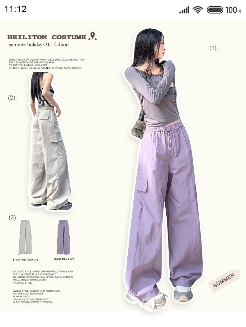 미국 바지 여성 여름 얇은 2025 새로운 좁은 버전 넓은 다리 캐주얼 스포츠 바지 등산 낙하산 바지스토어 가기
