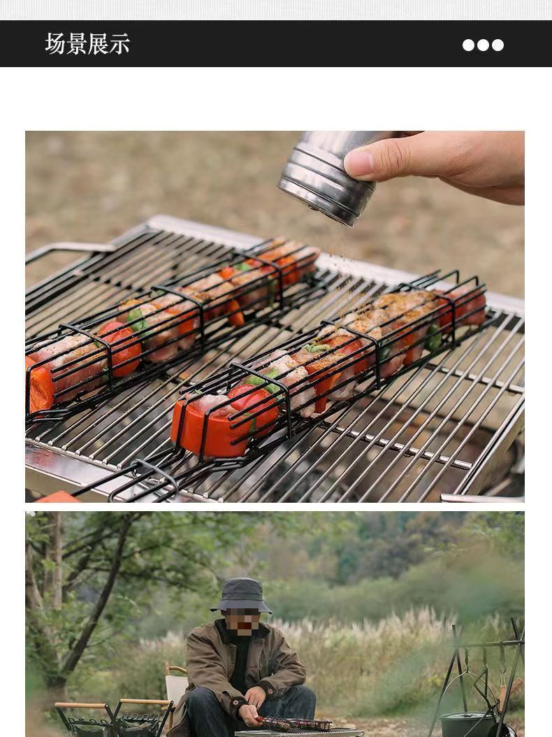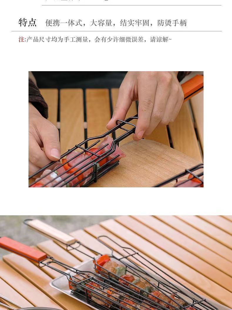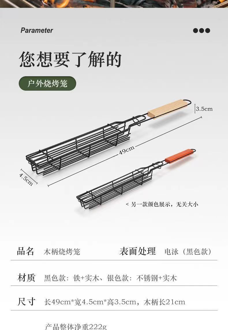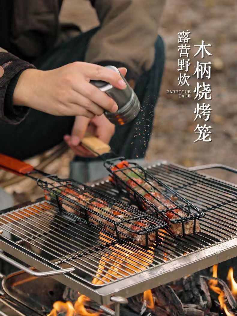 야외 캠핑 스테인레스 스틸 그릴 그물 바베큐 그릴 스톨 도구 나무 손잡이 바베큐 케이지 핫도그 소시지 바베큐 홀더