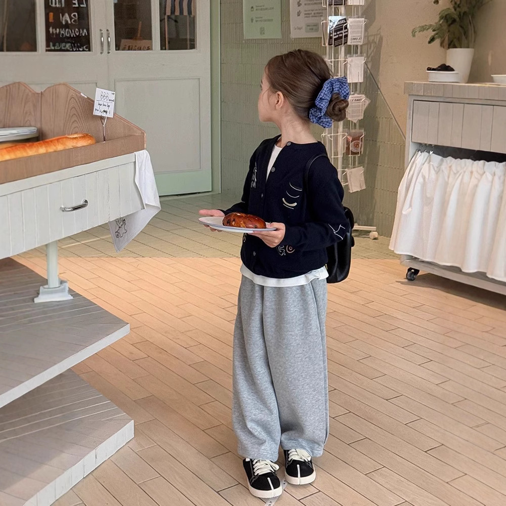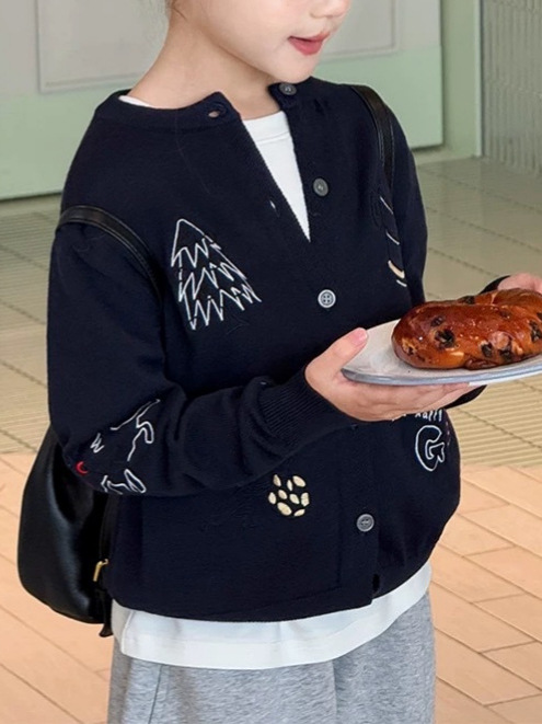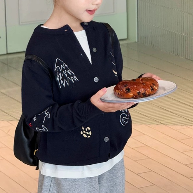 소녀 스웨터 카디건 재킷 봄 2025 새로운 한국식 어린이 레트로 올매치 소녀의 스타일라인 니트 탑