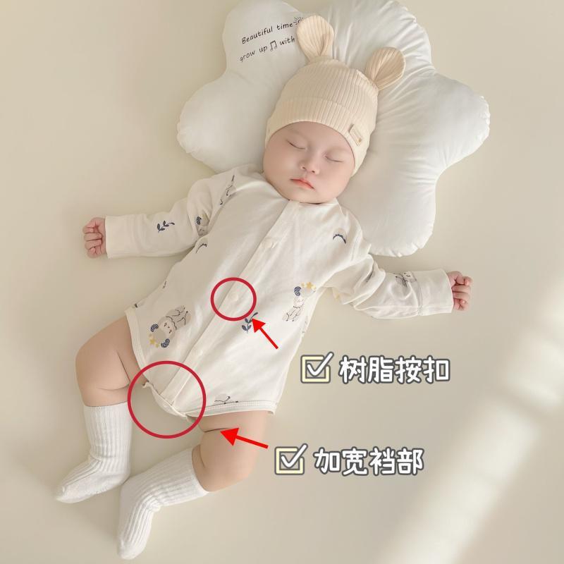 • 방귀옷 [순백색 왕관] 봄여름 순면 삼각 롬퍼