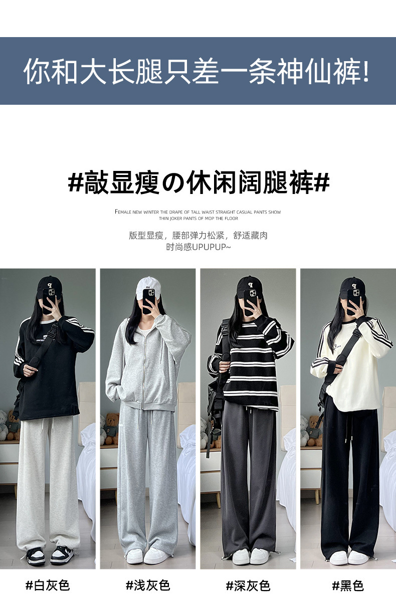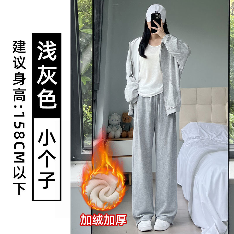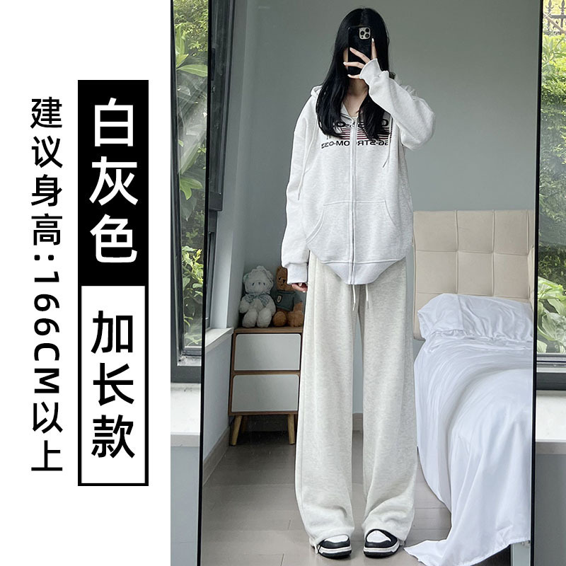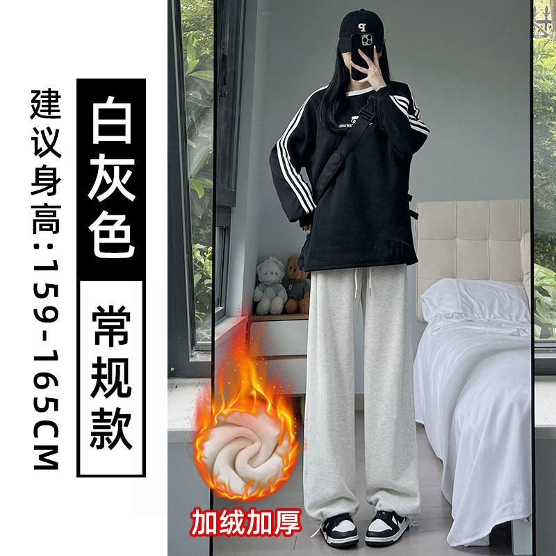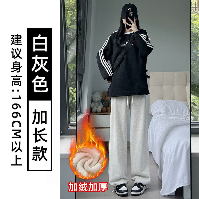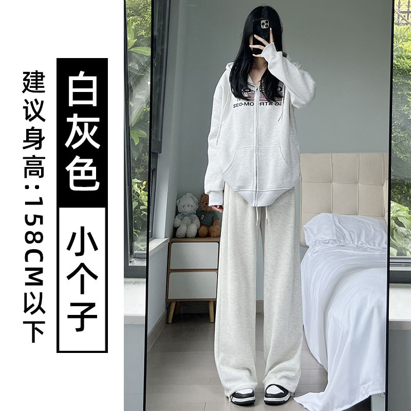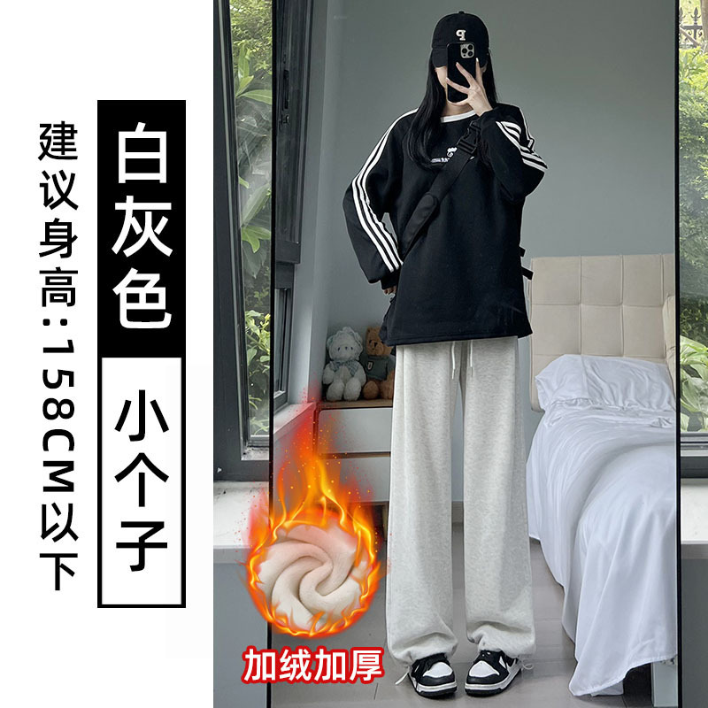 작은 기모 스포츠 바지 여자 가을과 겨울 2024 새로운 도착 흰색 뭉치 다리 운동복 높은 허리 캐주얼 스트레이트 와이드 레그 바지스토어 가기