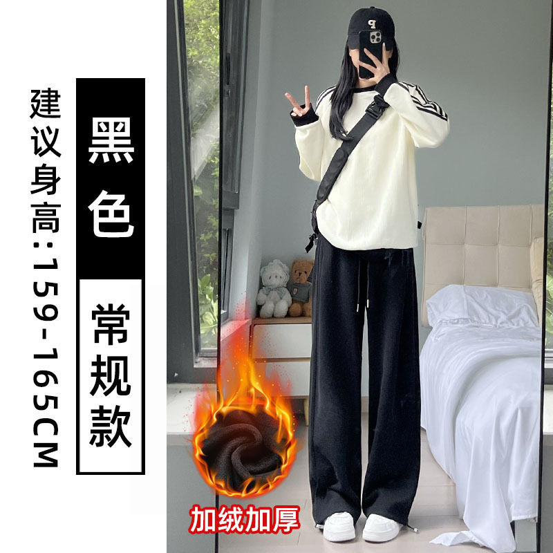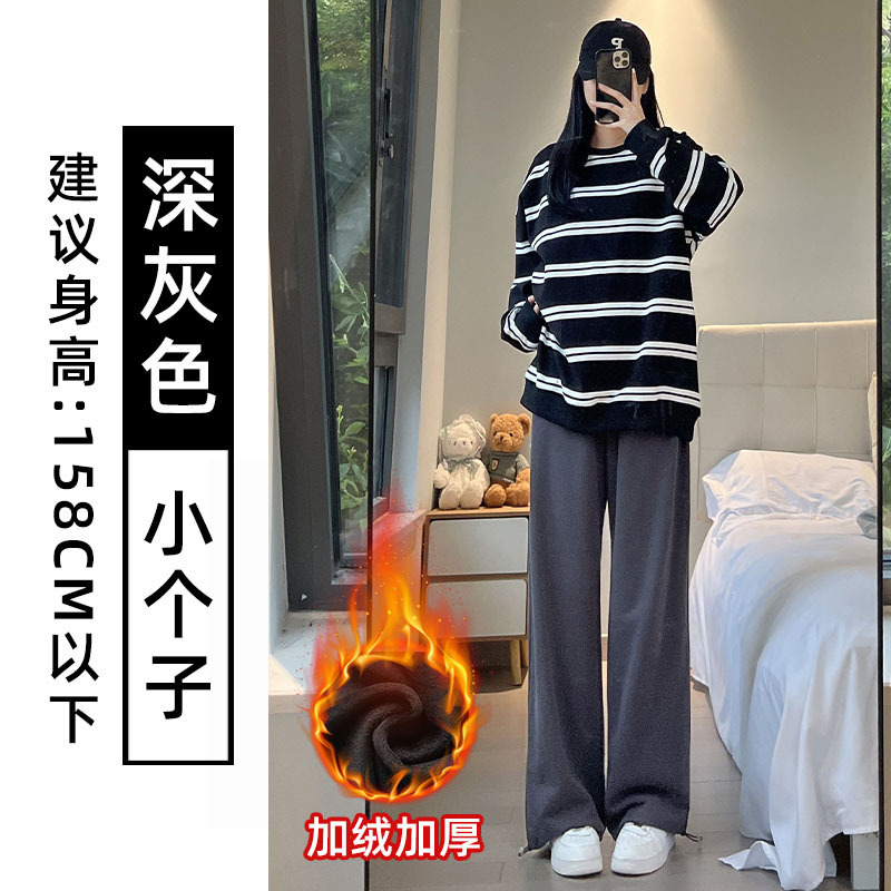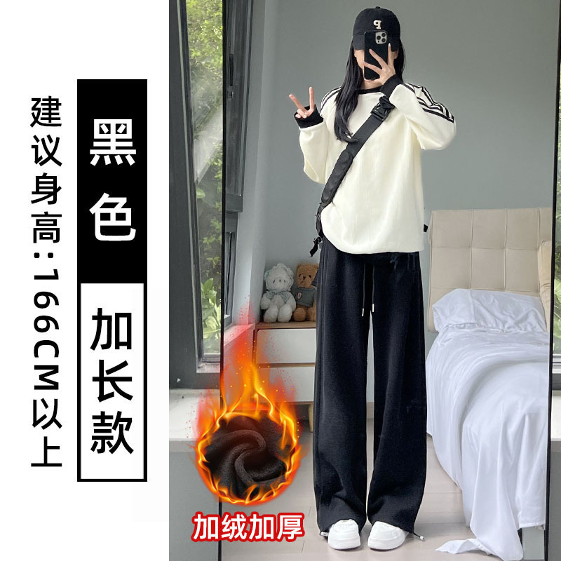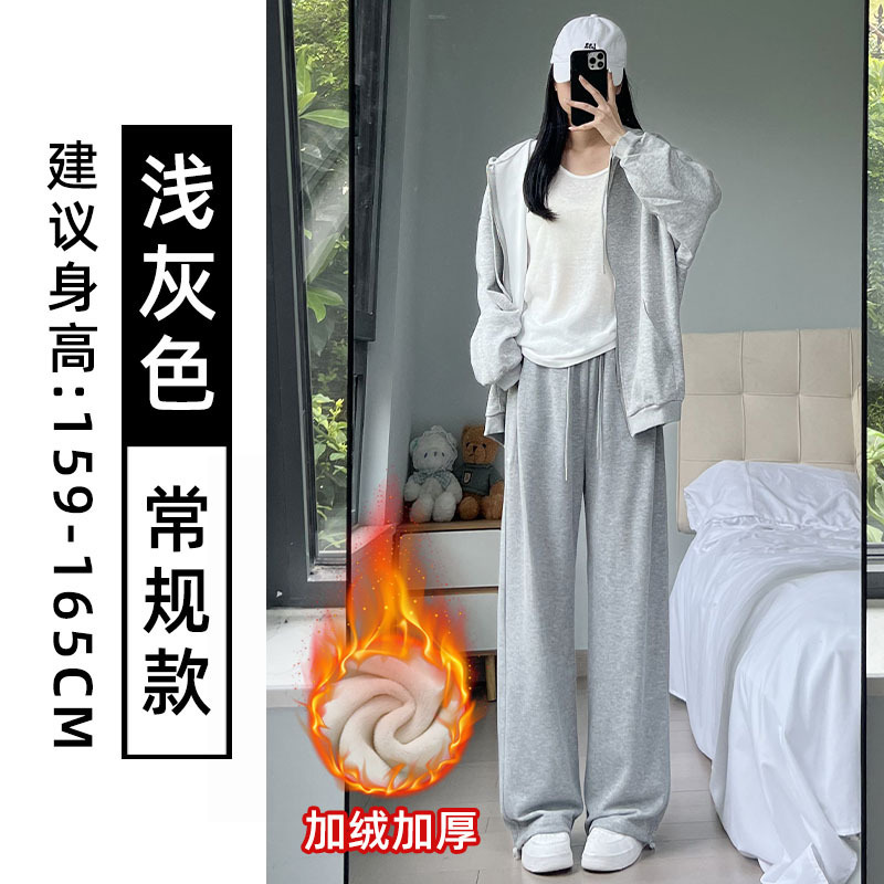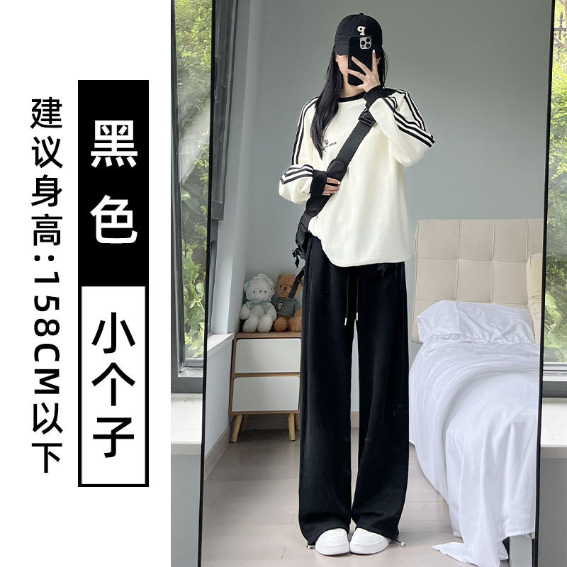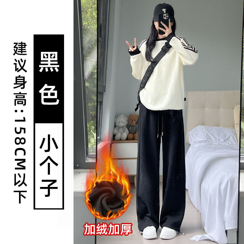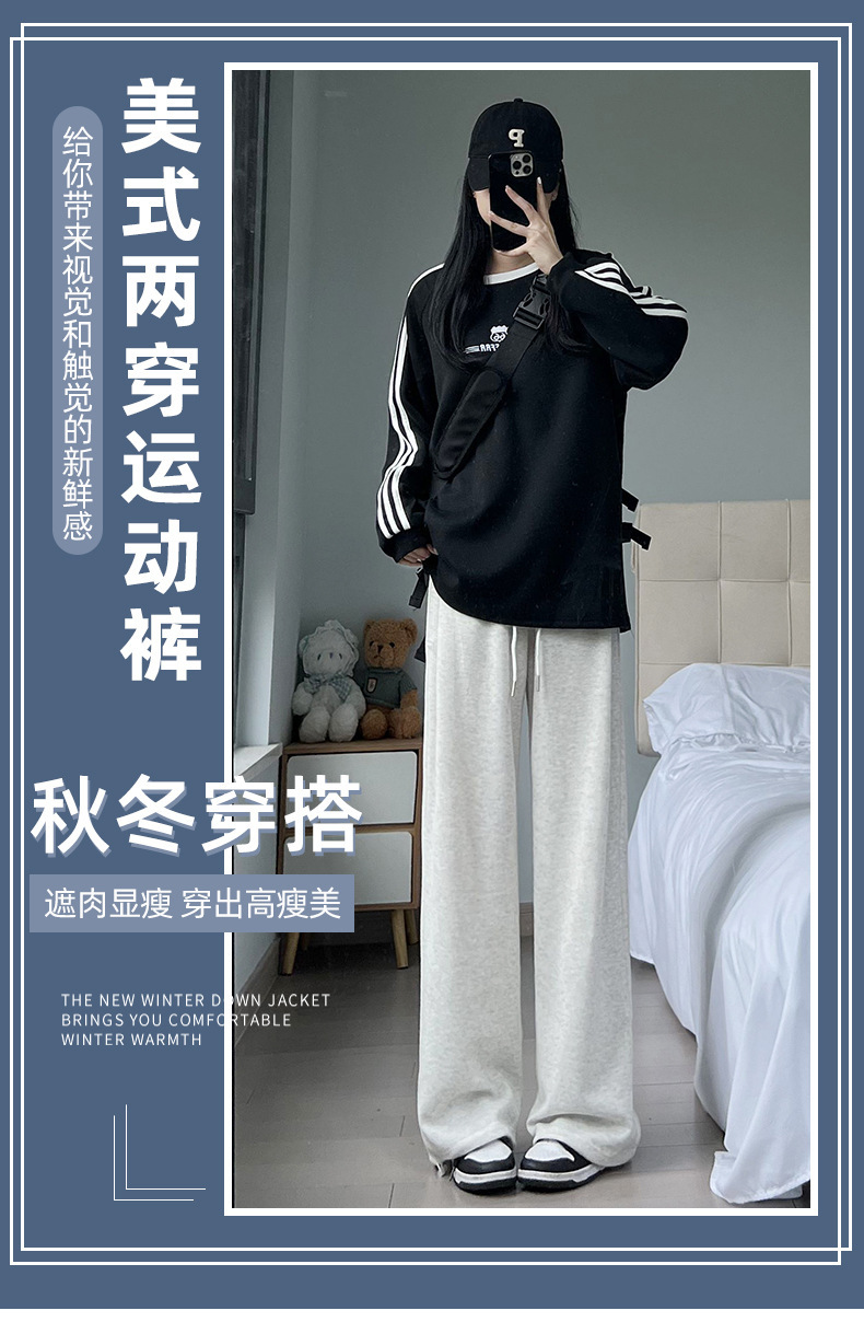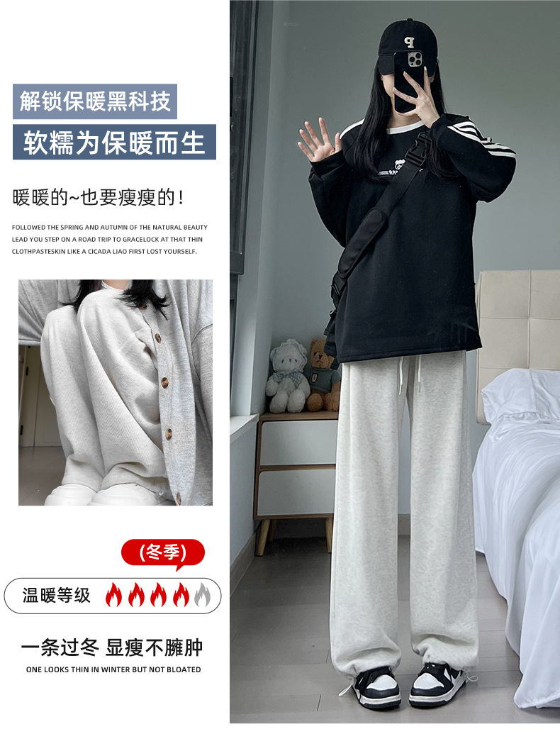 작은 기모 스포츠 바지 여자 가을과 겨울 2024 새로운 도착 흰색 뭉치 다리 운동복 높은 허리 캐주얼 스트레이트 와이드 레그 바지스토어 가기