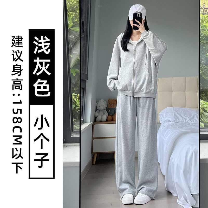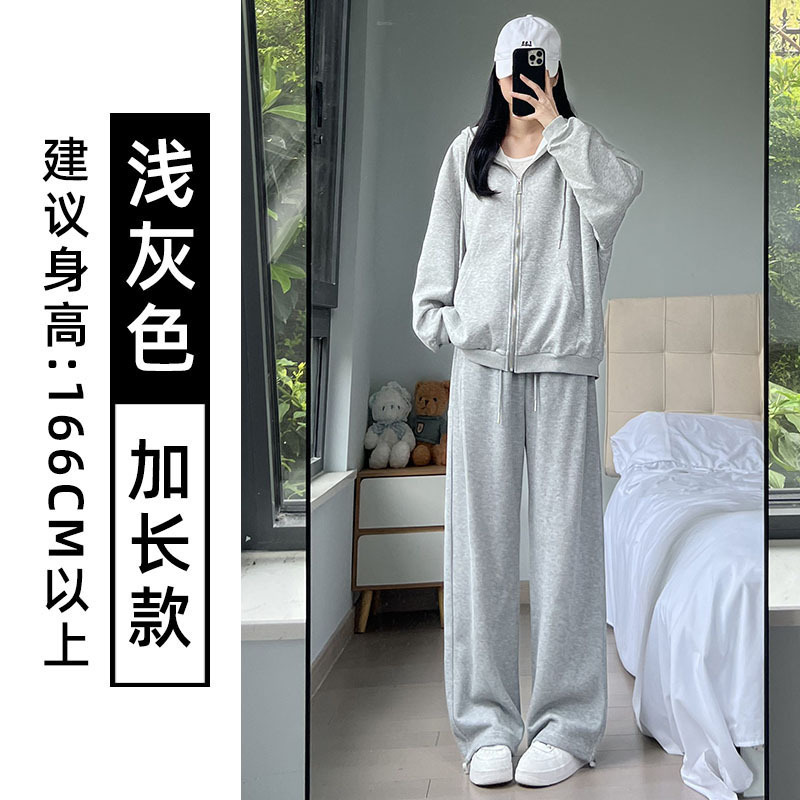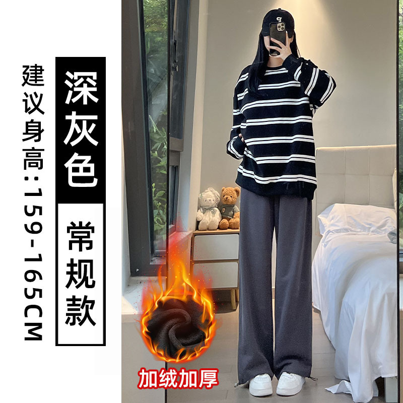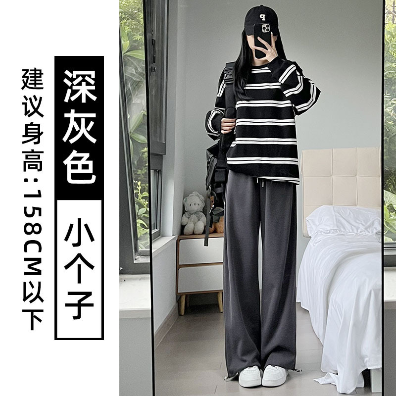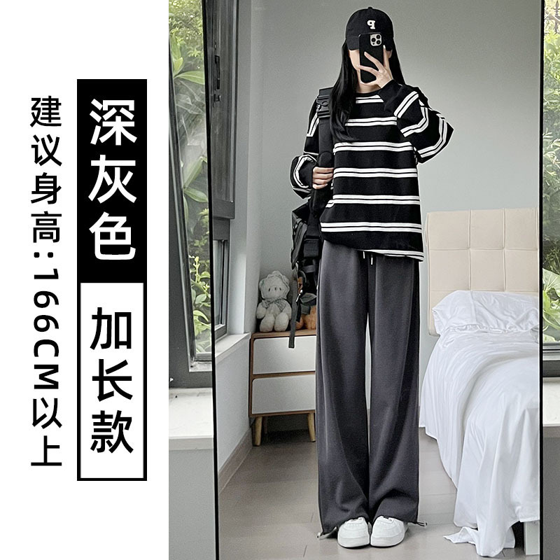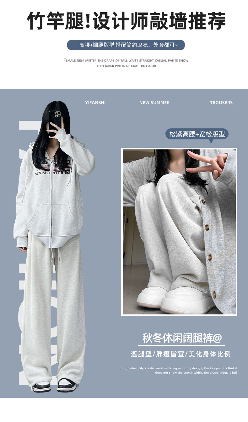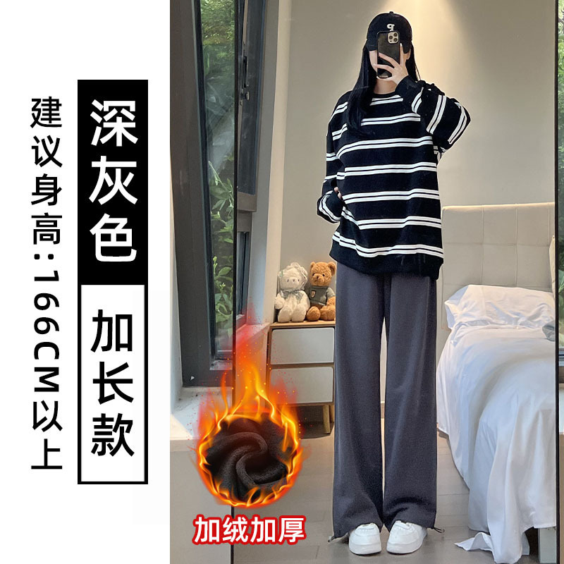 작은 기모 스포츠 바지 여자 가을과 겨울 2024 새로운 도착 흰색 뭉치 다리 운동복 높은 허리 캐주얼 스트레이트 와이드 레그 바지스토어 가기