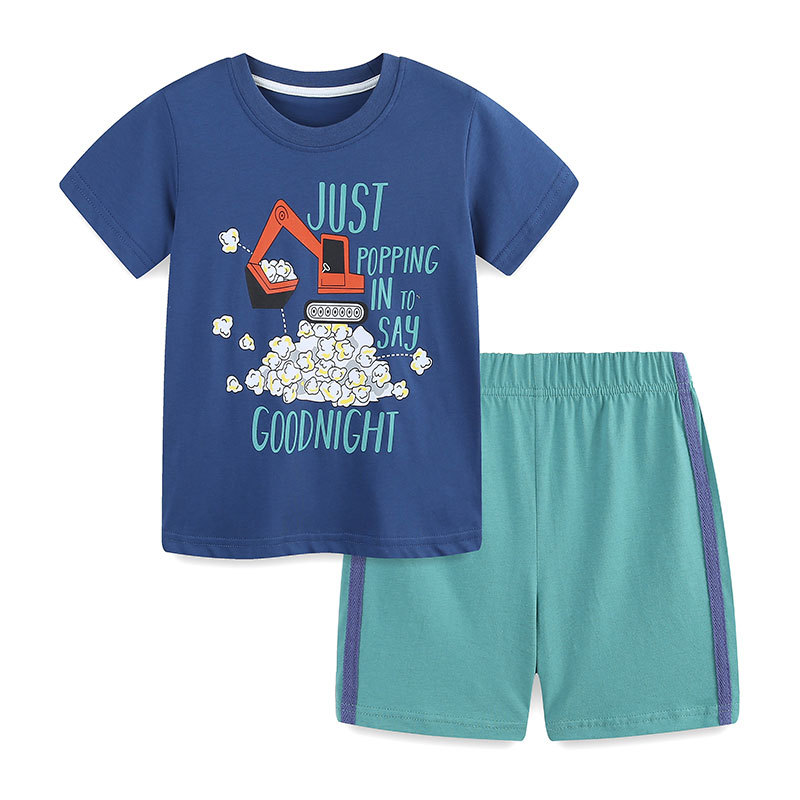 여름 소년 두 조각 유럽과 미국 스타일 인쇄 중소 어린이 짧은 소매 세트 니트 면화 어린이 스포츠 세트 혼합 배치