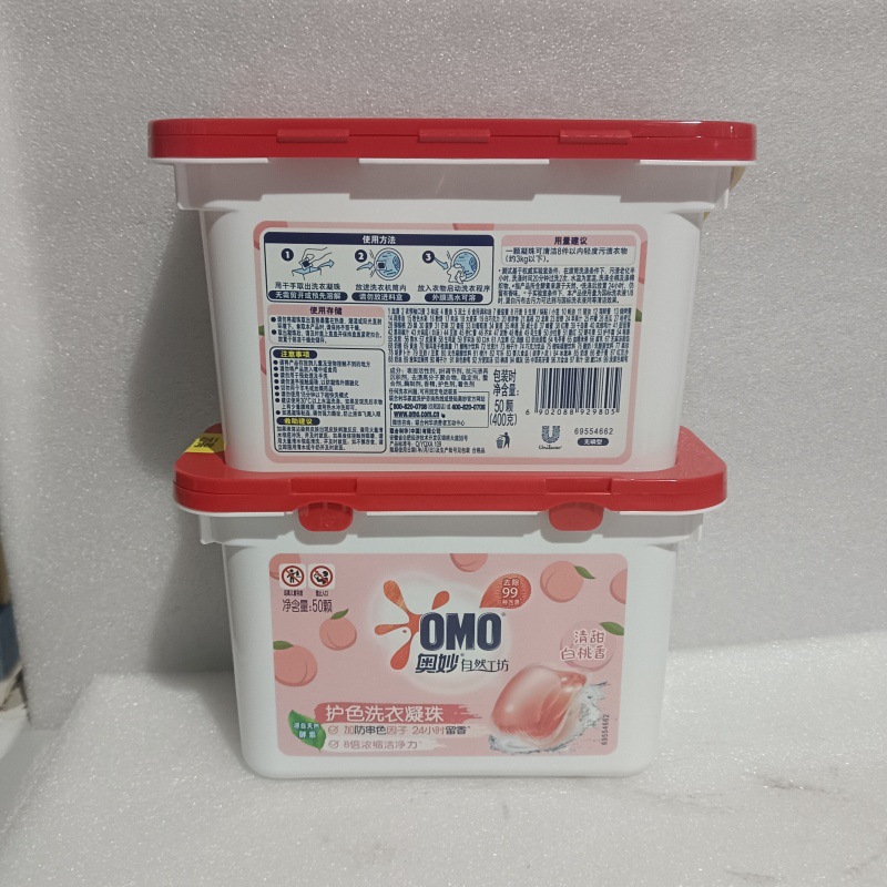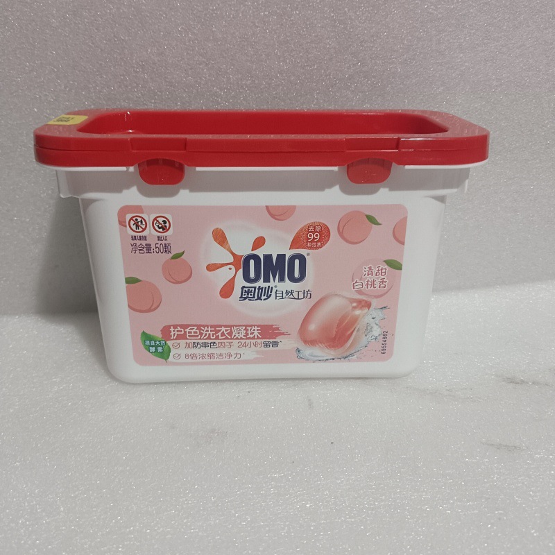 오모 자연 작업장 색상 보호 세탁 구슬 50 (400g) 박스 달콤한 흰색 복숭아 향기 세탁 공 도매스토어 가기