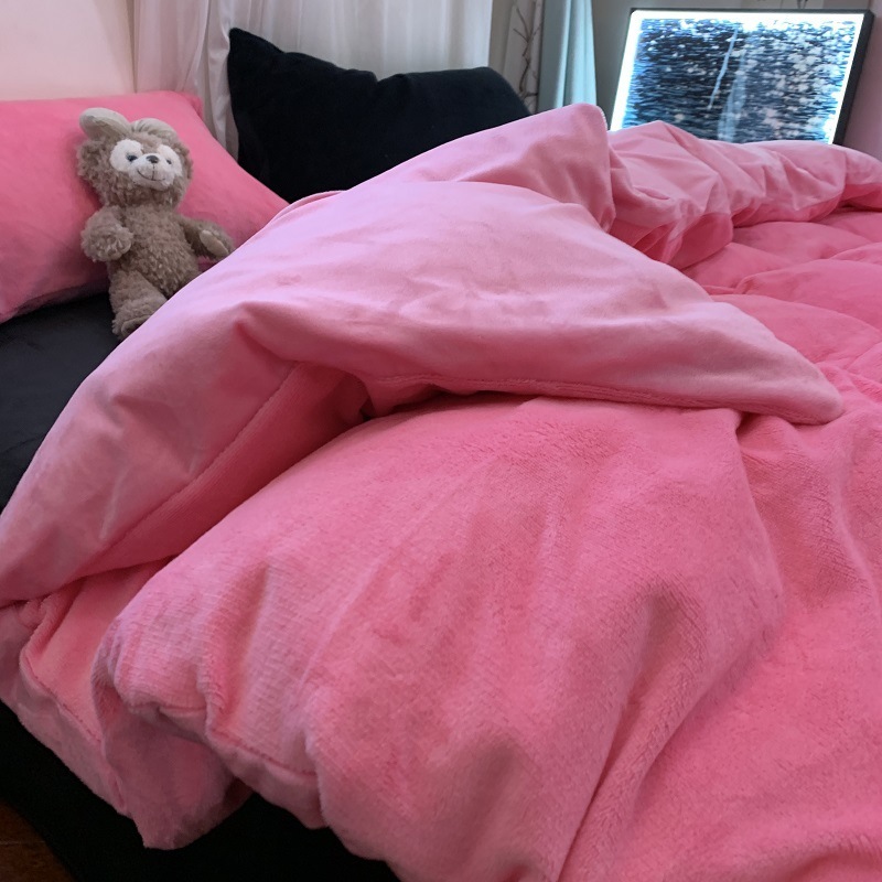 밀크 벨벳 4 피스 세트 가을과 겨울 플랜지 산호 침구 기모 침대 시트 퀼트 커버 기숙사 소년 3 피스 세트