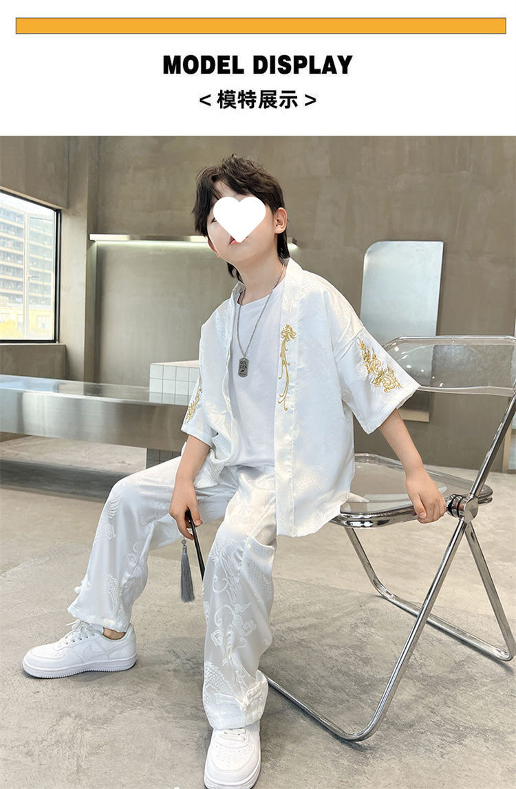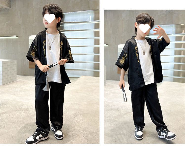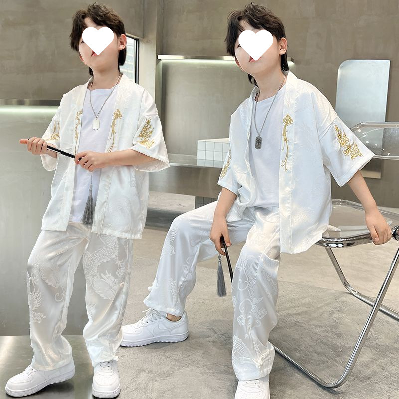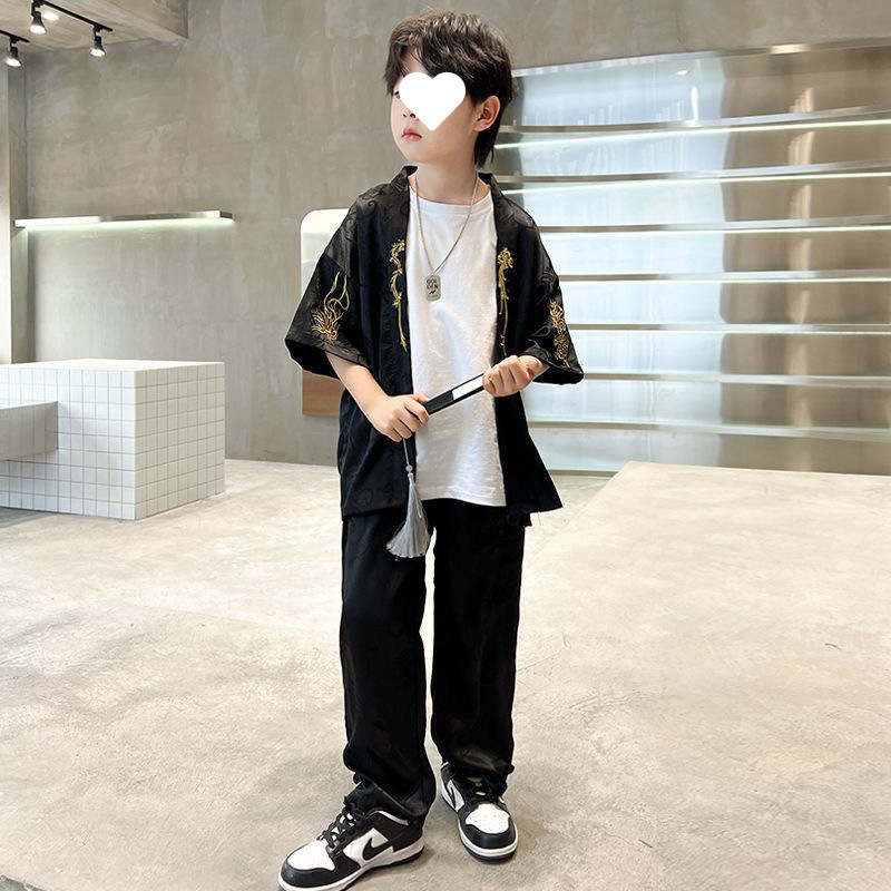 소년 여름 원피스 새로운 중국 스타일 국가 스타일 세트 2025 여름 큰 소년 탕 세트 레트로 한푸 여름 패션스토어 가기