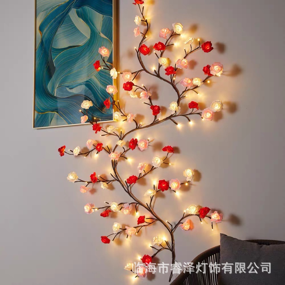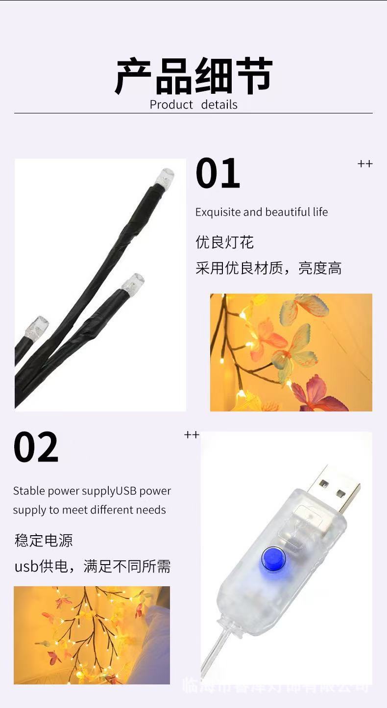 국경을 넘는 인기 LED 등나무 조명, 침실 실내 시뮬레이션 나뭇가지 조명, 구부릴 수 있는 조명 분위기 조명 스트링, 야간 조명