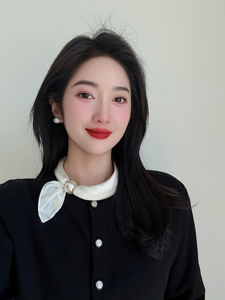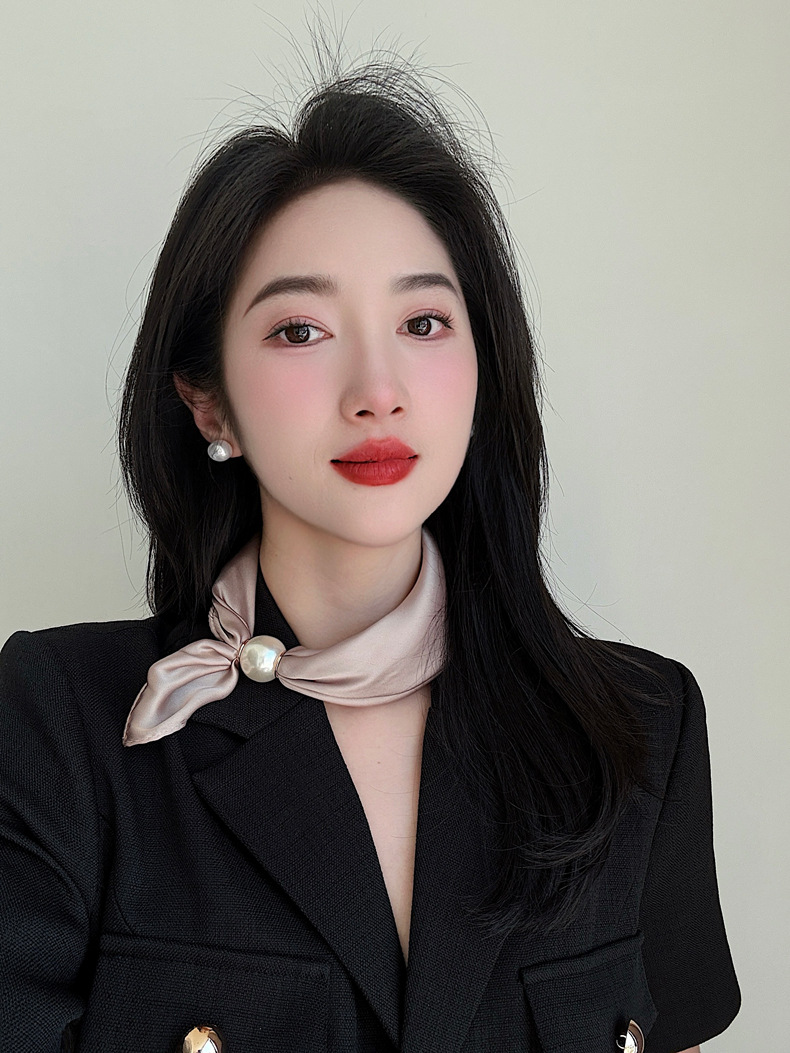 마그네틱 버클 진주 목걸이 작은 긴 실크 스카프 여성의 봄과 가을 여름 목 스카프 일치하는 셔츠 넥타이 얇은 스카프