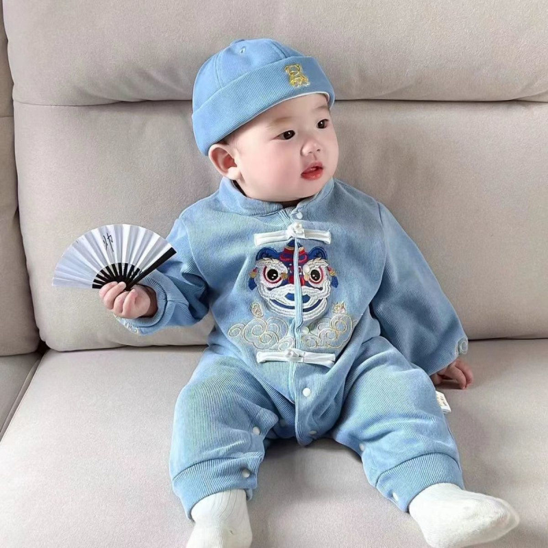 아기 슈퍼 귀여운 긴팔 점프 수트 봄과 가을 남자와 여자의 아기 가을 원피스 서양식 옷 아기 등산 옷