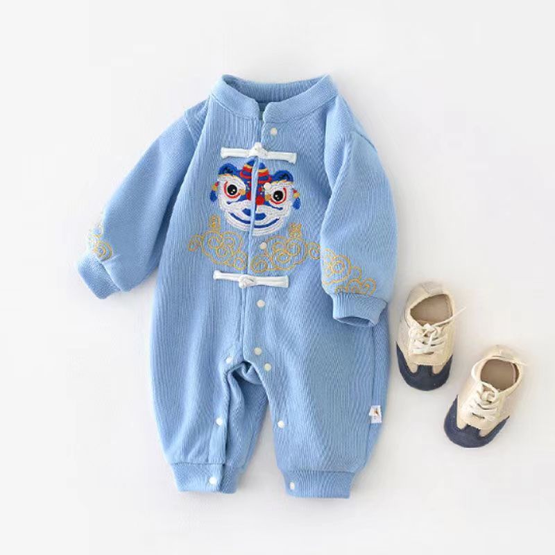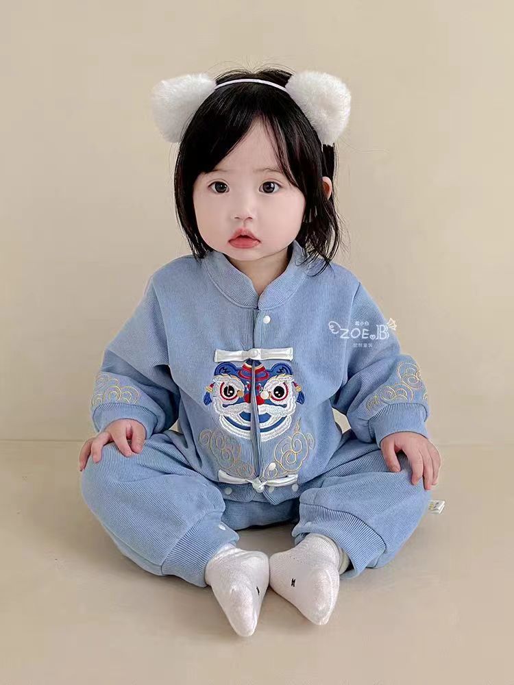 • 블루 자수 사자 긴팔 점프수트
