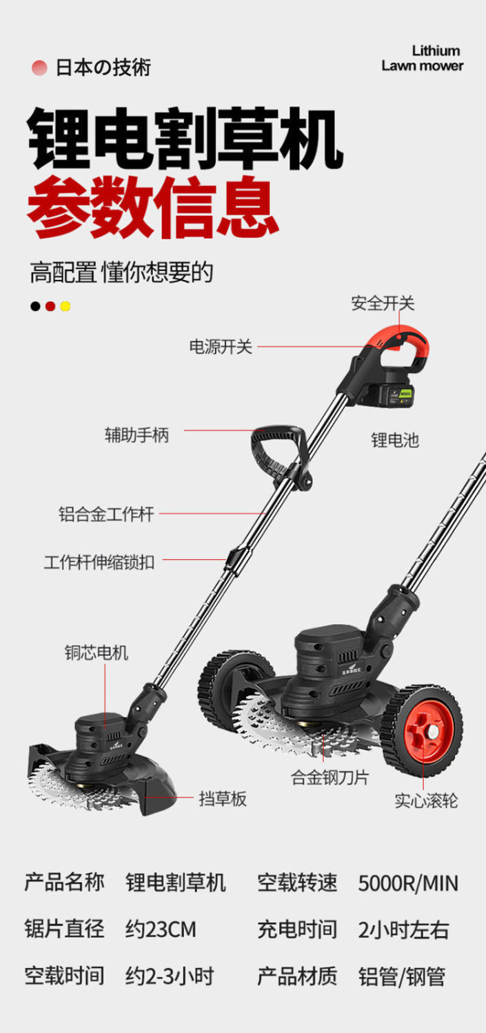 수입 전기 잔디 깎는 기계 충전식 리튬 배터리 다기능 농업 작은 가정용 과수원 고출력 잔디 깎는 기계