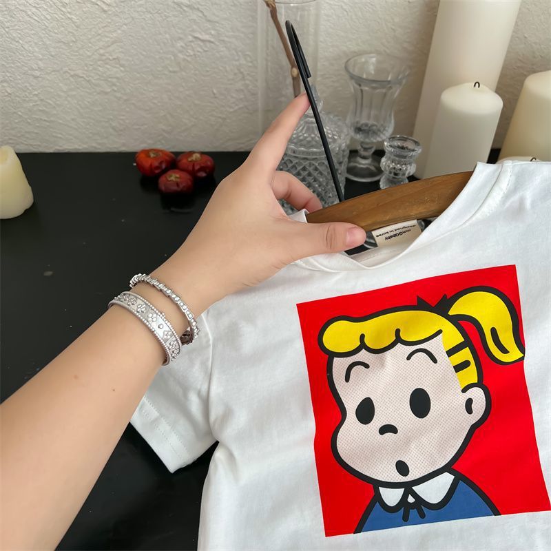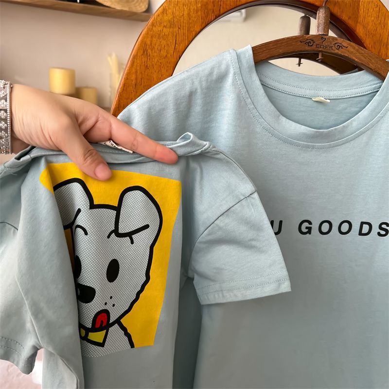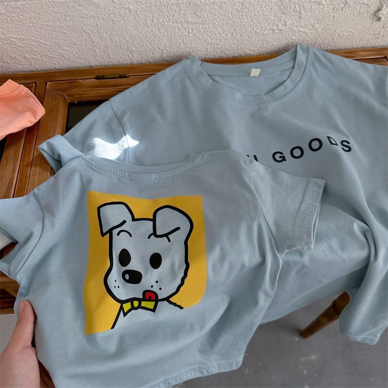 어린이 만화 반팔 티셔츠 여름 2023 소년 여름 반소매 탑 아기 한국식 블루 티셔츠 트렌디