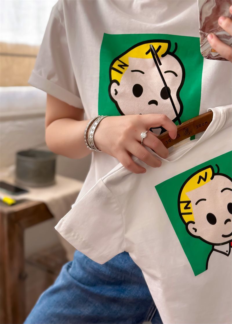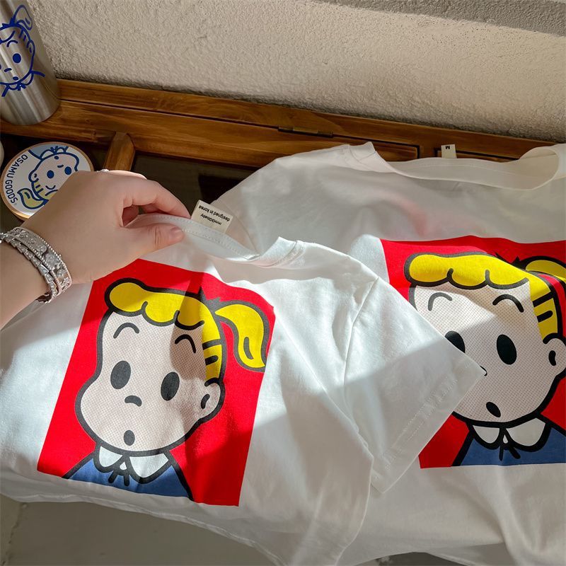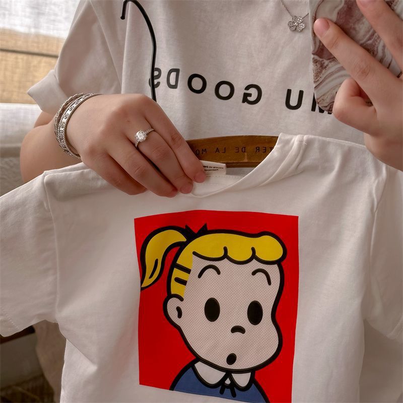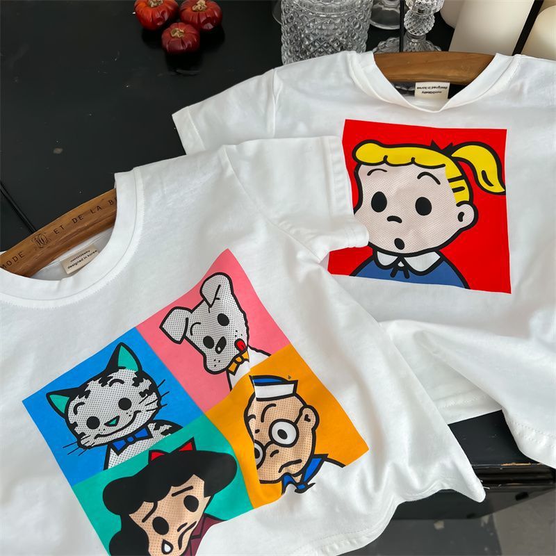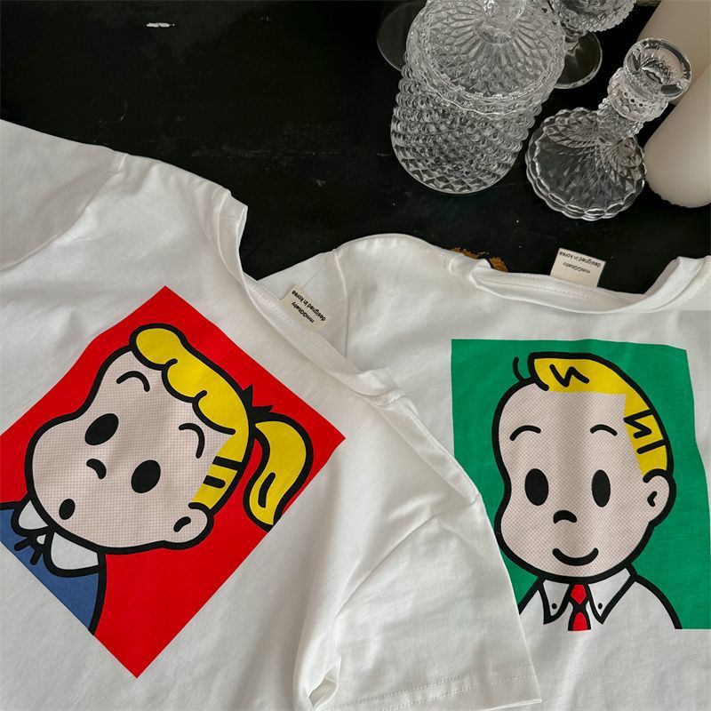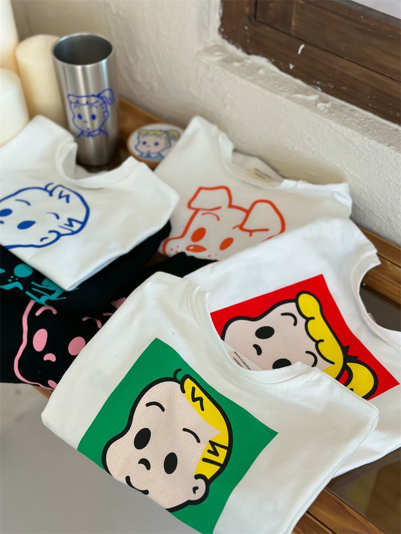 어린이 만화 반팔 티셔츠 여름 2023 소년 여름 반소매 탑 아기 한국식 블루 티셔츠 트렌디스토어 가기