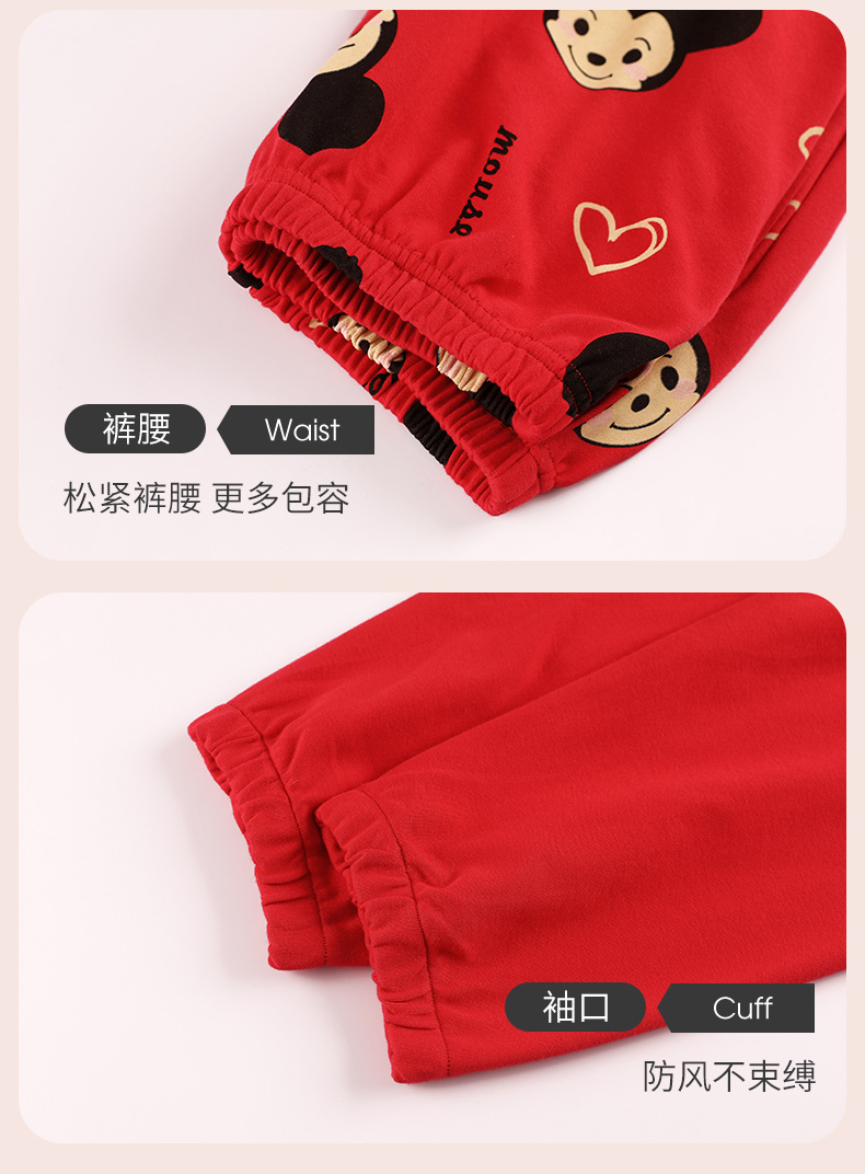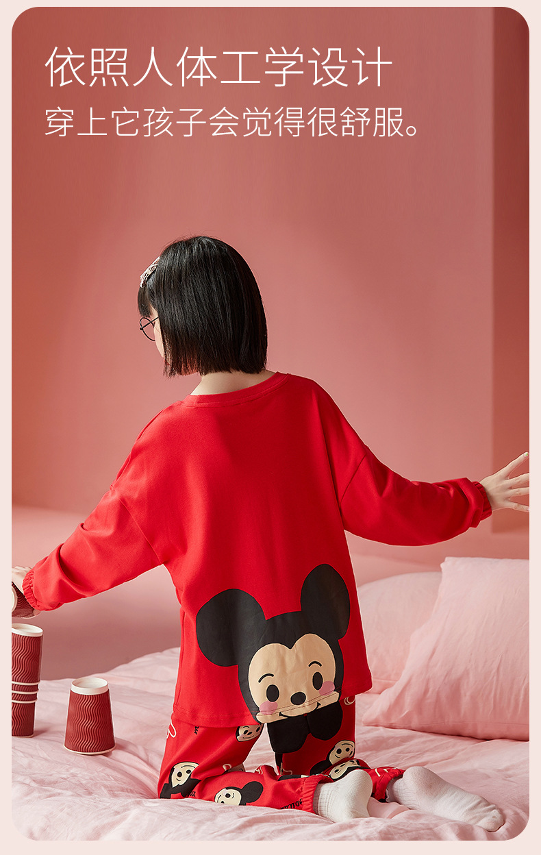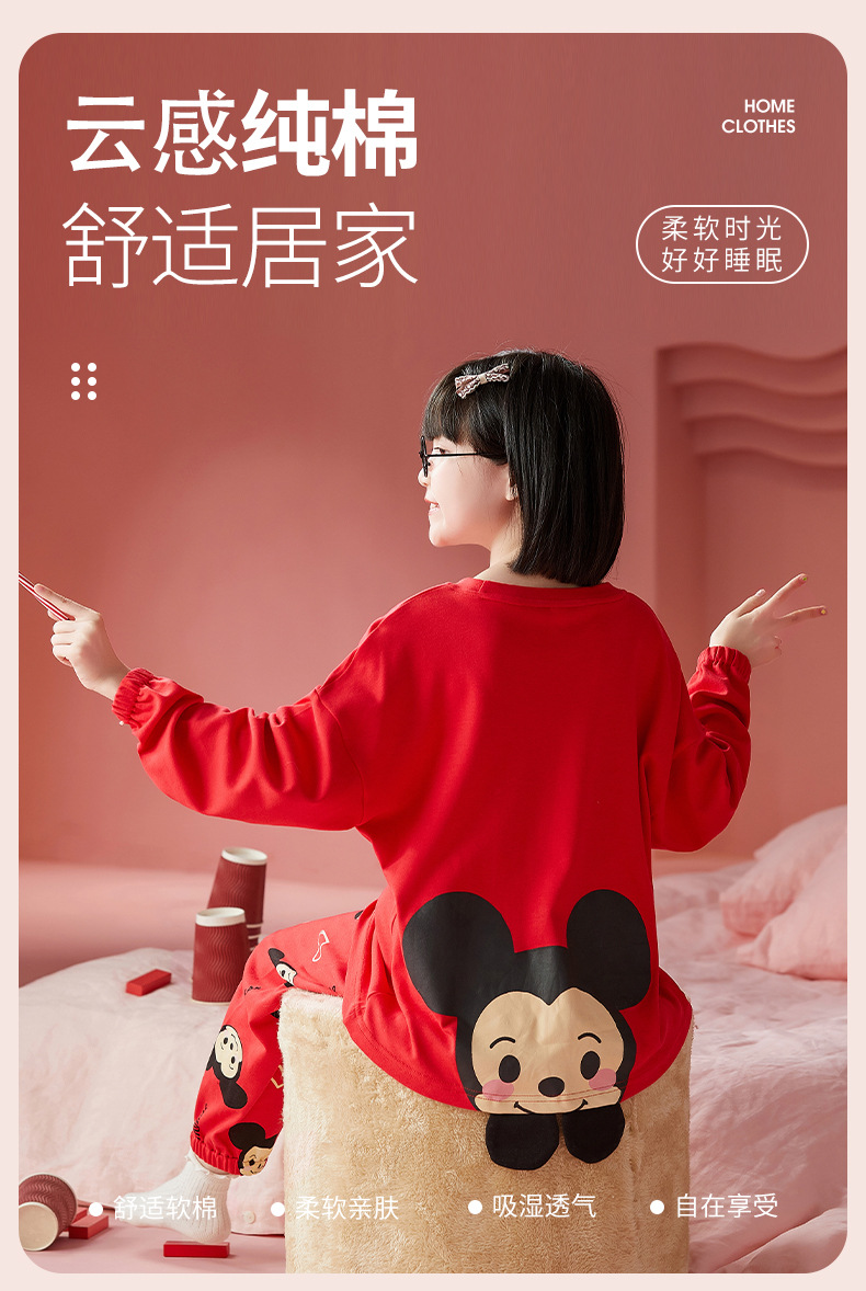 중년 및 대형 어린이와 소녀를위한 봄과 가을 느슨한 면 풀오버 홈 옷 잠옷 만화 긴 소매 바지스토어 가기