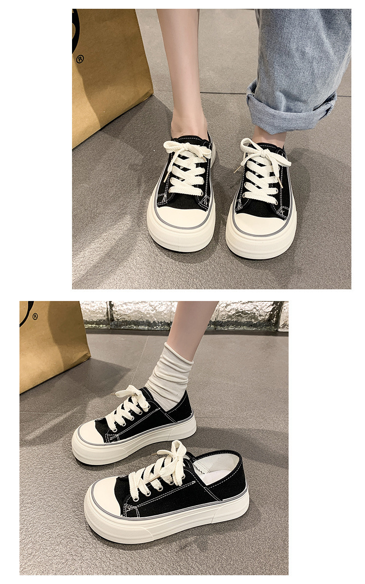 캐주얼 패션 캔버스 신발 여성 여름 귀여운 조커 캐주얼 하프 지원 2 단계 흰색 신발 도매스토어 가기