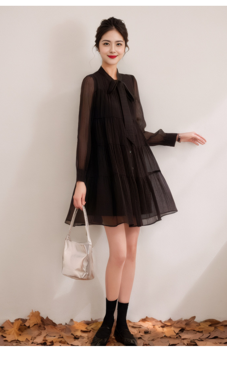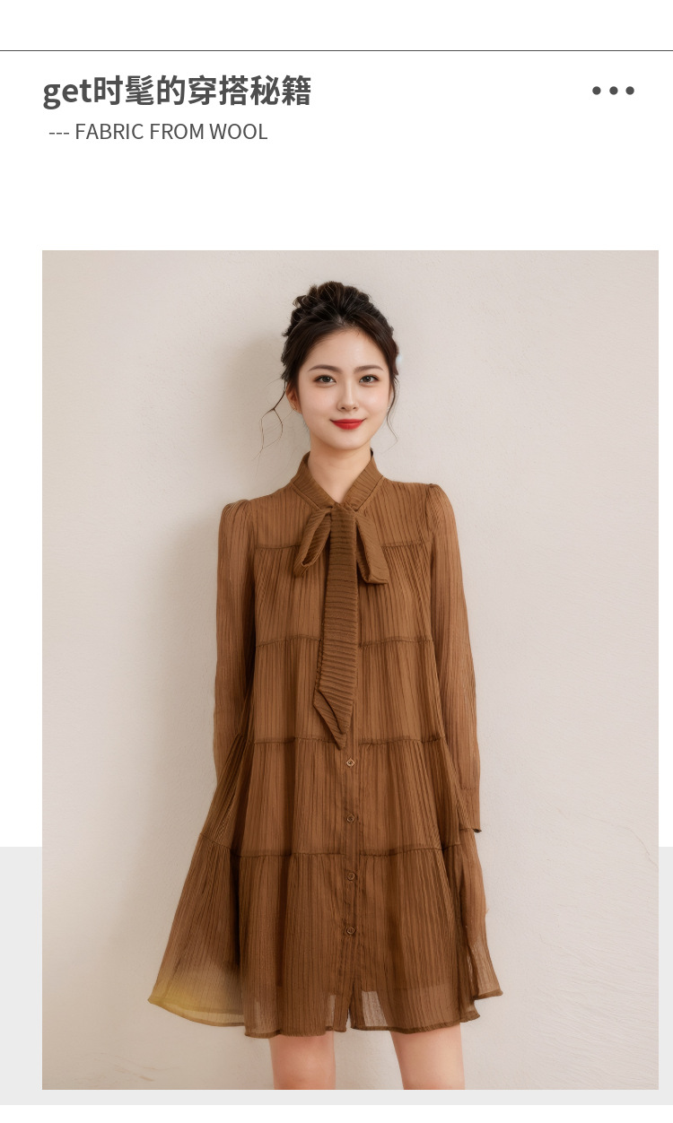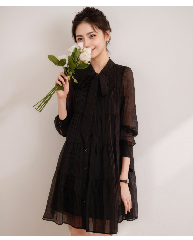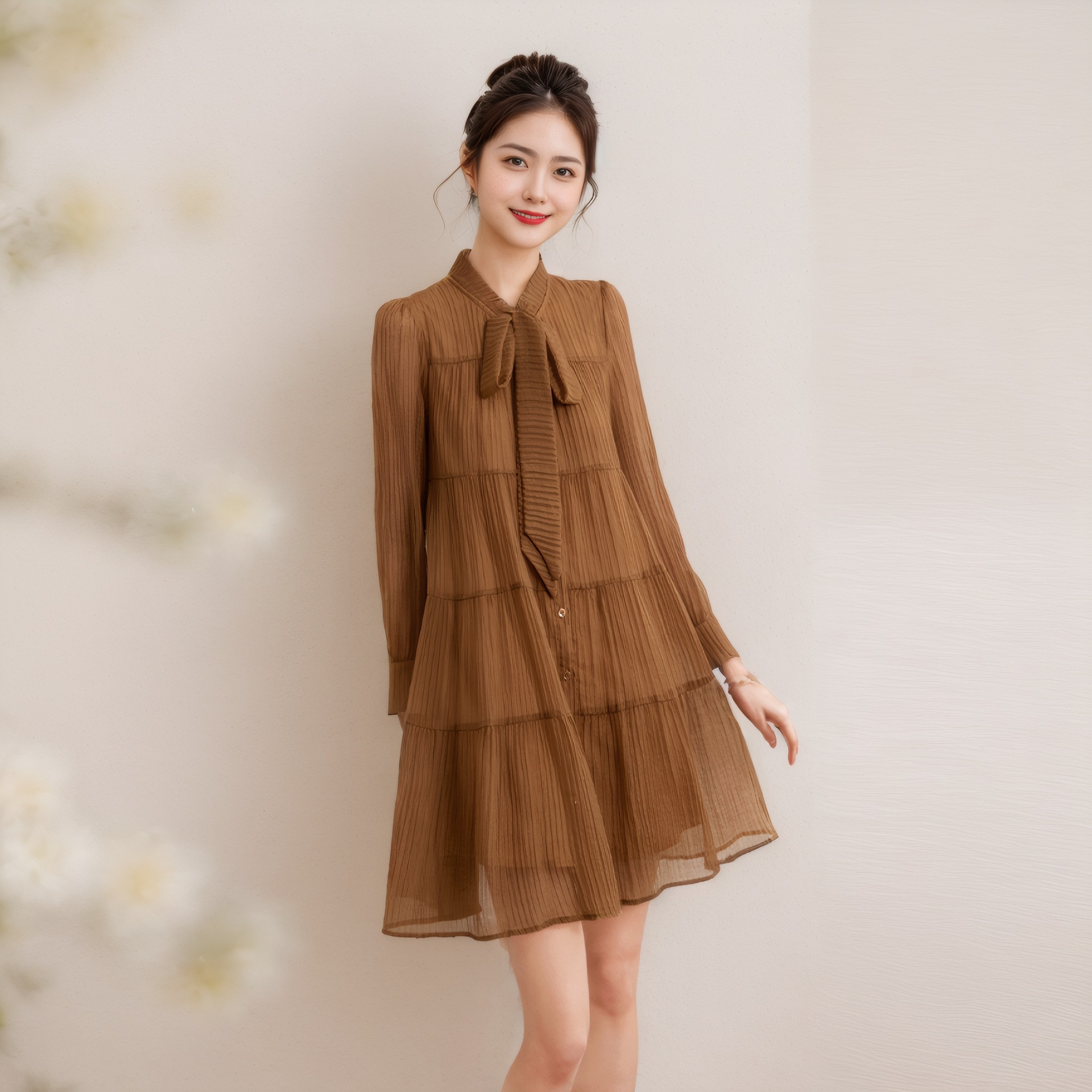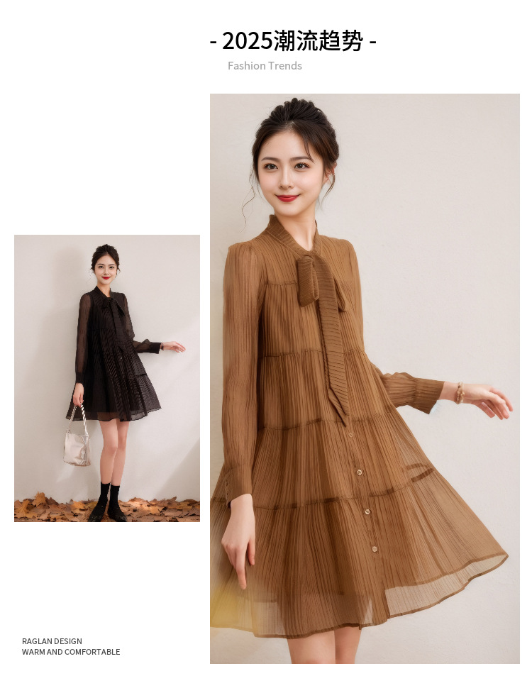 2025 봄 패션 레이스 업 활 우아한 질감 긴 소매 중간 길이의 엘라스없는 여성의 주름 원피스스토어 가기
