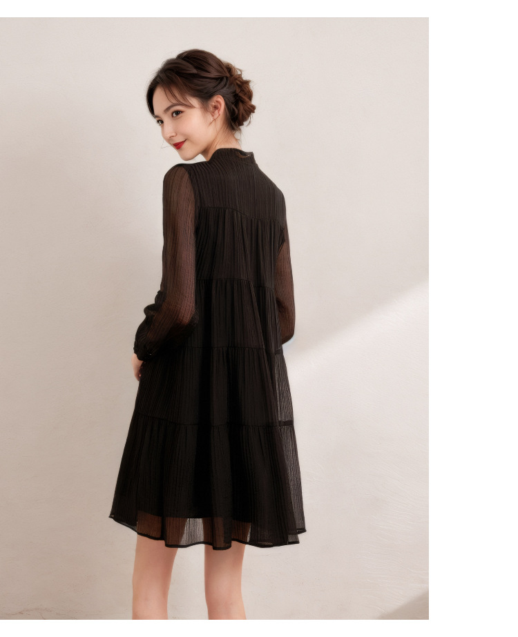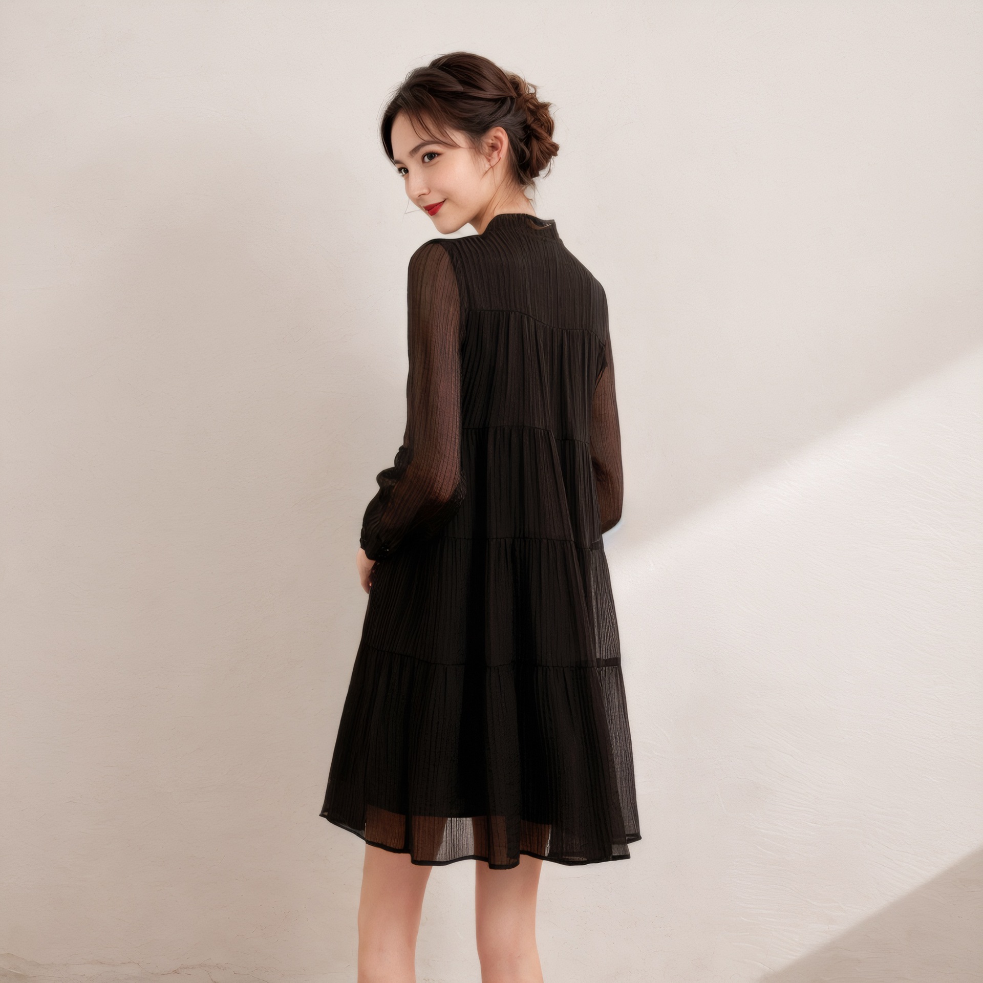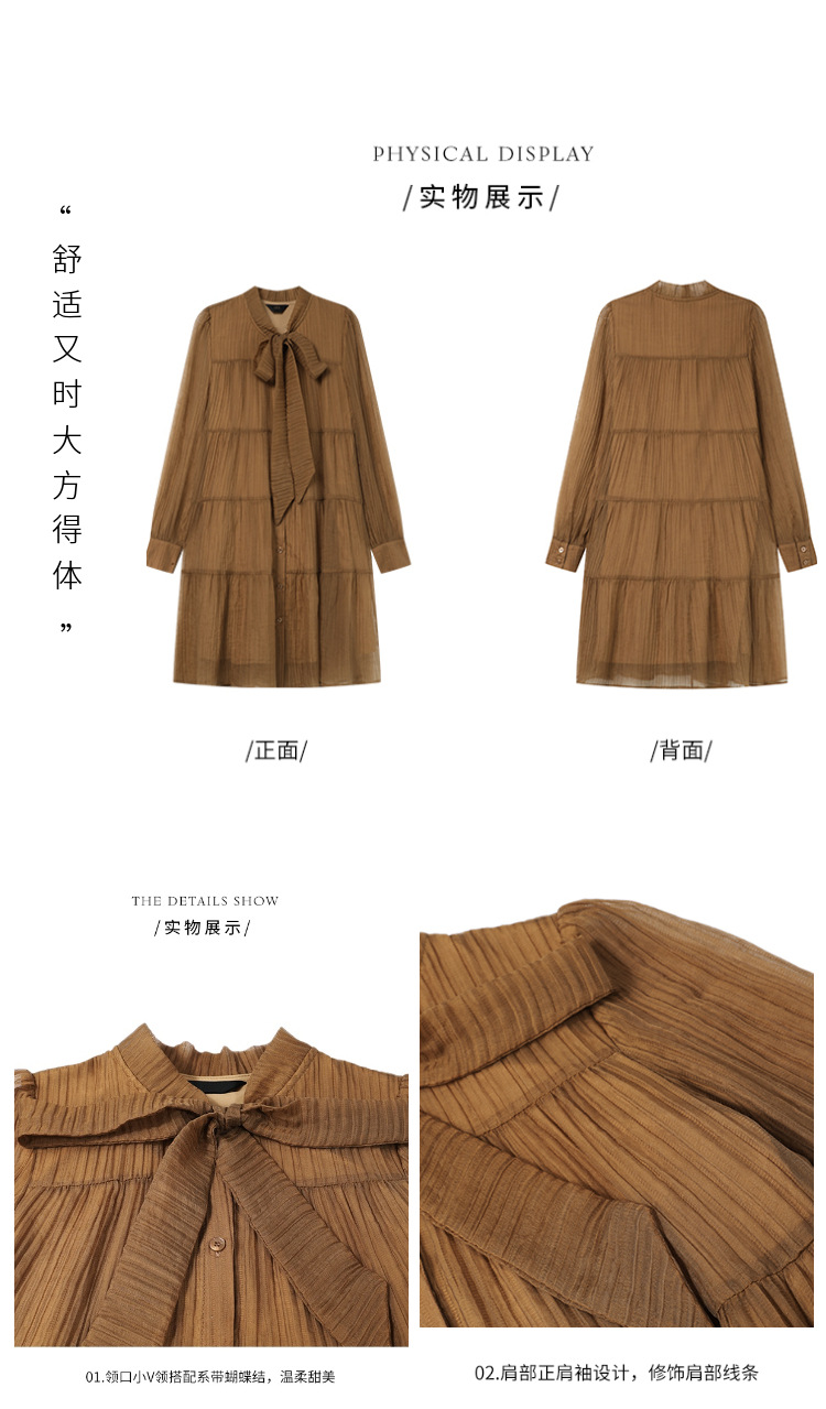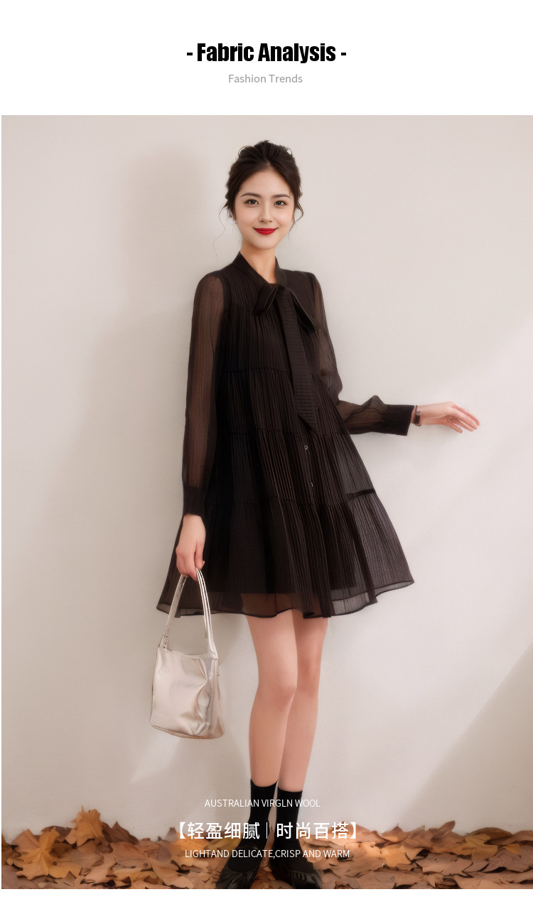 2025 봄 패션 레이스 업 활 우아한 질감 긴 소매 중간 길이의 엘라스없는 여성의 주름 원피스스토어 가기