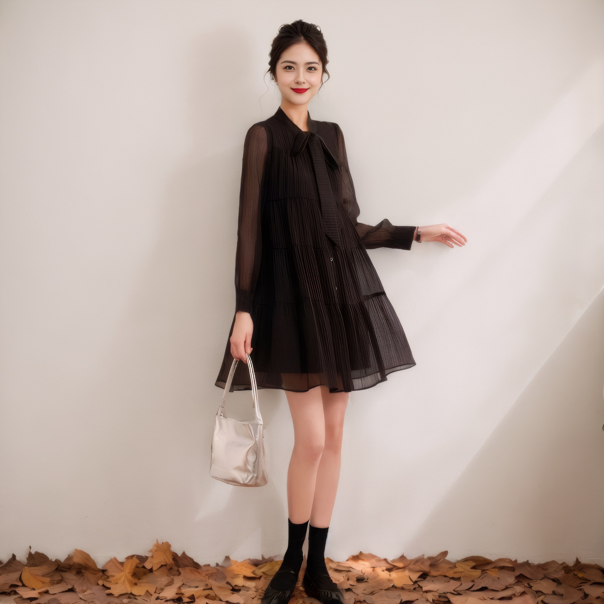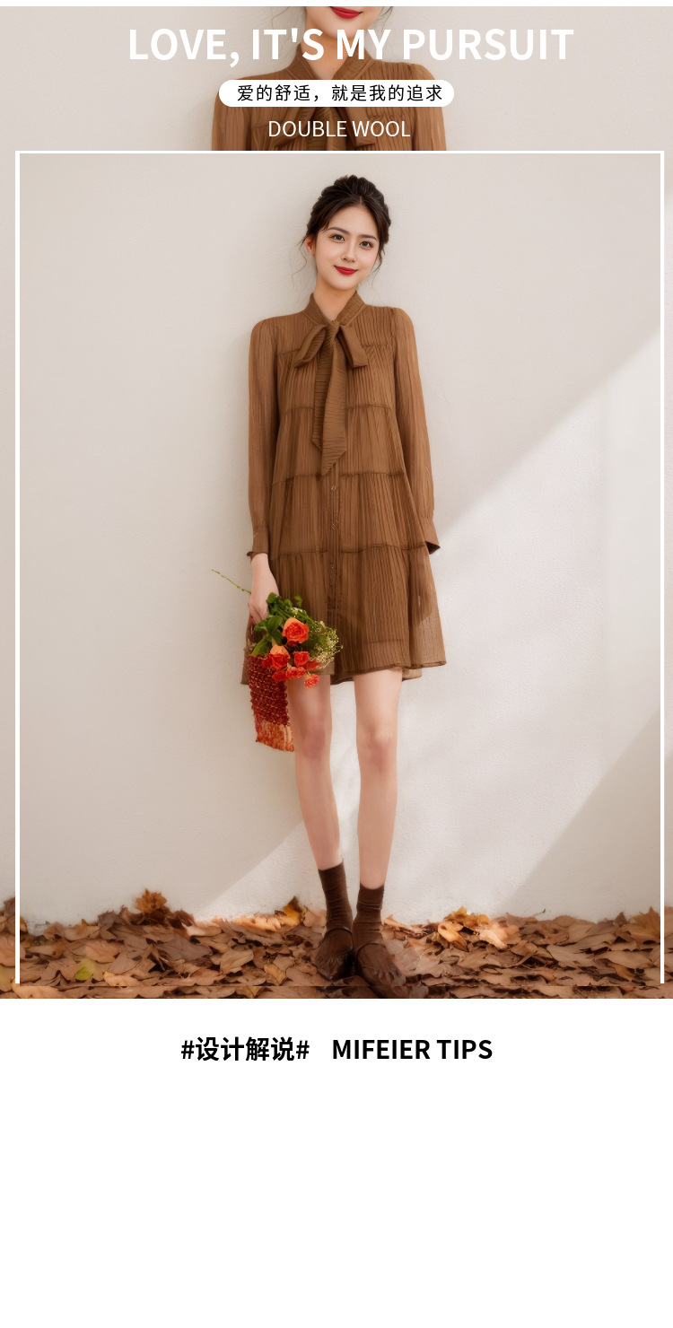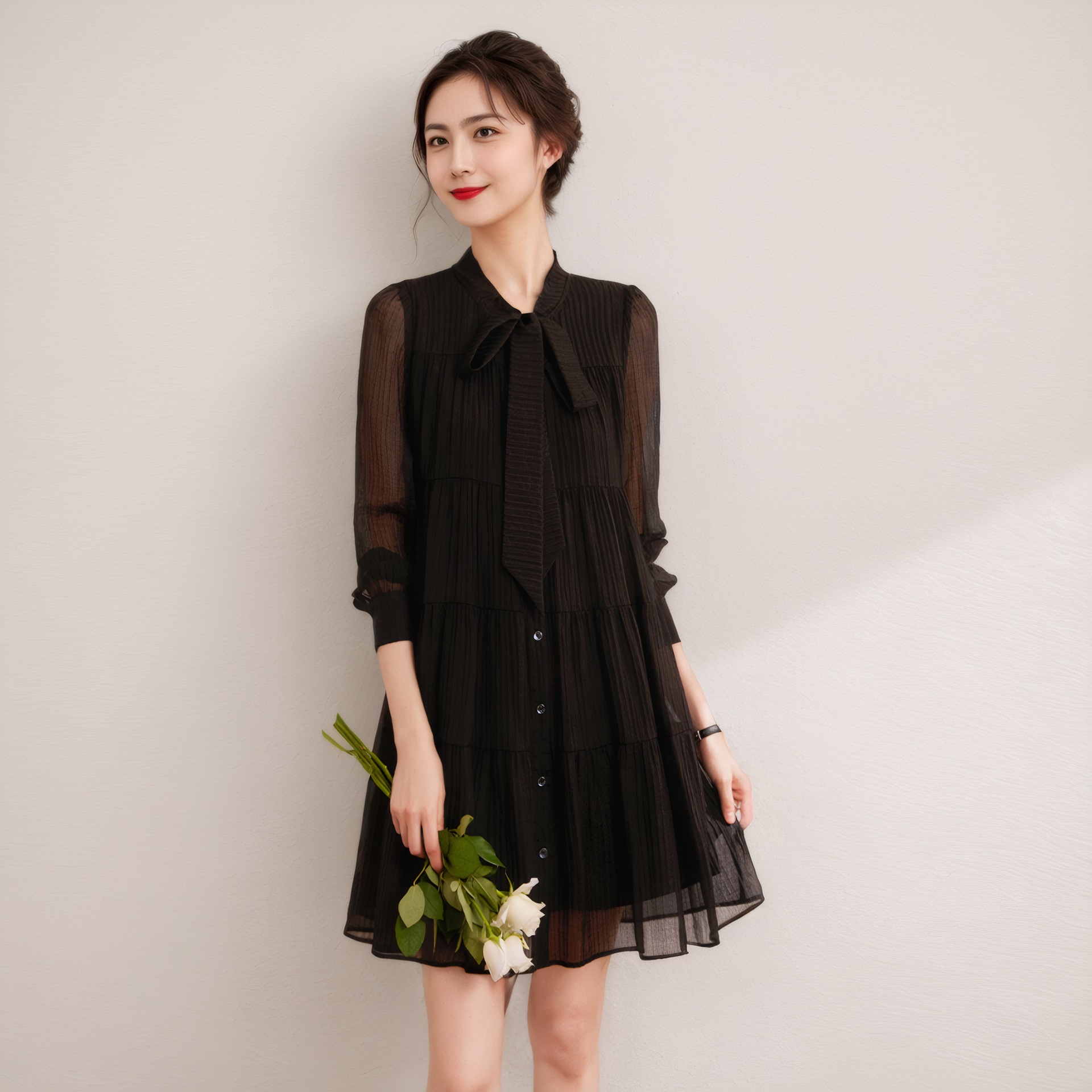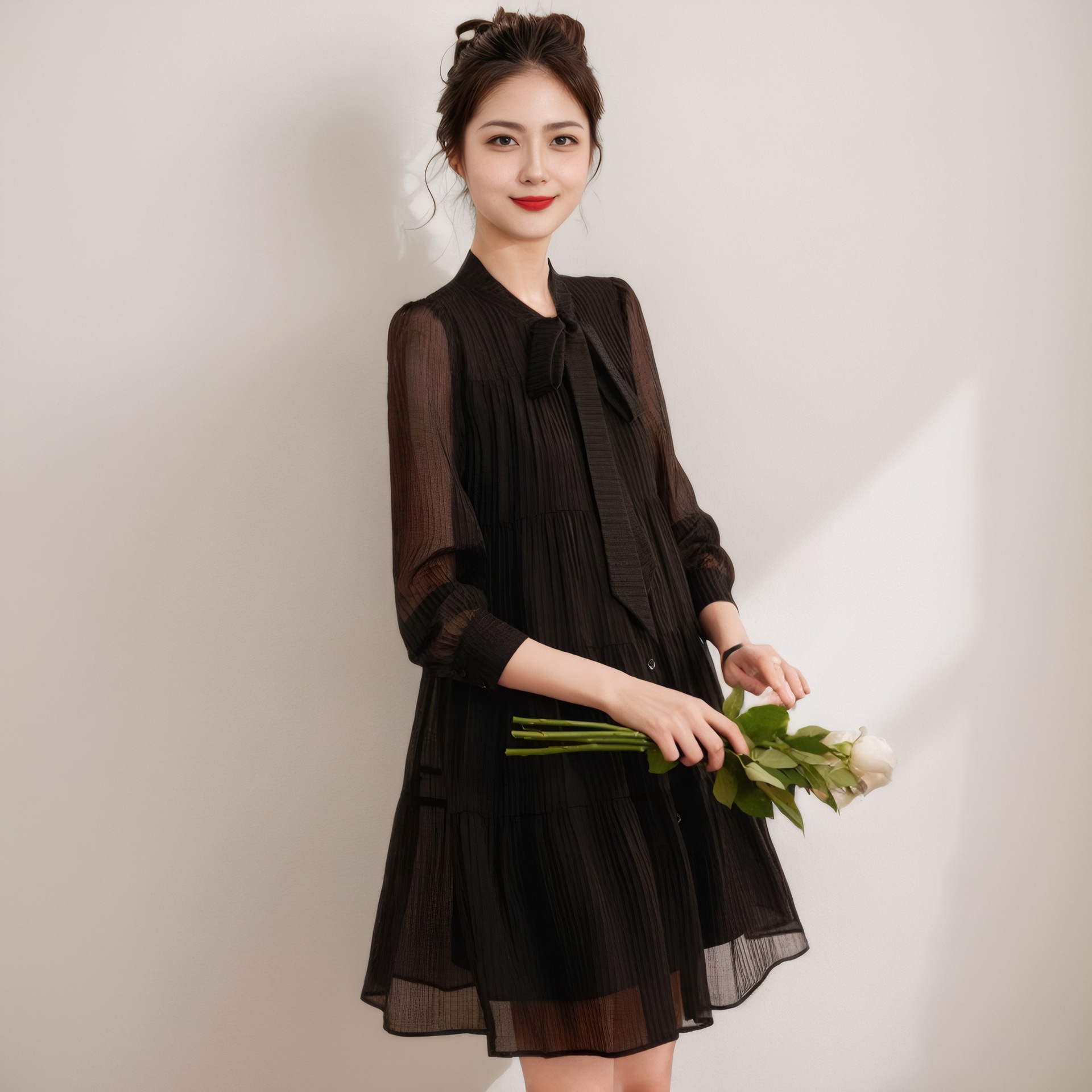 2025 봄 패션 레이스 업 활 우아한 질감 긴 소매 중간 길이의 엘라스없는 여성의 주름 원피스스토어 가기