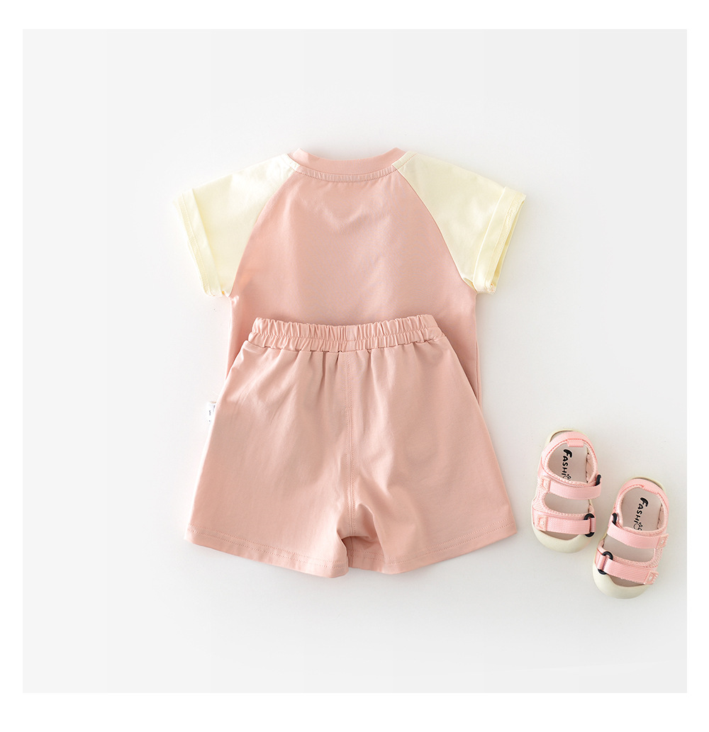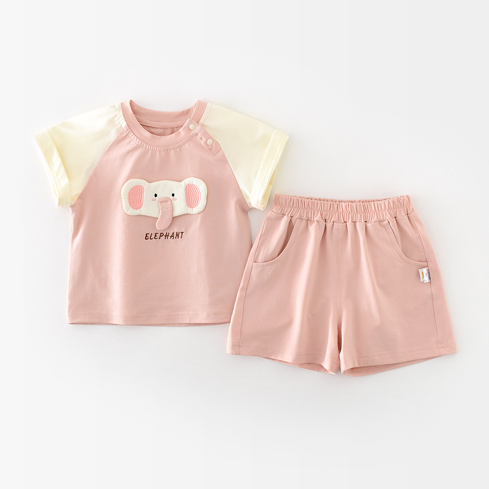 2025 년 여름 새 소녀 라글란 슬리브 투피스 세트 아기 유아 만화 코끼리 인형 컬러 세트 52750