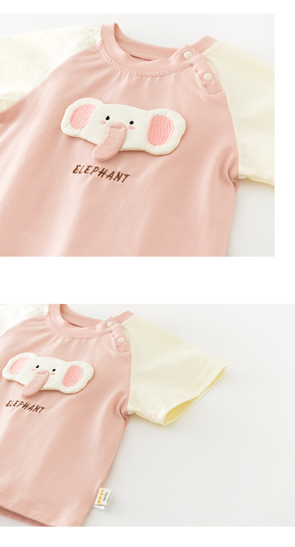 2025 년 여름 새 소녀 라글란 슬리브 투피스 세트 아기 유아 만화 코끼리 인형 컬러 세트 52750스토어 가기