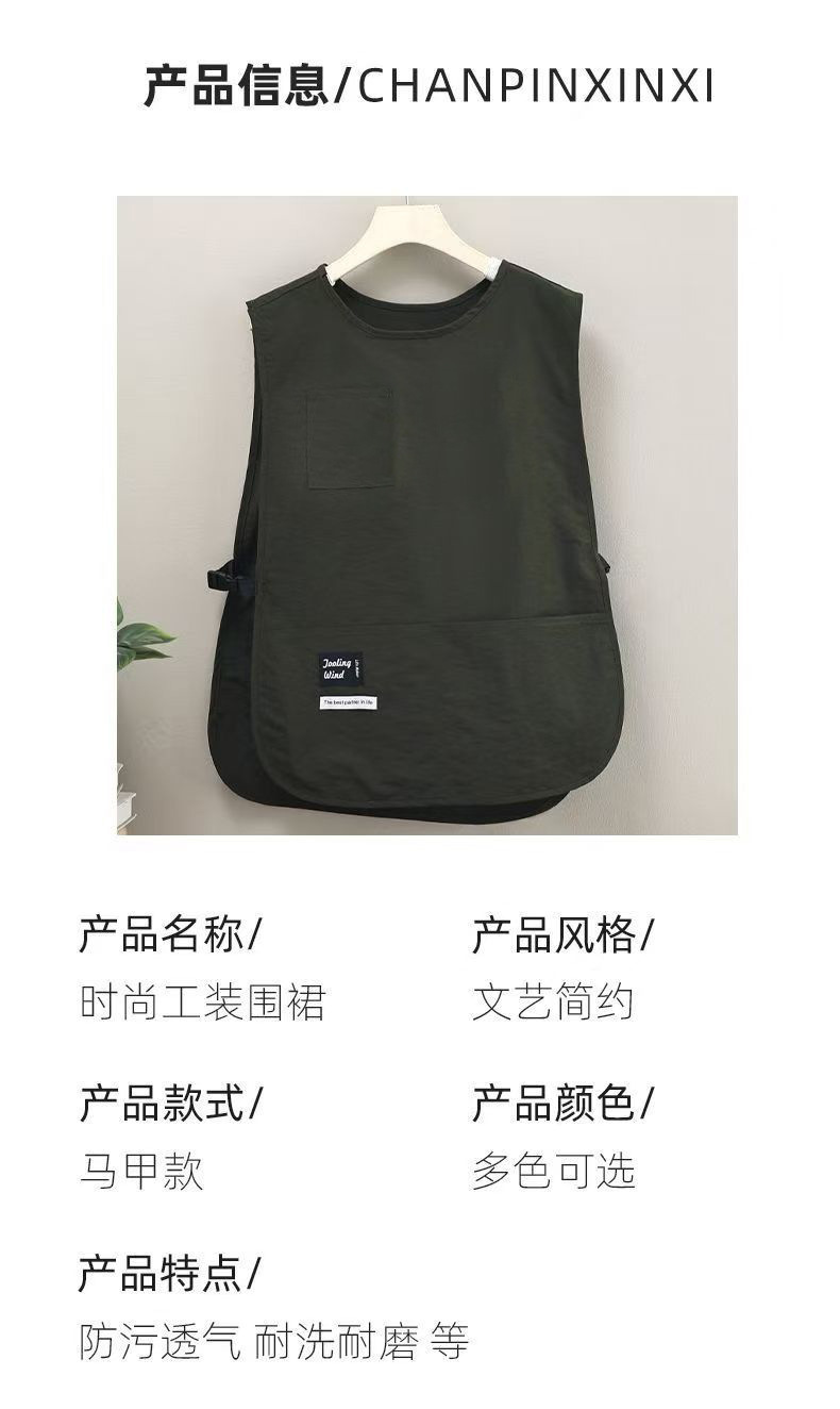 새로운 스타일의 방수 및 방유 조끼형 앞치마, 성인용 오염 방지 작업복, 남녀 공용 레스토랑 및 커피숍 작업복 앞치마스토어 가기